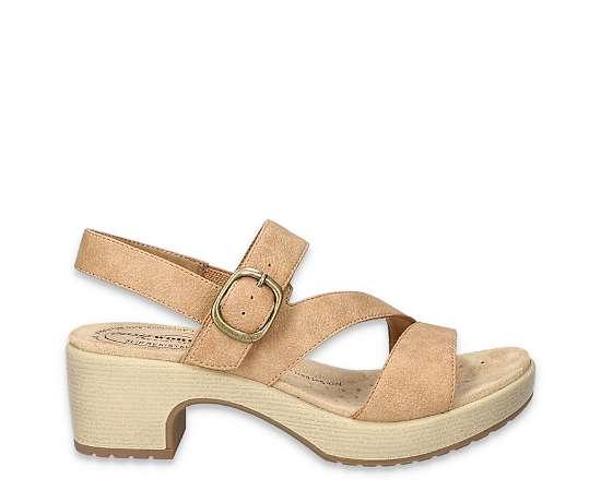 Easy Works Marnina Women's Wedge Sandal NaturalStay on trend in the Easy Works Marnina wedge Sandal. Featuring a faux leather upper in an asymmetrical strap design, this Shoe adds a casual touch to any outfit. The Easy Motion Pro Comfort System footbed cushions your steps, while the slip-resistant Rubber outsole keeps you grounded. The chunky block heel gives a nice lift. Synthetic upper Adjustable buckle strap closure Easy Motion Pro Comfort System footbed Rubber slip-resistant outsole2 block heel