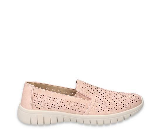 Easy Works Mosaic Women's Slip-On Sneaker BlushWear a unique, yet simple look with the Mosaic Slip-On Sneaker from Easy Works by Easy Street. Featuring a perforated upper with twin goring, this athleisure Shoe also has embossed detailing. WThe removable footbed is anti-microbial with arch support built-in, while the 1 wedge adds subtle lift. Synthetic upper Slip-On Perf designEasy Motion Pro Comfort System footbedSlip-resistant outsole