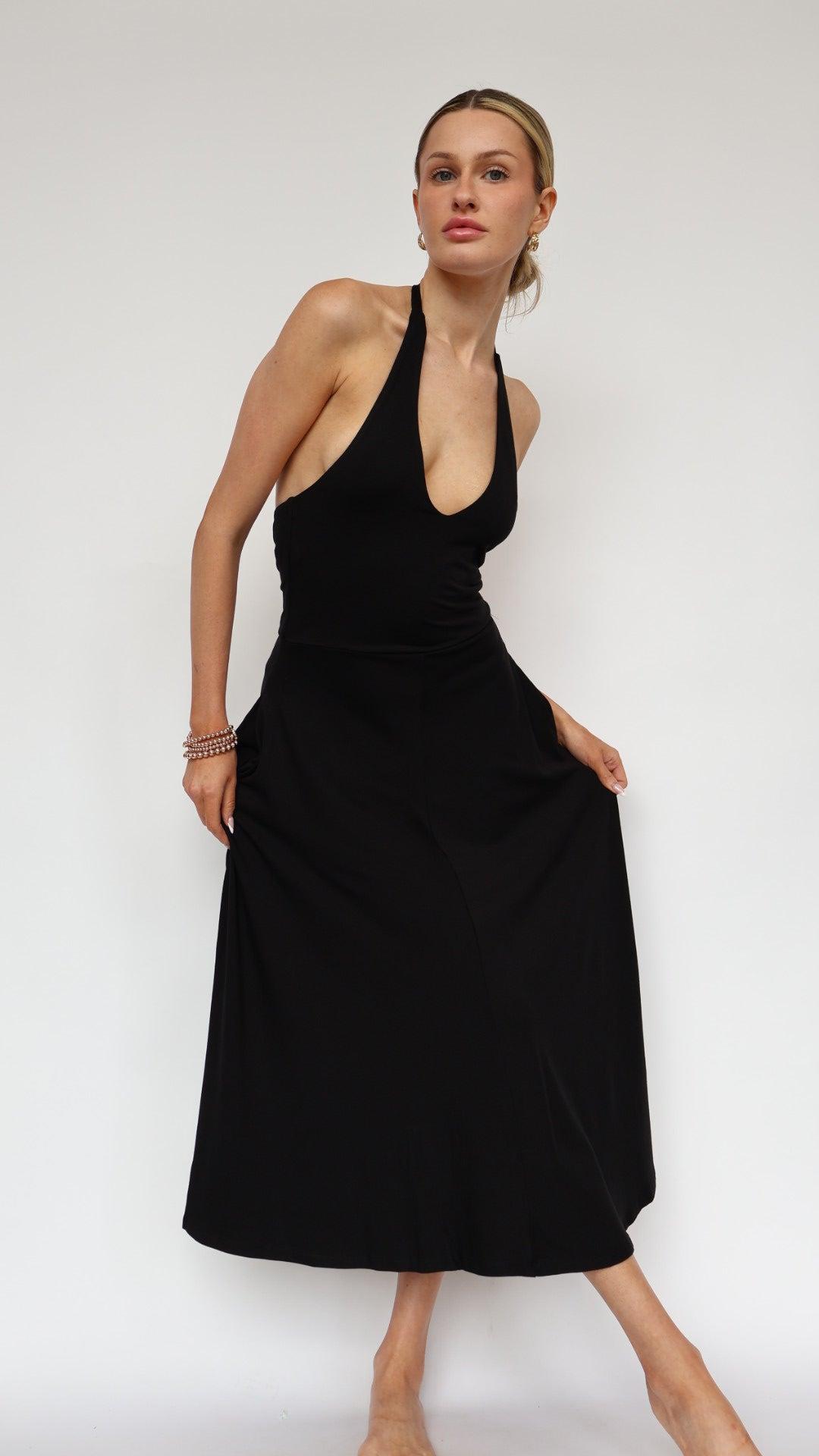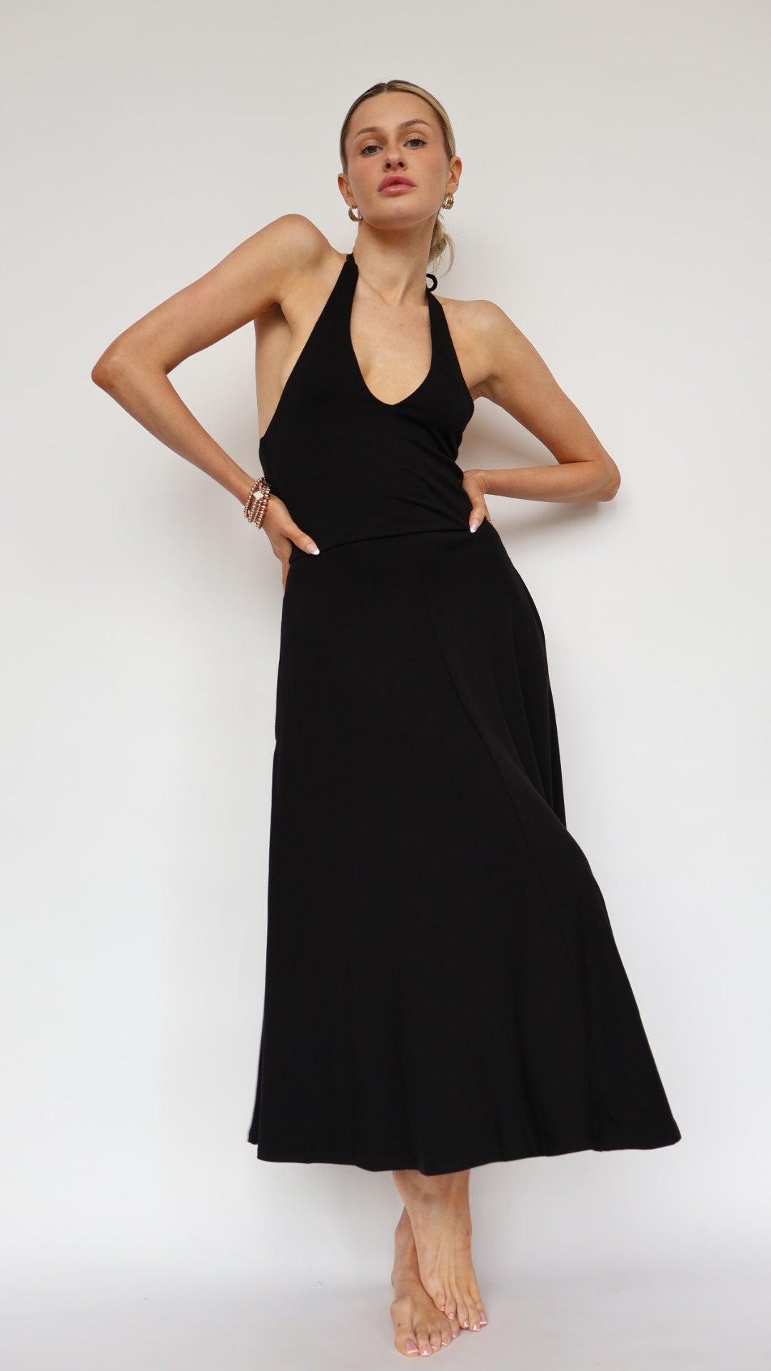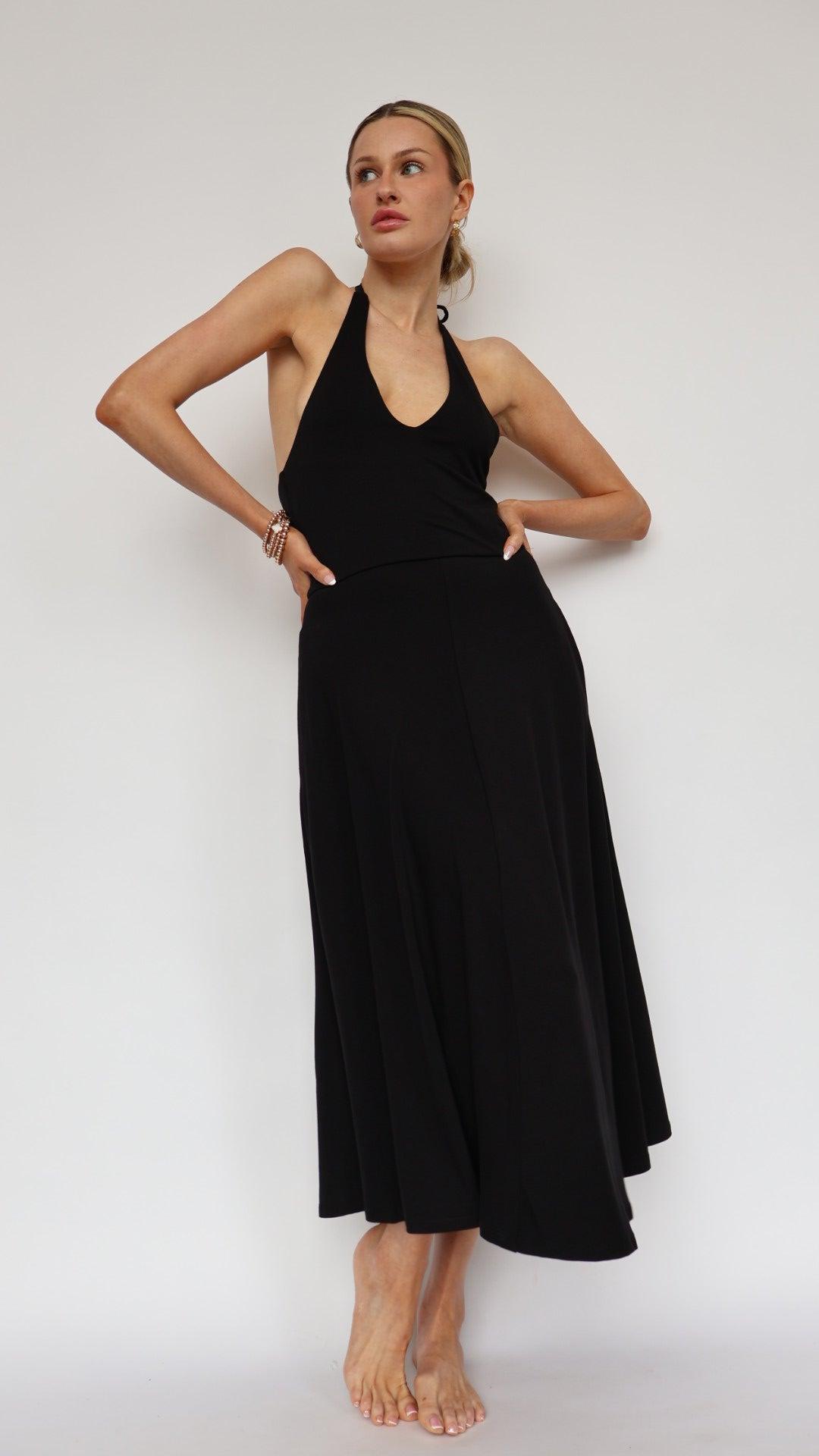 Easygoing Halter Neck Black Midi Dress