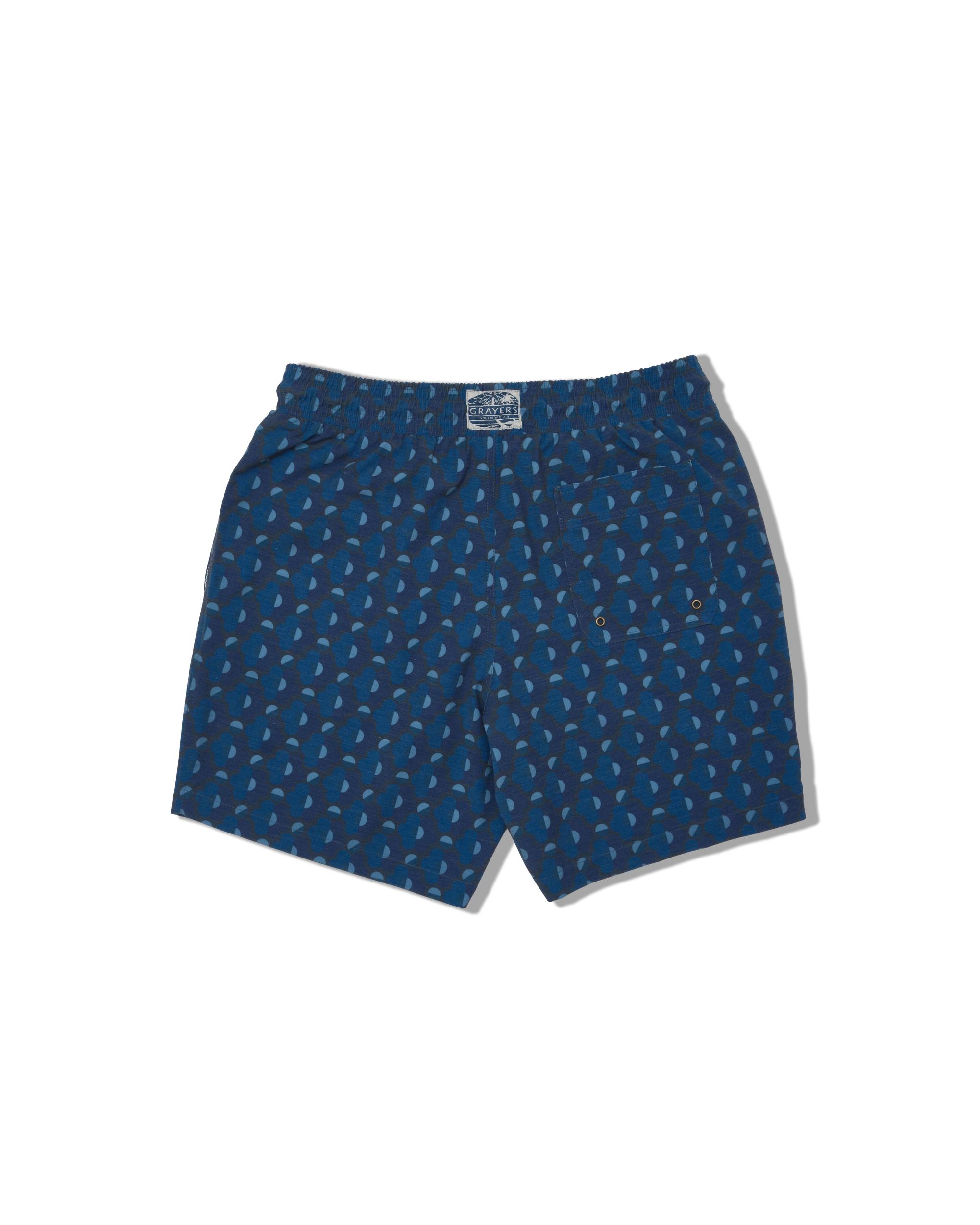 Our sustainable, eco-friendly swimwear collection is here. Crafted with recycled polyester from discarded PET-bottles,and designed with original Grayers prints, this quick-drying swim trunk allows you to ease into an apres-swim comfort. The Model is also wearing: Model: ----Details---- Elasticated waistband with tonal drawcord Original Grayers prints Side entry pockets and one rear patch pocket with velcro closure Polyester mesh brief lining and pocket bags 7" inseam Imported ----Materials---- 73% Polyester 19% Cotton 8% Spandex ----Size & Fit---- Measuring Method: All measurements are in inches and based on a flat garment, as shown below. For comparison with one of your existing garments, please lay garment on a flat surface and follow the key measurement points. For chest and neck, if you double the flat measurement, you will get close to the full body measurement. ----Care---- Machine Wash Cold Separately Do Not Use Chlorine Bleach Do Not Tumble Dry Do Not Iron Line Dry