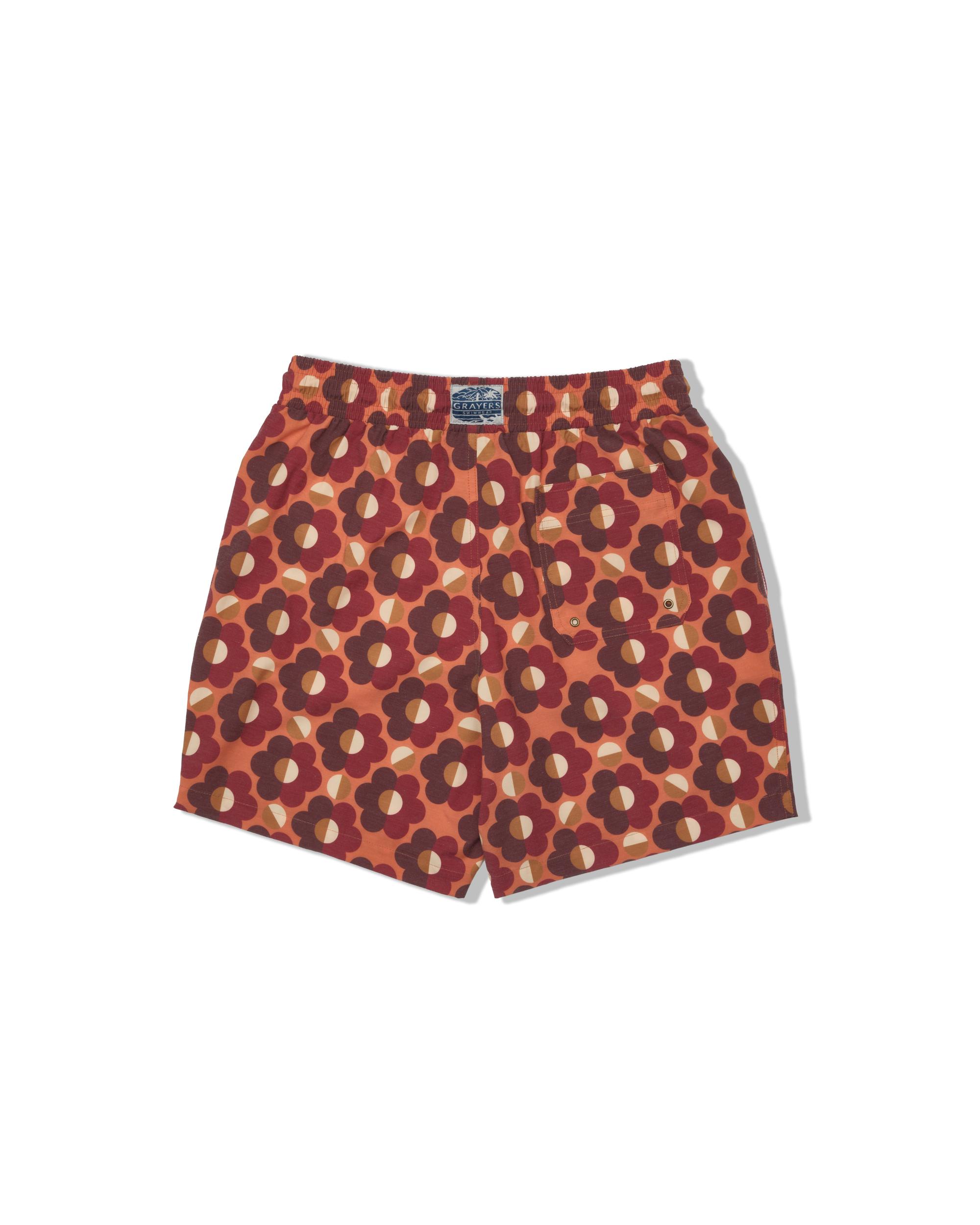 Our sustainable, eco-friendly swimwear collection is here. Crafted with recycled polyester from discarded PET-bottles,and designed with original Grayers prints, this quick-drying swim trunk allows you to ease into an apres-swim comfort. The Model is also wearing: Model: ----Details---- Elasticated waistband with tonal drawcord Original Grayers prints Side entry pockets and one rear patch pocket with velcro closure Polyester mesh brief lining and pocket bags 7" inseam Imported ----Materials---- 73% Polyester 19% Cotton 8% Spandex ----Size & Fit---- Measuring Method: All measurements are in inches and based on a flat garment, as shown below. For comparison with one of your existing garments, please lay garment on a flat surface and follow the key measurement points. For chest and neck, if you double the flat measurement, you will get close to the full body measurement. ----Care---- Machine Wash Cold Separately Do Not Use Chlorine Bleach Do Not Tumble Dry Do Not Iron Line Dry