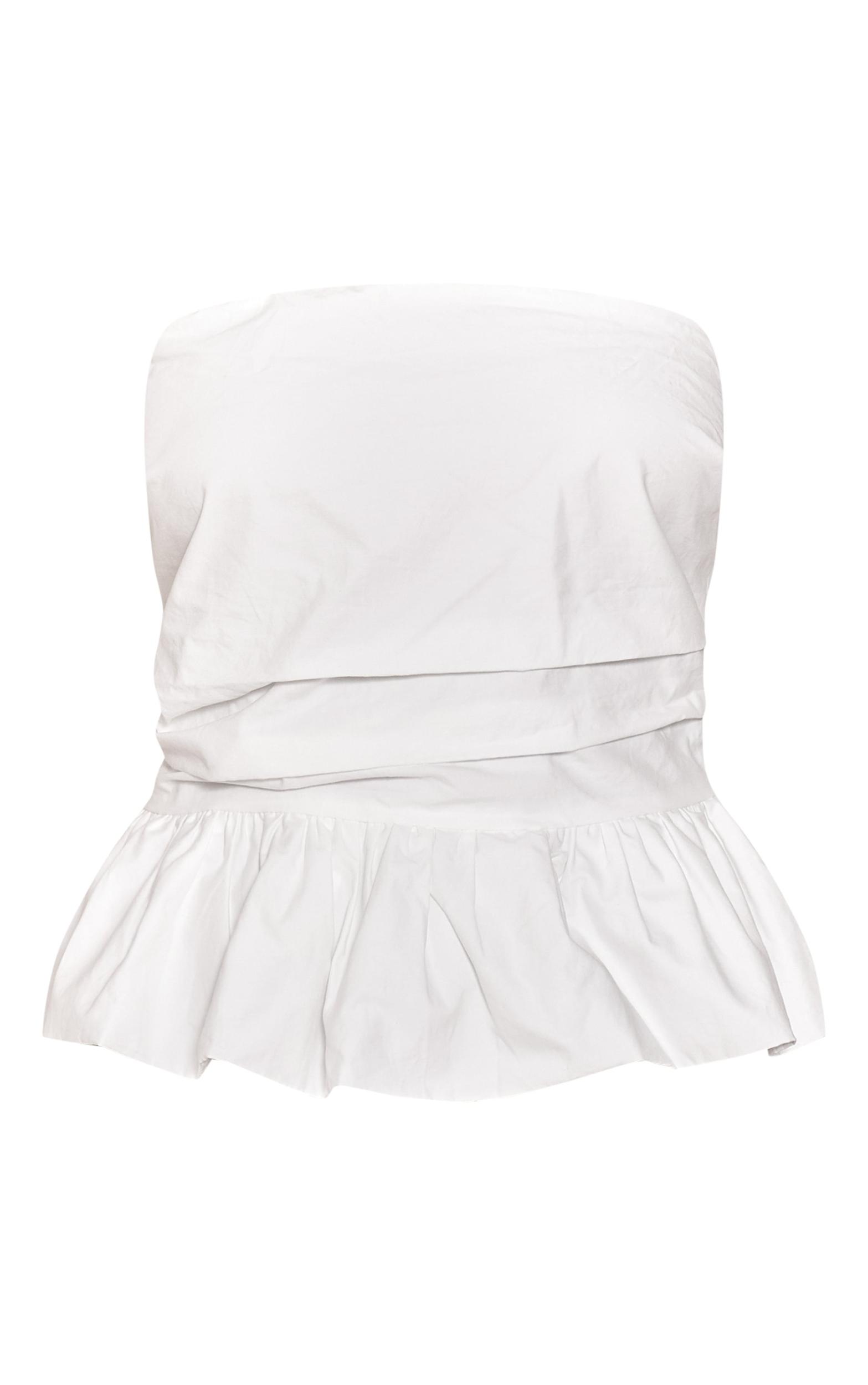 Elevate your look with this ecru cotton bandeau peplum frill top. Made from soft ecru material, this top has a sleek bandeau neckline and a frilly peplum hem. Pair it with a mini skirt, chunky bangles and your favorite heels for a polished finish.Length approx 34.5cm/13.5inch (Based on sample size US 4)Model wears size UK 8/ EU 36/ AUS 8/ US 4Model Height - 5ft 7inchp]:!mb-4inch>Brand: PrettyLittleThingCategory: TopsProduct type: Bandeau TopColor: CreamMaterial: Cotton PoplinDesign: PlainNeckline: BandeauSleeves: BandeauOccasion: Day