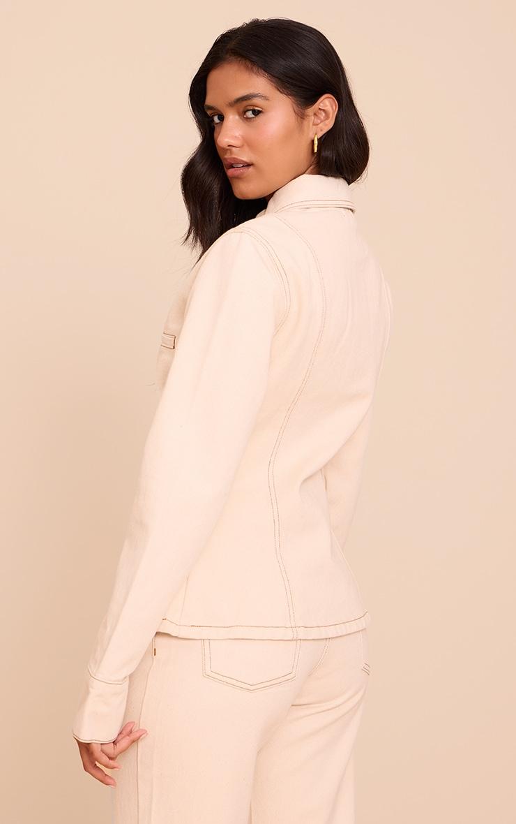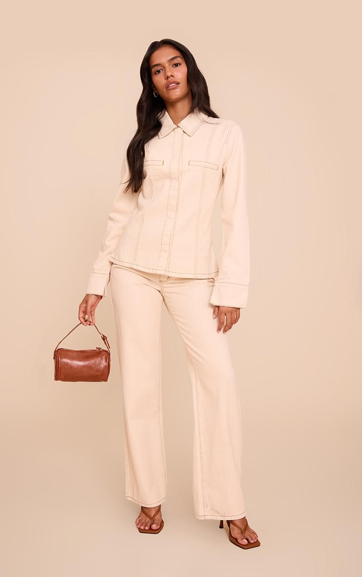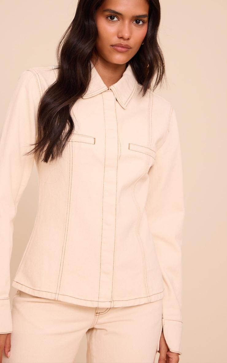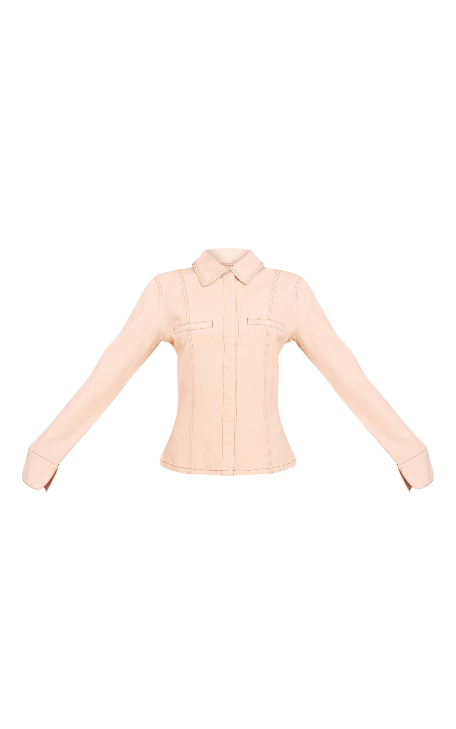 Refined utility defines your next denim moment. The ecru linen look denim cinched waist seam detail shirt elevates a classic cut with its crisp collared neckline and long sleeves, finished with broad cuffs. Notice the precise vertical seam detailing and an artfully shaped waist, creating a streamlined, knowing silhouette. A neat button-front offers a polished finish. For a cohesive approach to daywear, team this shirt with the matching ecru wide-leg pants. Alternatively, style it unbuttoned over a fitted Vest and dark wash straight-leg jeans for an assured, laid-back aesthetic.Length approx 48.5cm/19inch (Based on sample size US 4)Model wears size UK 8/ EU 36/ AUS 8/ US 4Model Height - 5ft 7inchp]:!mb-4inch>Brand: PrettyLittleThingCategory: DenimProduct type: TopColor: Linen Material: Rigid DenimDesign: PlainNeckline: ShirtSleeves: LongOccasion: Day