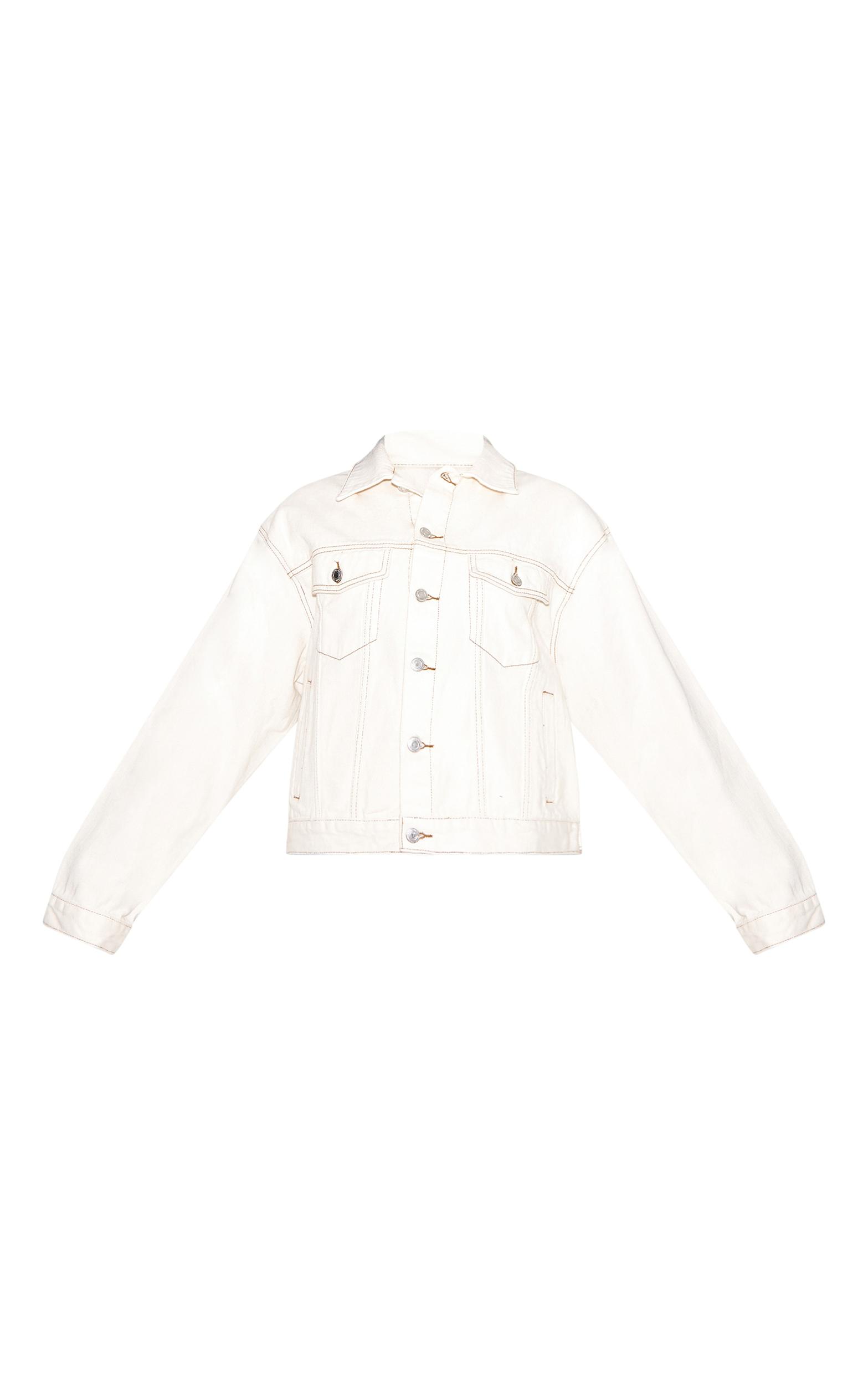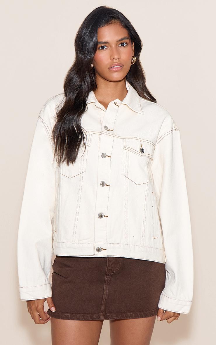 Stay classic with the ecru oversized classic denim jacket, a timeless layering piece for every wardrobe. Made from durable denim fabric in a versatile ecru shade with an oversized fit that’s perfect for layering over any outfit. The classic button front and chest pockets add authentic denim styling. Wear over dresses or with a mini skirt for a laid back, cool look all year round.Length approx 48.5cm/19inch (Based on sample size US 4)Model wears size UK 8/ EU 36/ AUS 8/ US 4Model Height - 5ft 7inchp]:!mb-4inch>Brand: PrettyLittleThingCategory: DenimProduct type: Oversized denim jacketColor: EcruMaterial: Rigid DenimSleeves: LongOccasion: Day