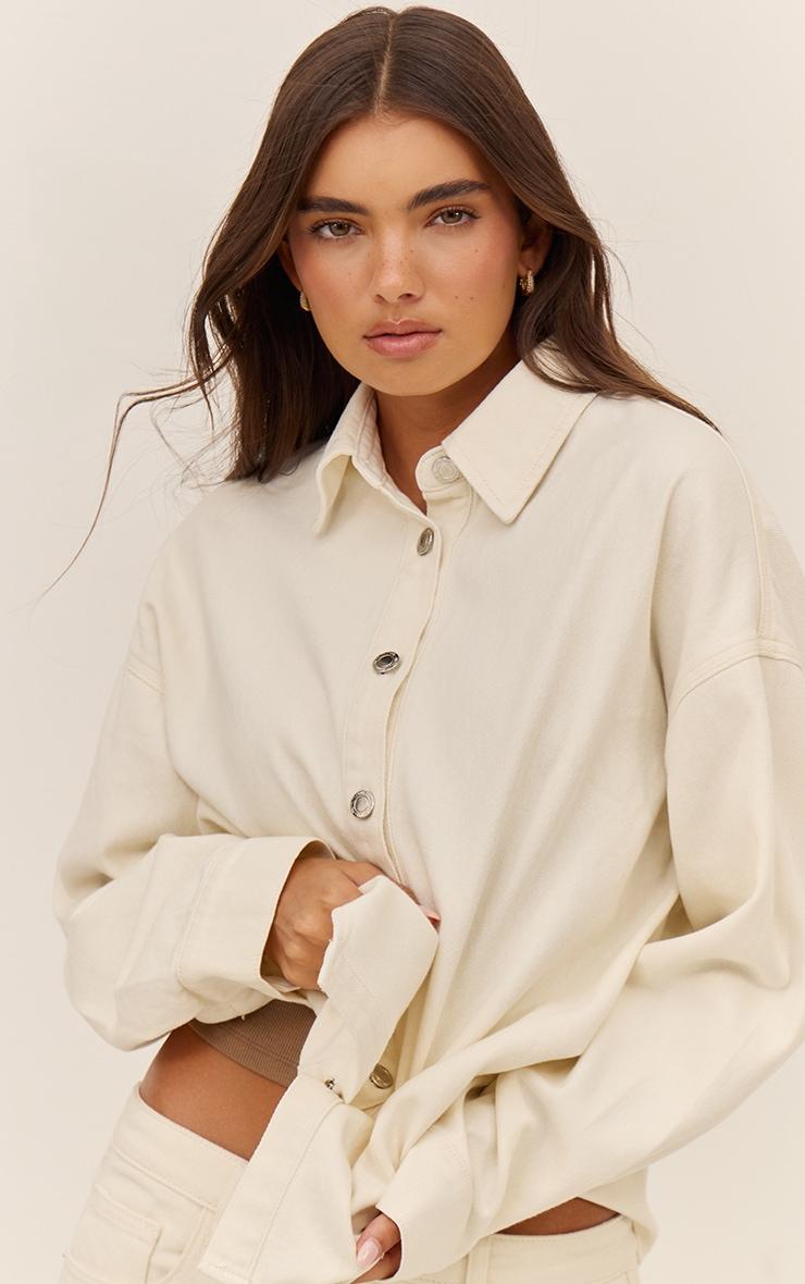Effortless style starts here. The stone cotton basic oversized long sleeve t-shirt is the ultimate core piece, defining any confident day aesthetic with its generous, relaxed cut and classic round neckline, completed by long sleeves for an easy-going feel. Pair this versatile tee with streamlined tailored pants for a sharp contrast, or opt for high-waisted denim to keep things understated. Ground your ensemble with edgy chunky boots and minimal gold accessories, proving that confident style is always this straightforward.Length approx 48.5cm/19inch (Based on sample size US 4)Model wears size UK 8/ EU 36/ AUS 8/ US 4Model Height - 5ft 7inchp]:!mb-4inch>Brand: PrettyLittleThingCategory: DenimProduct type: Denim ShirtColor: EcruMaterial: Rigid DenimOccasion: Day