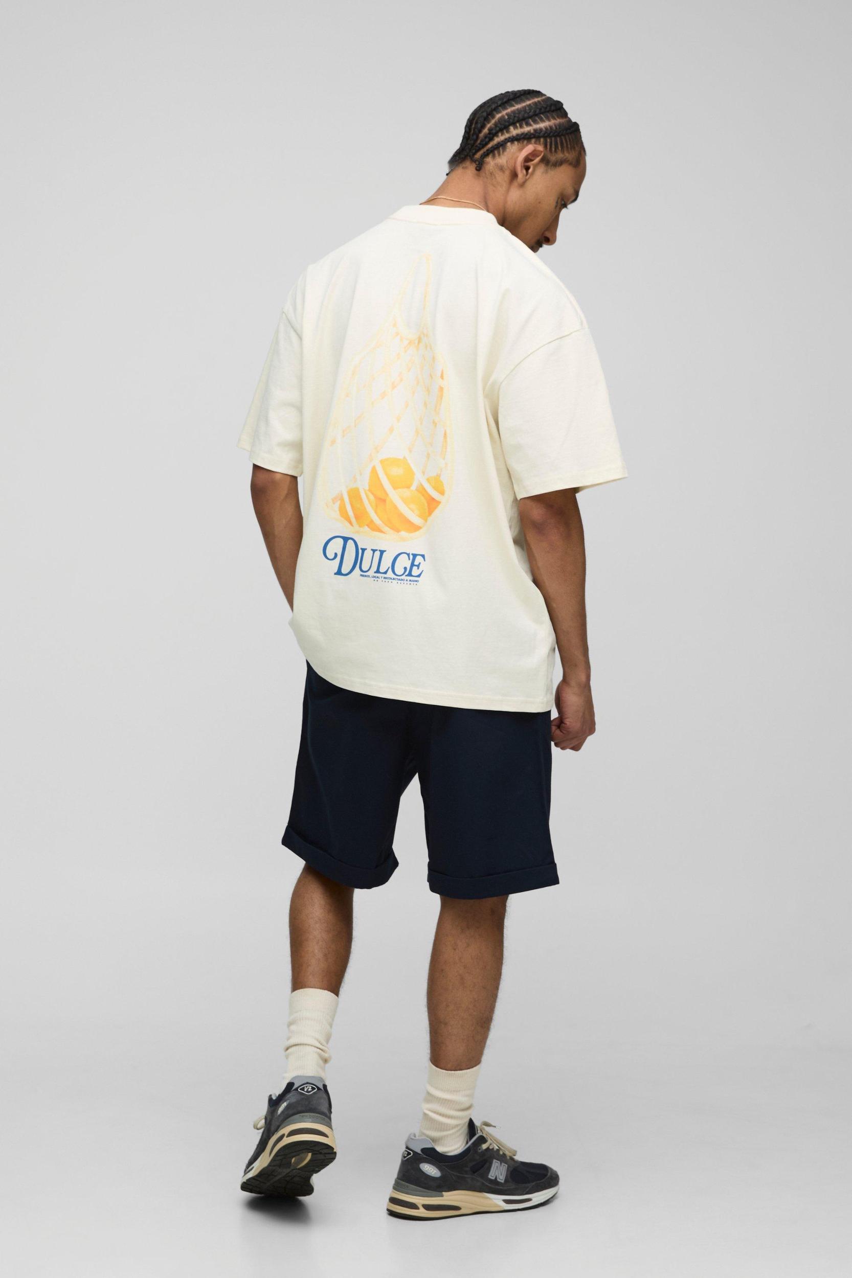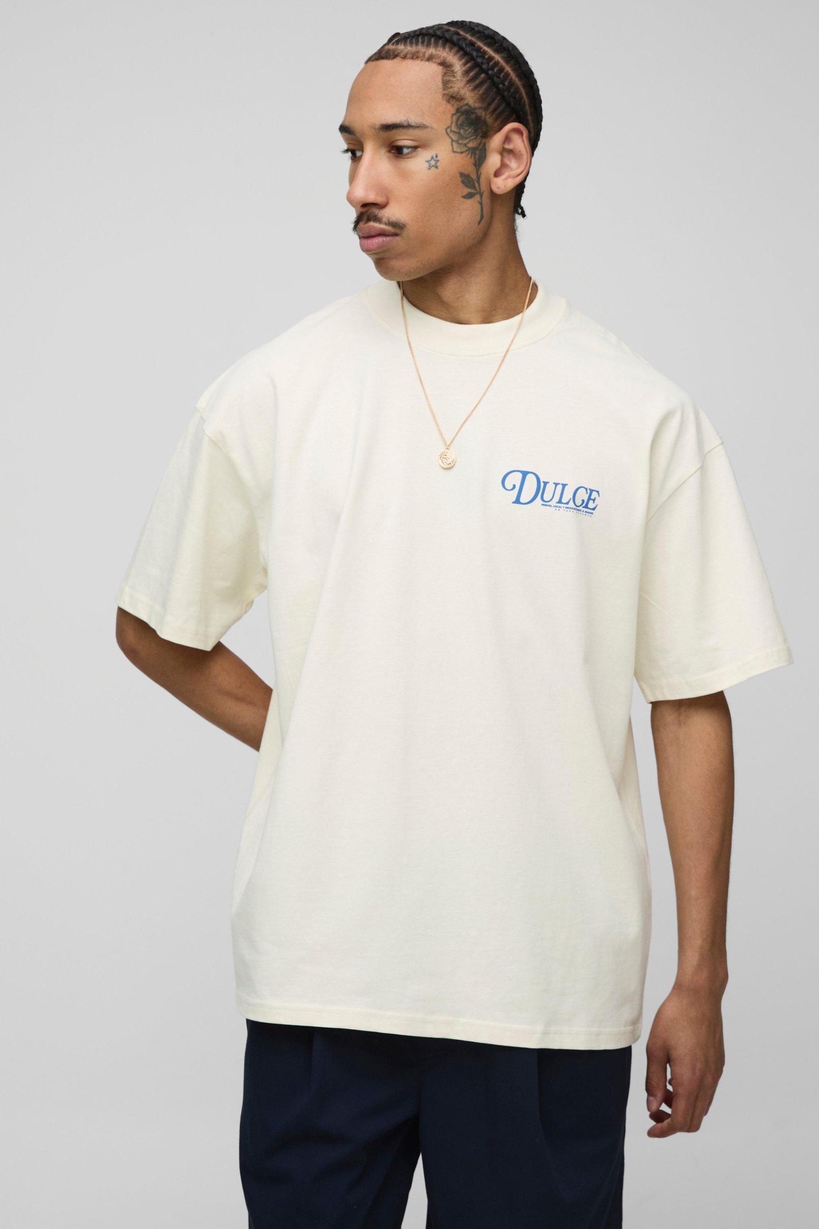 Ecru Oversized Extended Neck Dulce Clementine Graphic T-Shirt | boohooMAN USA