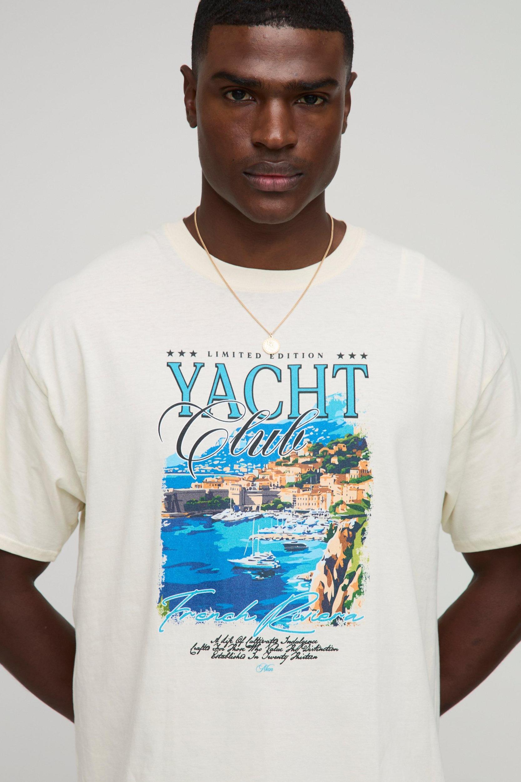 Ecru Oversized Man French Rivera Yacht Club T-Shirt | boohooMAN USA