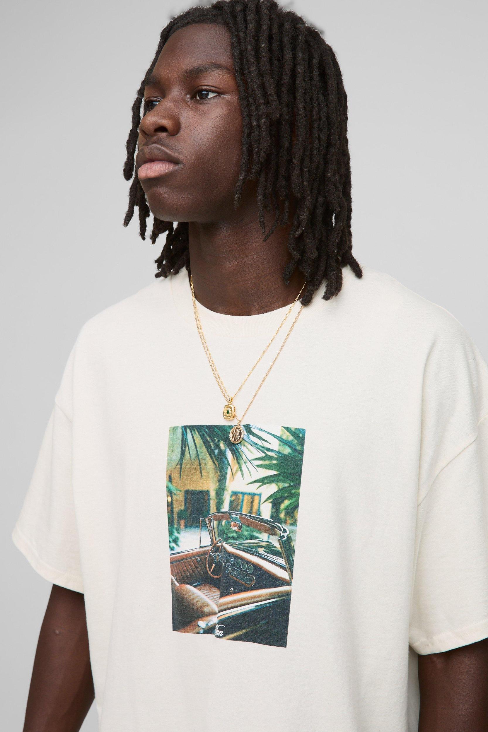 Ecru Oversized MAN Moto Printed T-Shirt | boohooMAN USA