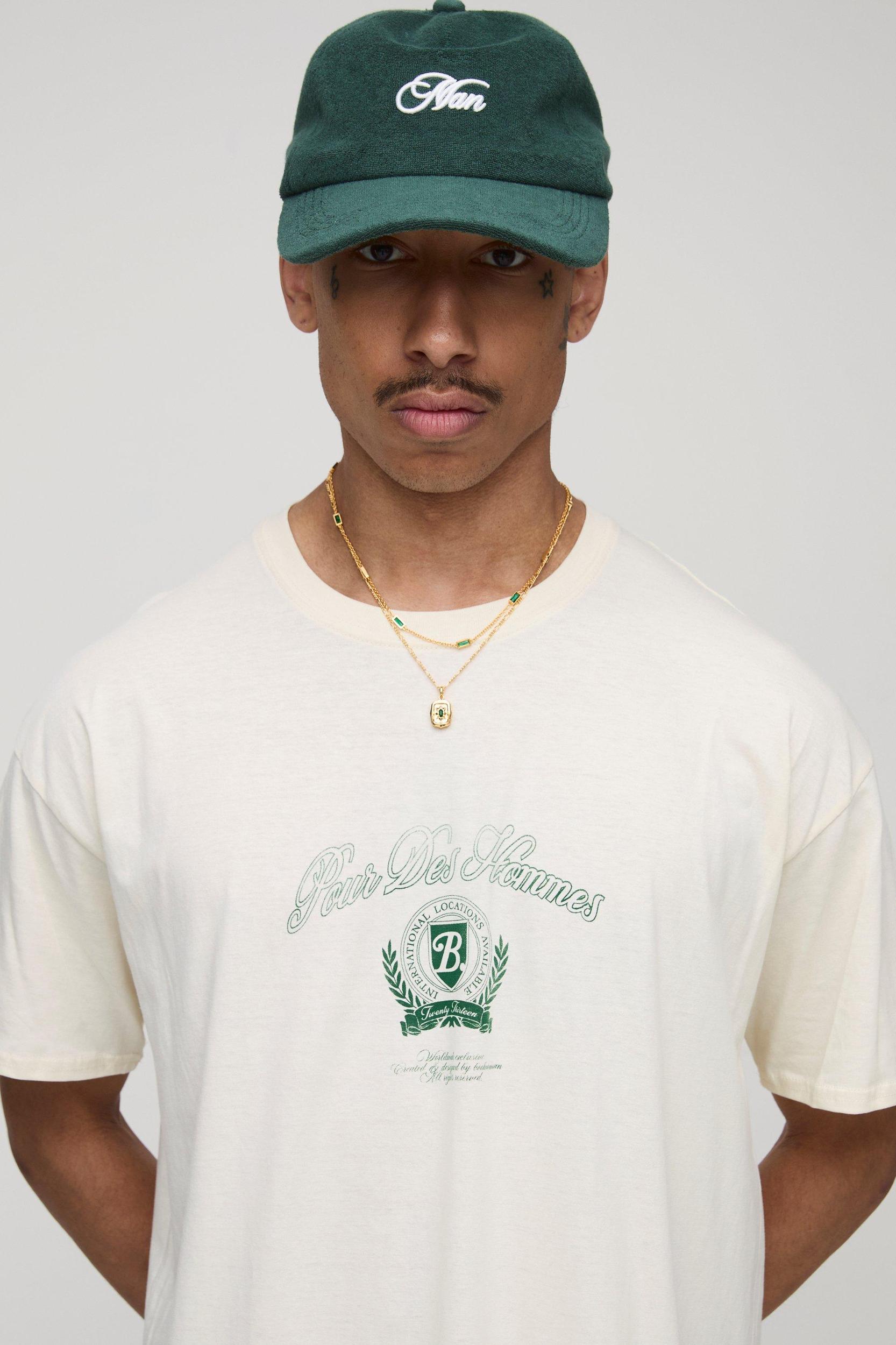 Ecru Oversized Pour Homme Crest Printed T-Shirt | boohooMAN USA