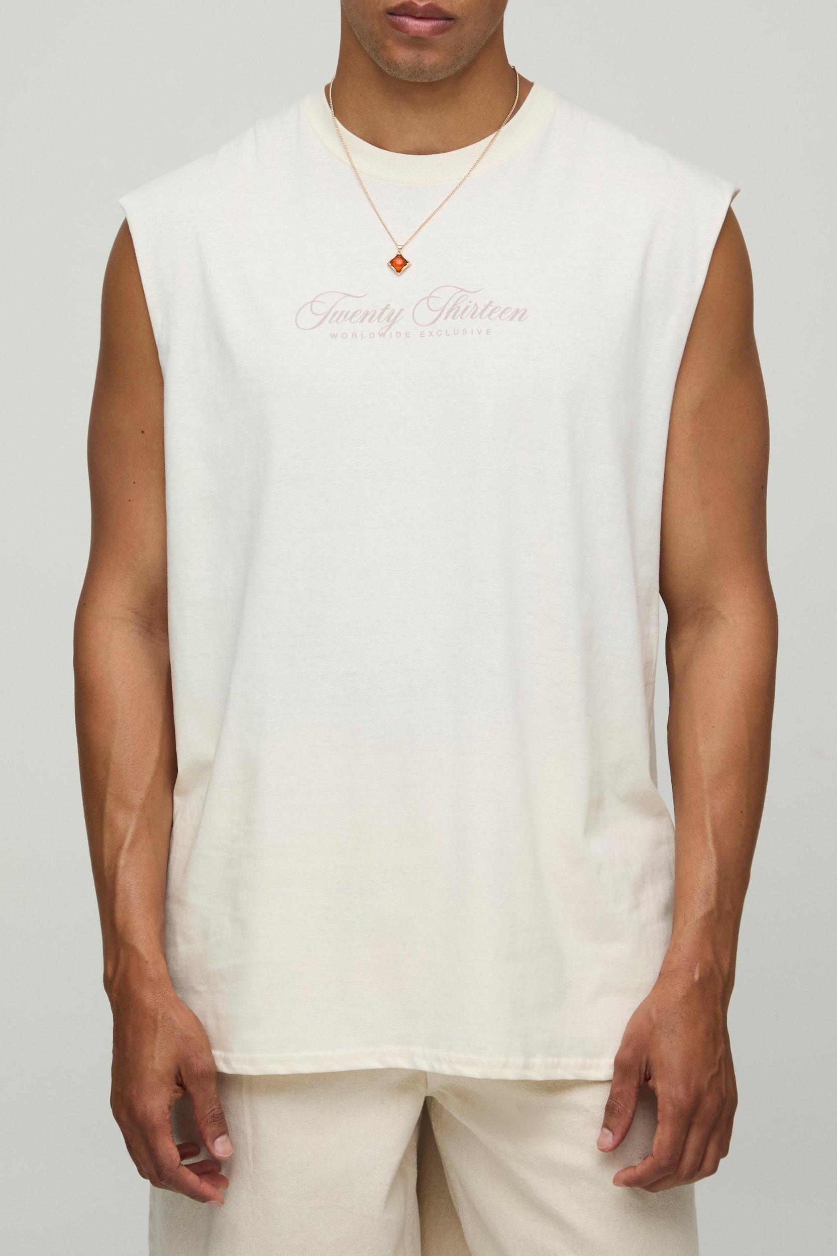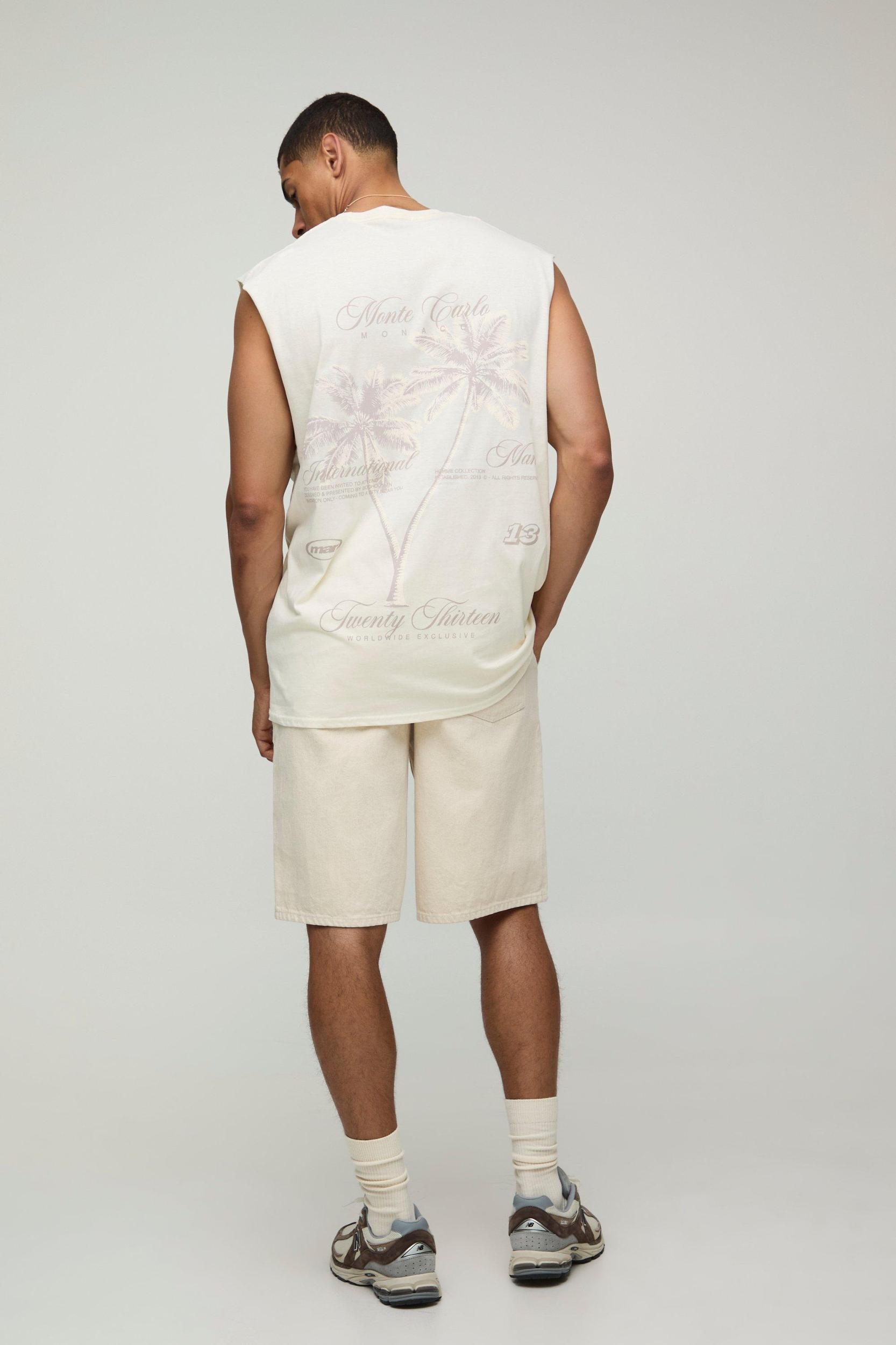 Ecru Oversized Tonal Palm Print Tank | boohooMAN USA