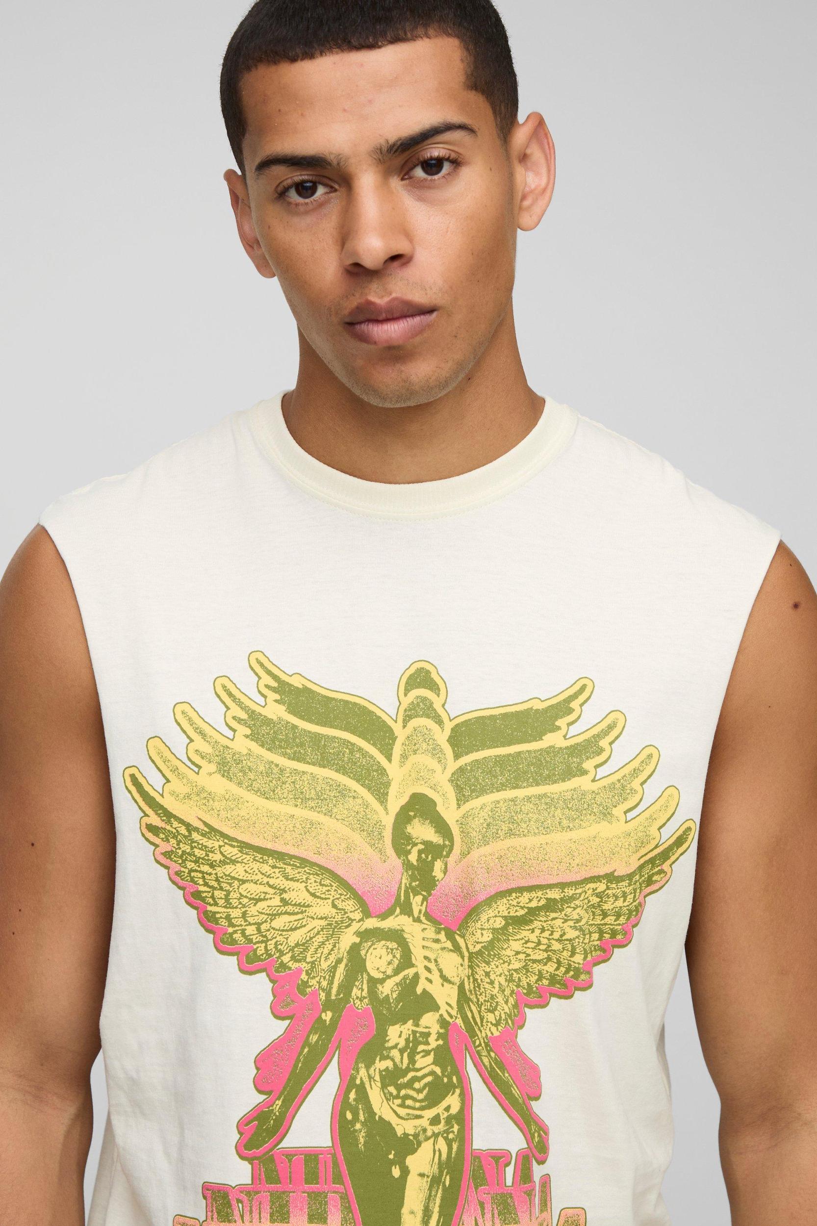 Ecru Regular Fit Nirvana License Tank | boohooMAN USA