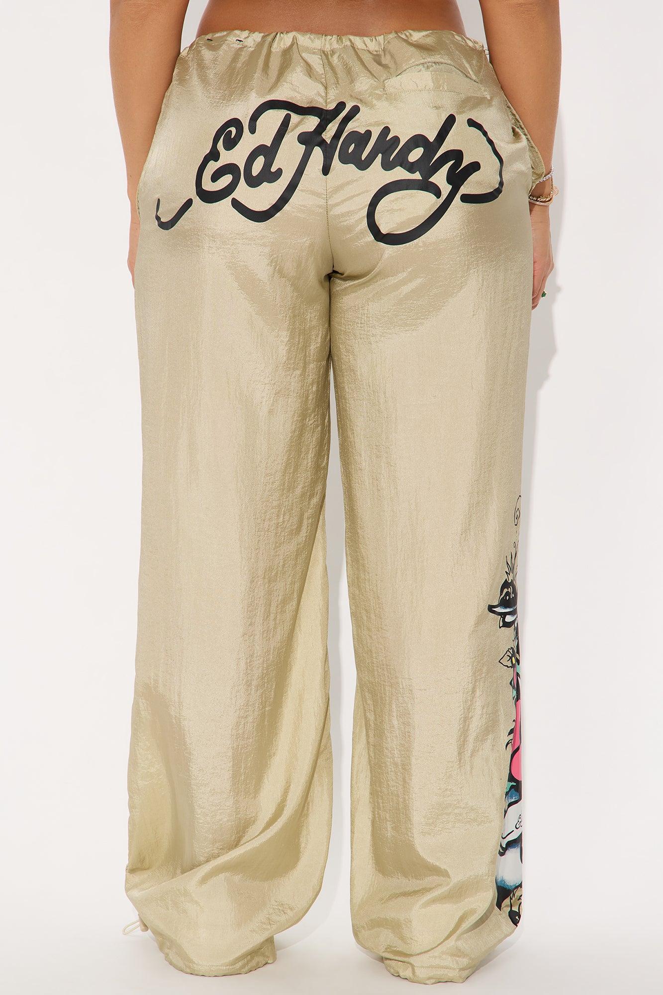 Ed Hardy Anchor Nylon Pants - Gold Female