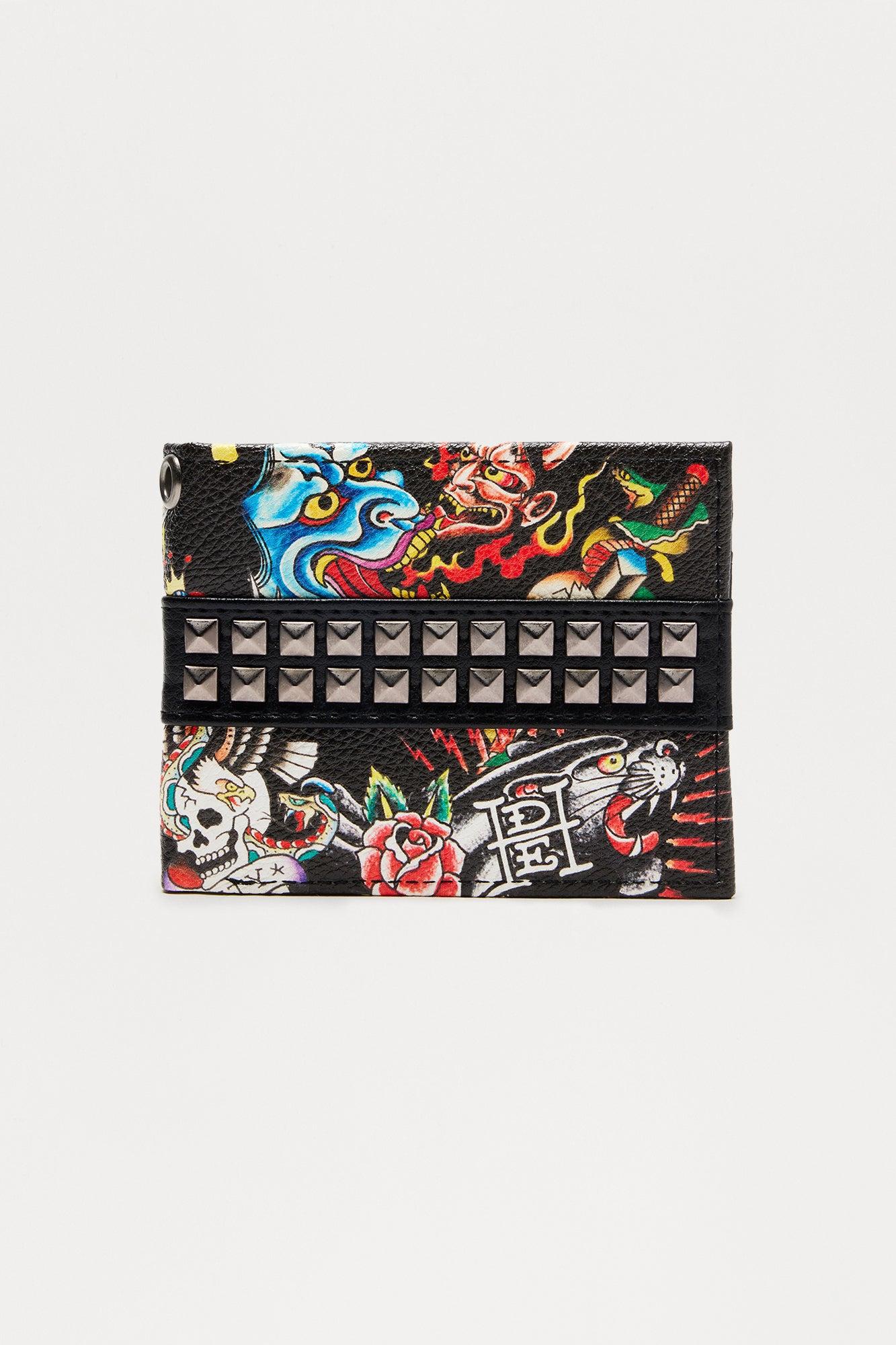 Ed Hardy Biker Chain Printed Bifold Wallet - Black/combo Male