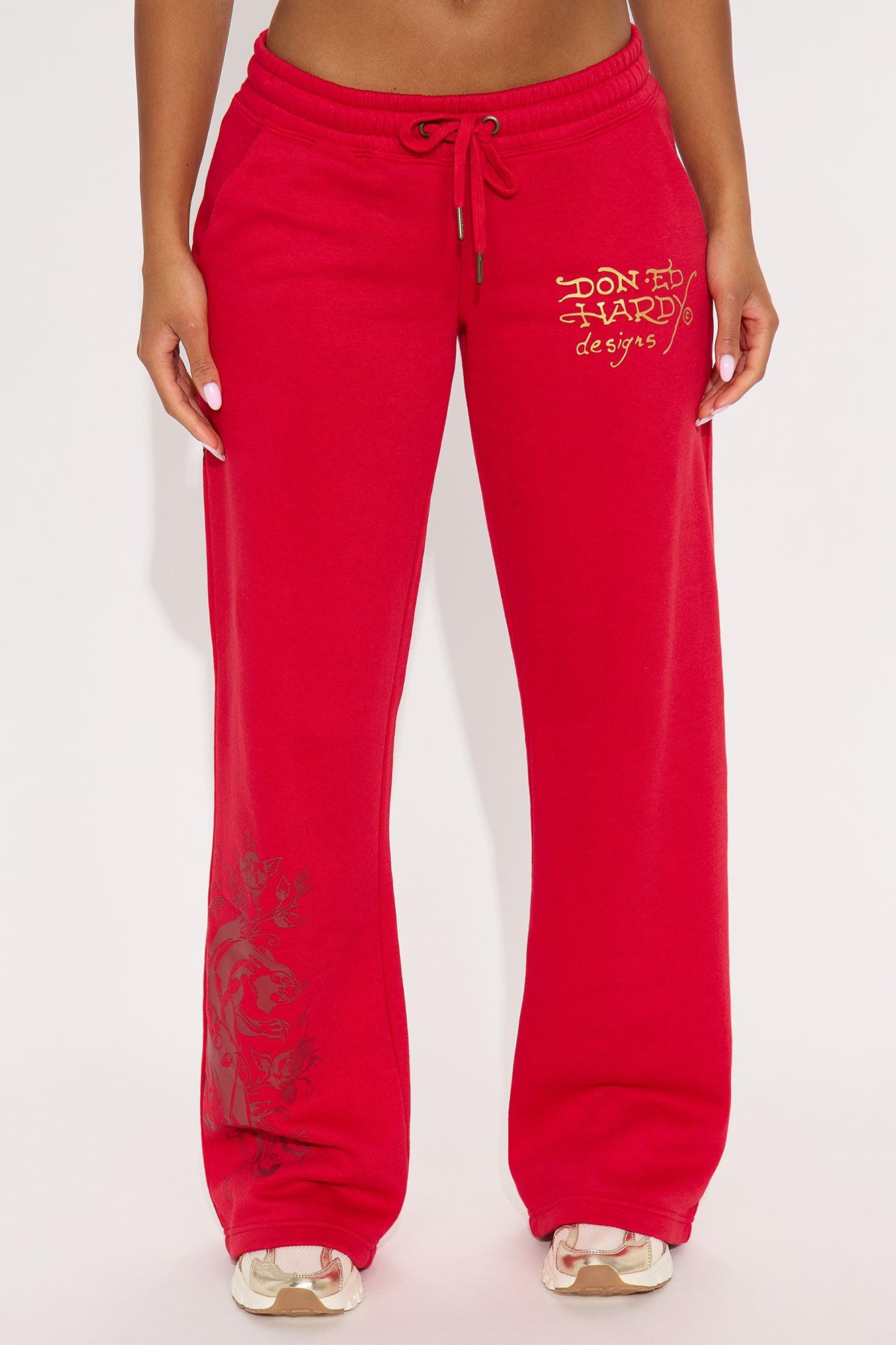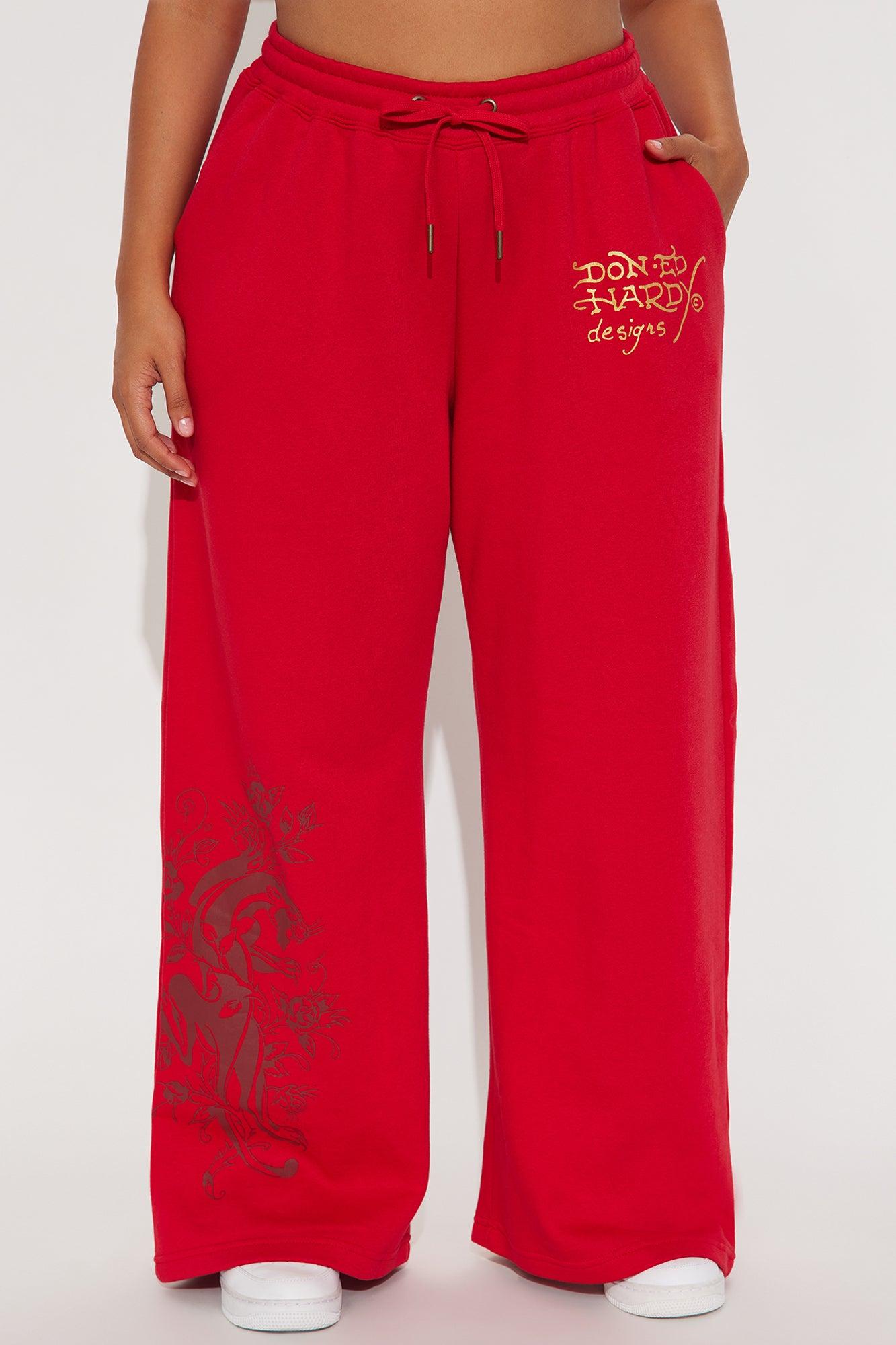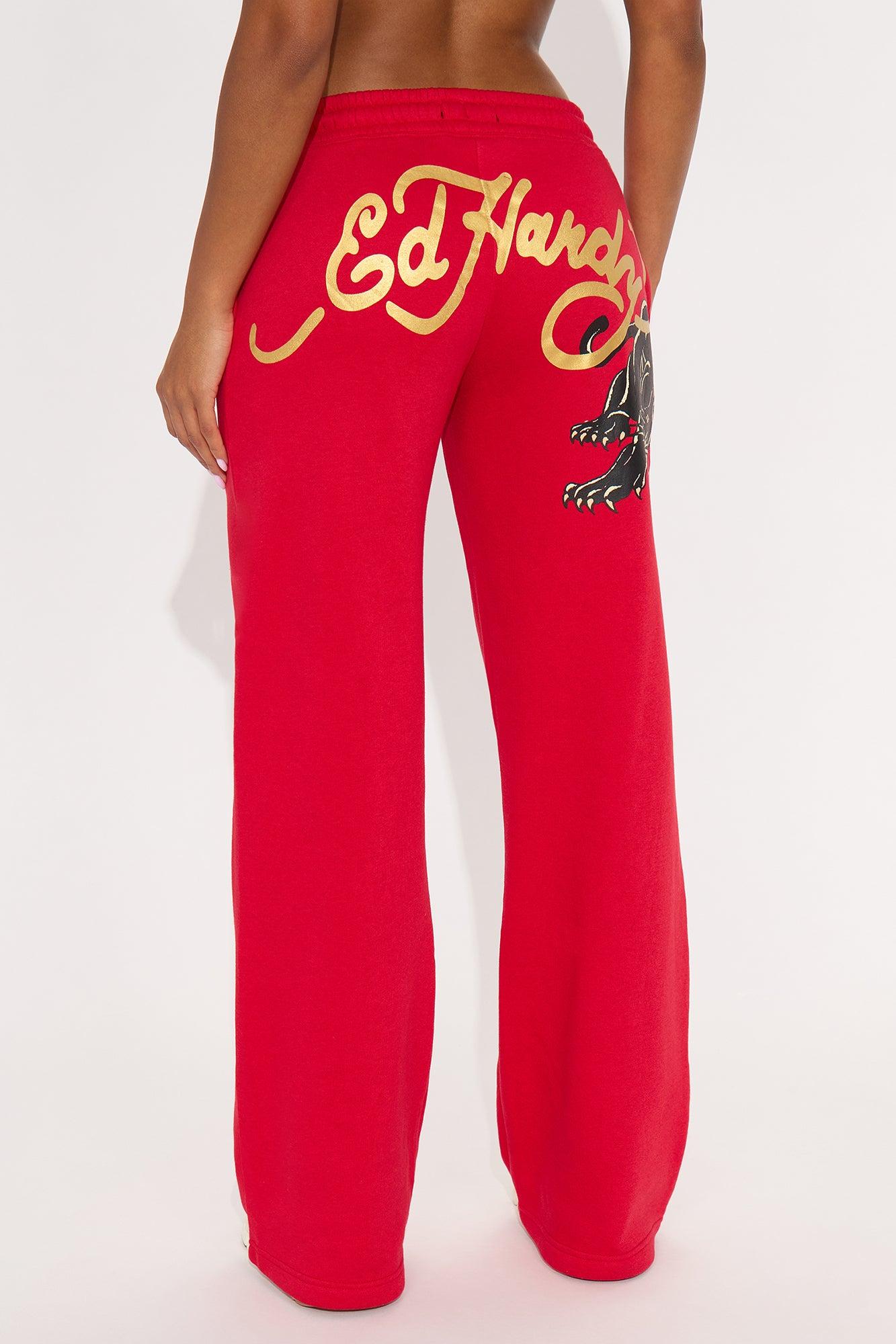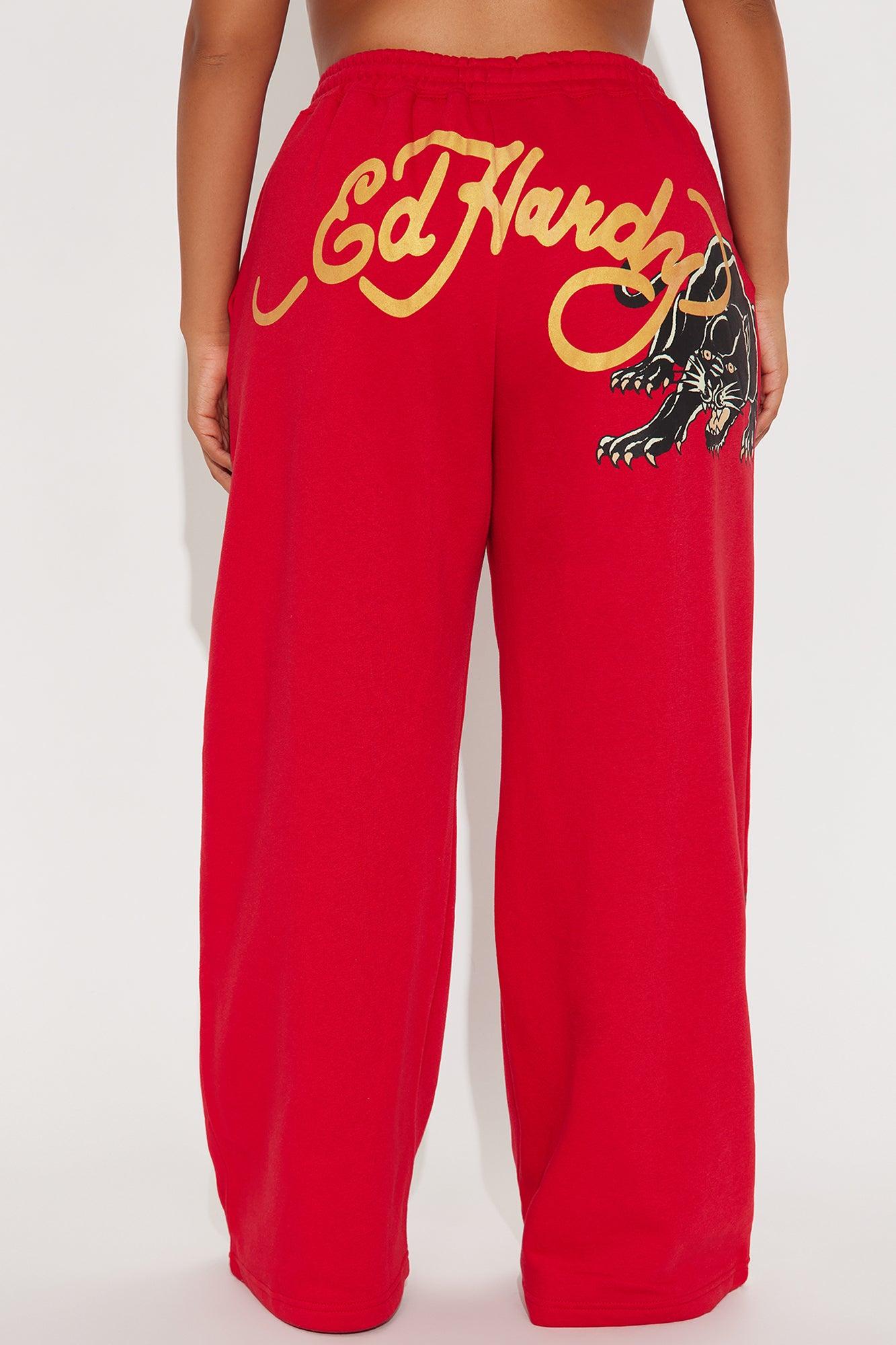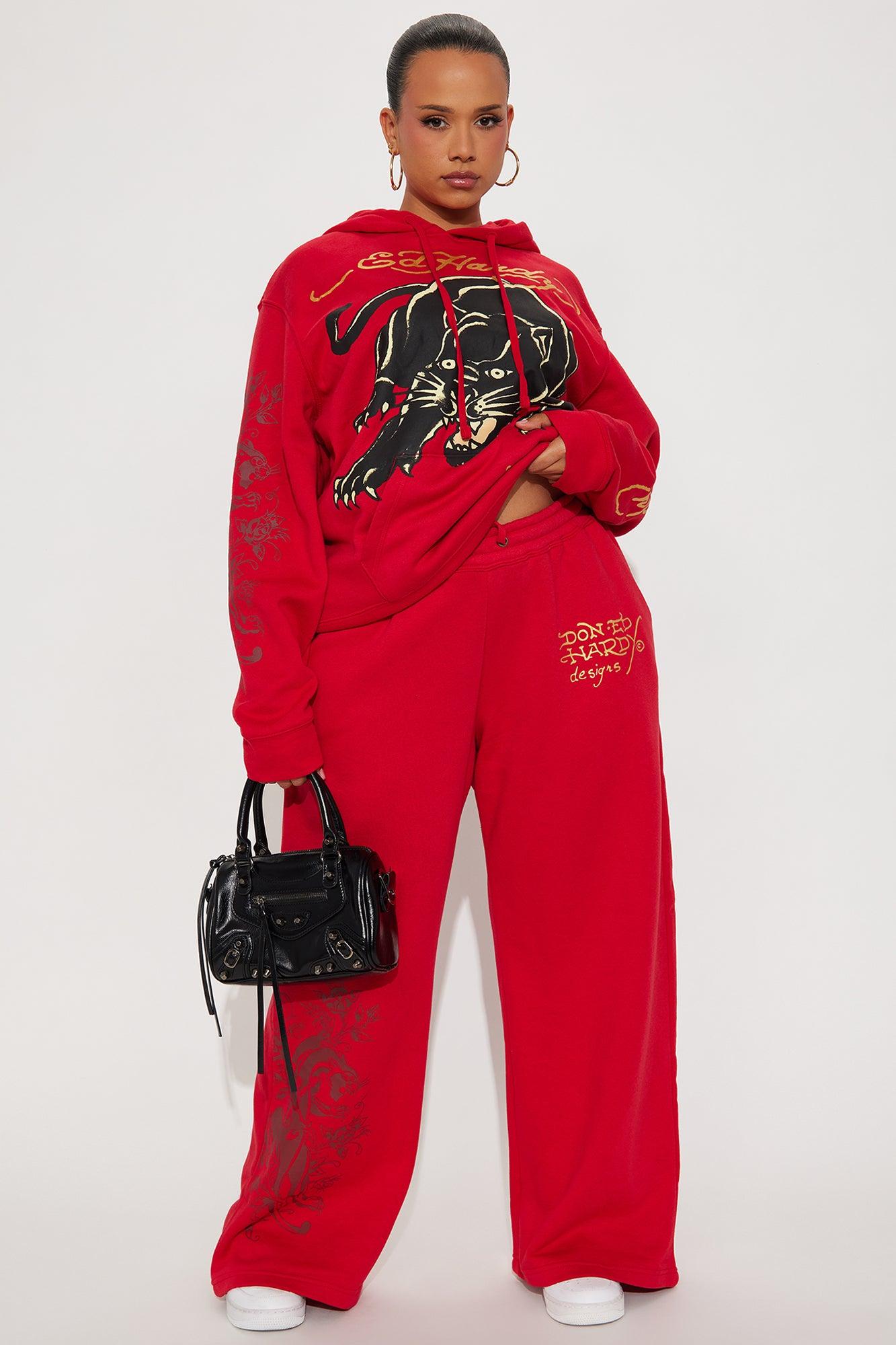 Available In Red. Wide Leg Pant Drawstring Detail Front And Back Screen Stretch Pair To "Ed Hardy Black Panther Oversized Hoodie" Disclaimer: Due To The Printing Process A Difference In Saturation May Occur. Each Garment Is Unique. Self: 55% Cotton 45% Polyester Imported