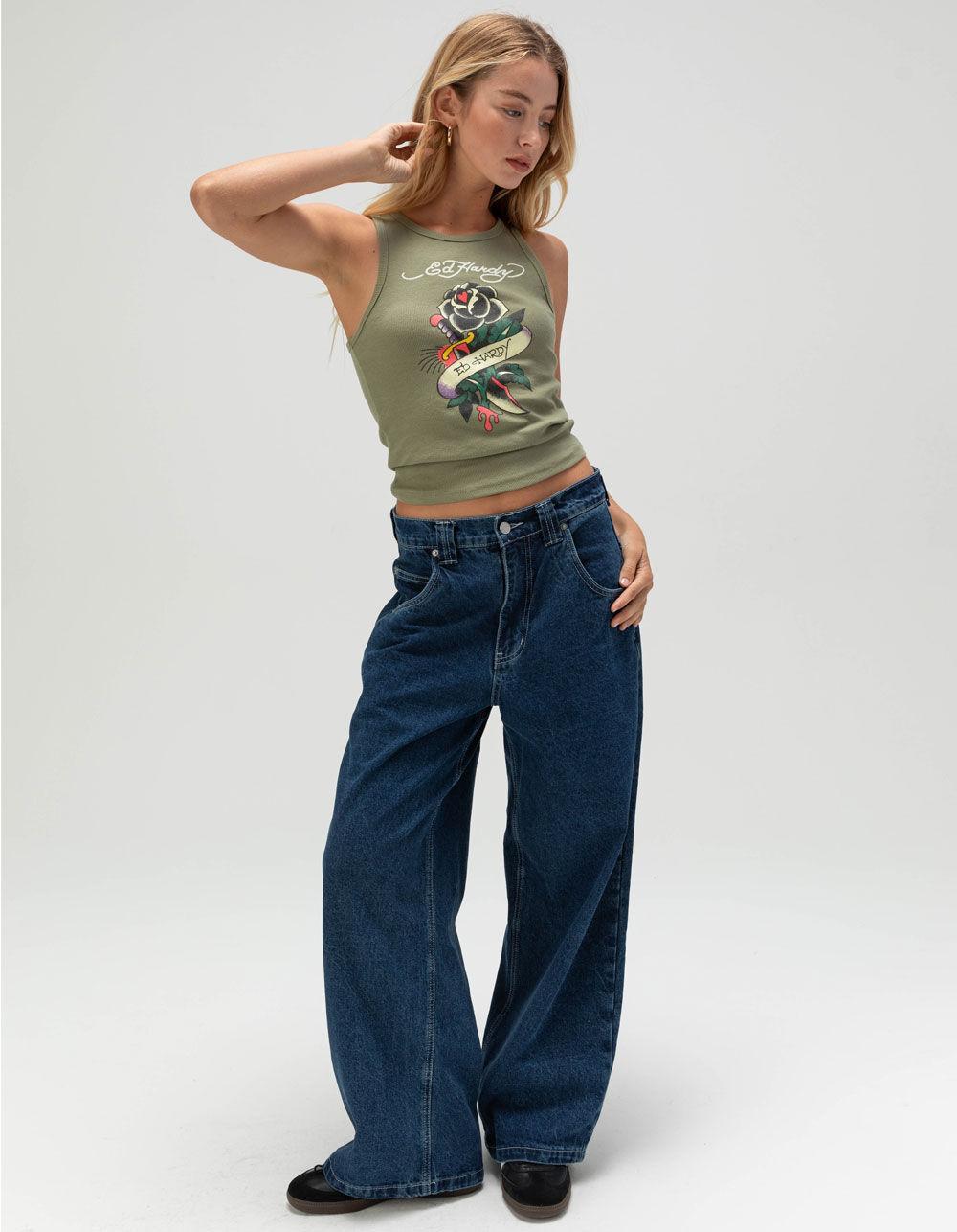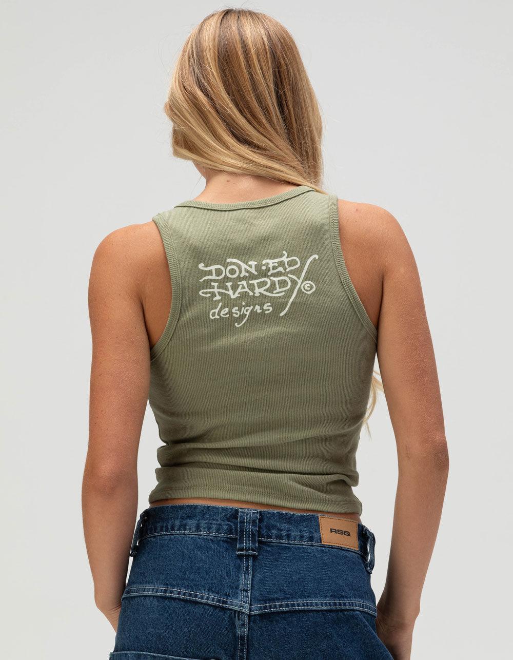 ED HARDY Black Rose Womens Tank Top - OLIVE