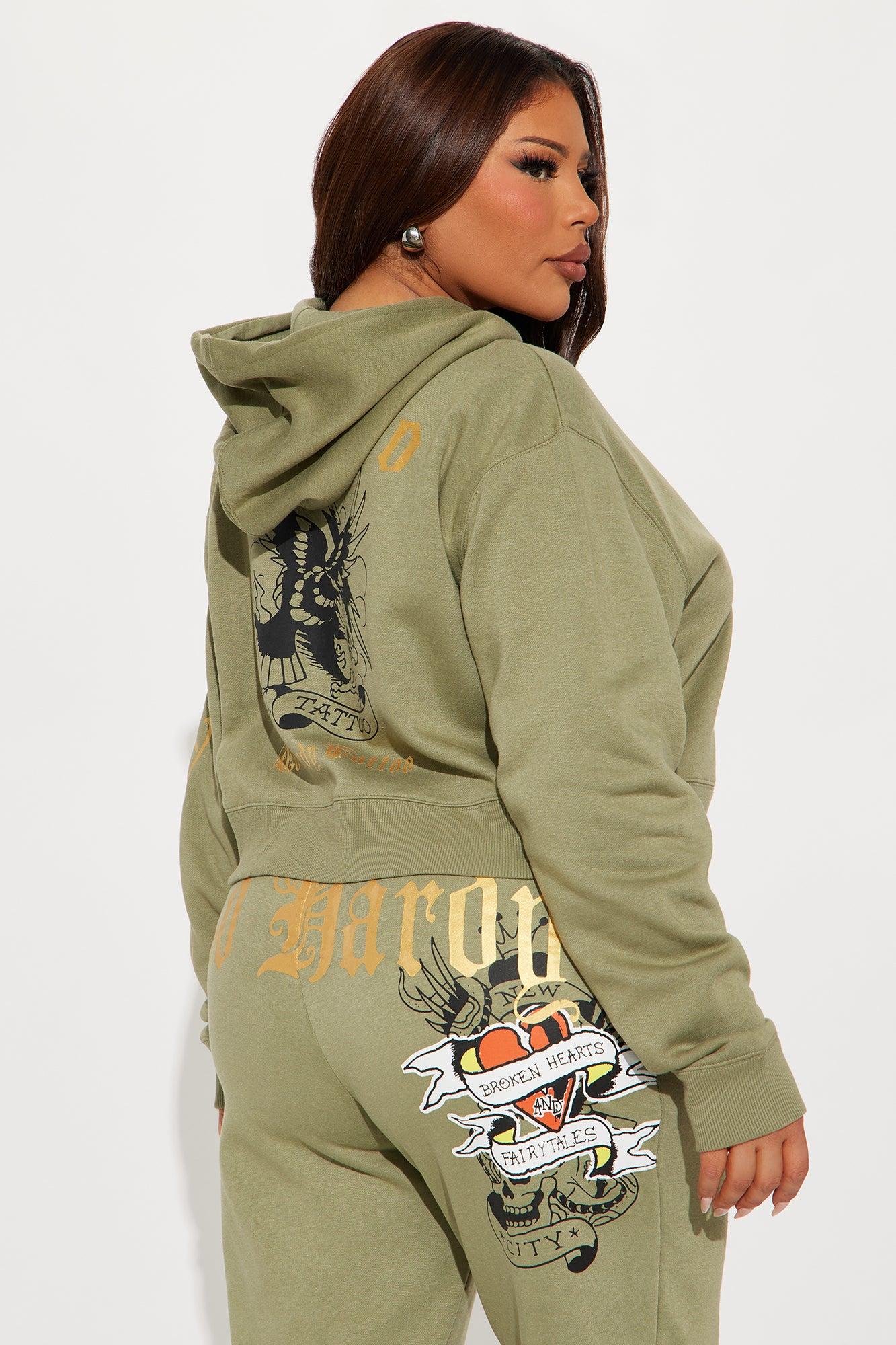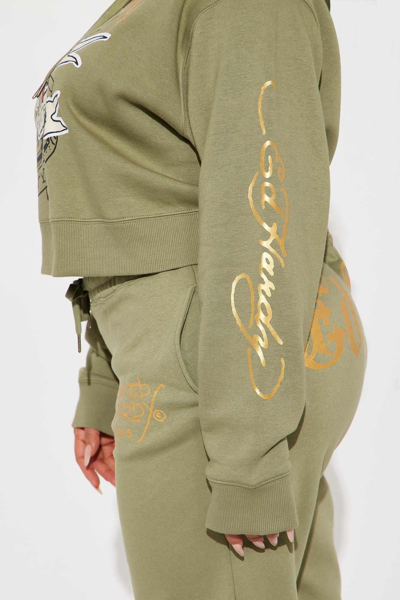 Ed Hardy Broken Hearts Cropped Hoodie - Sage
