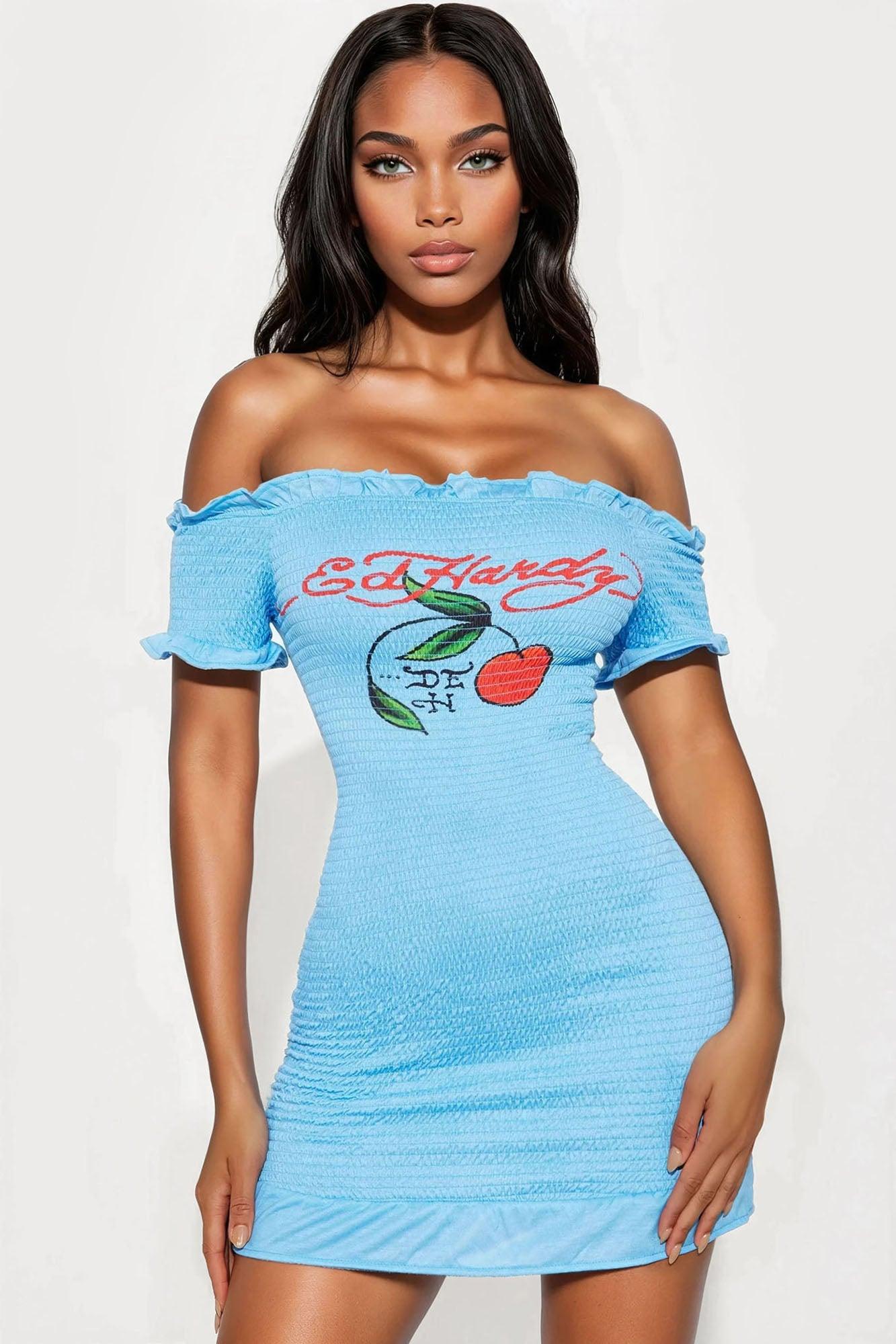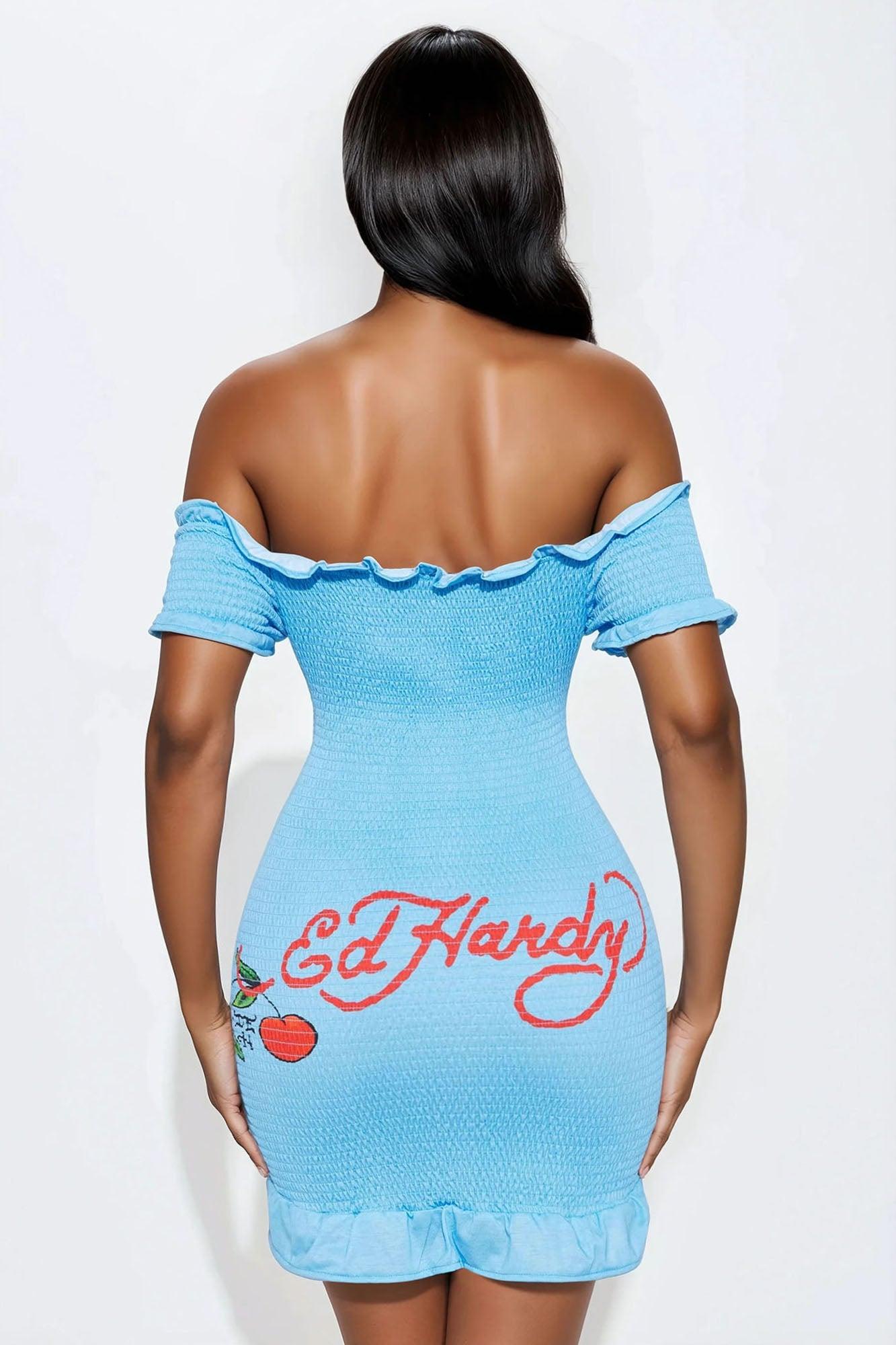 Ed Hardy Cherry Smocked Mini Dress - Blue Female