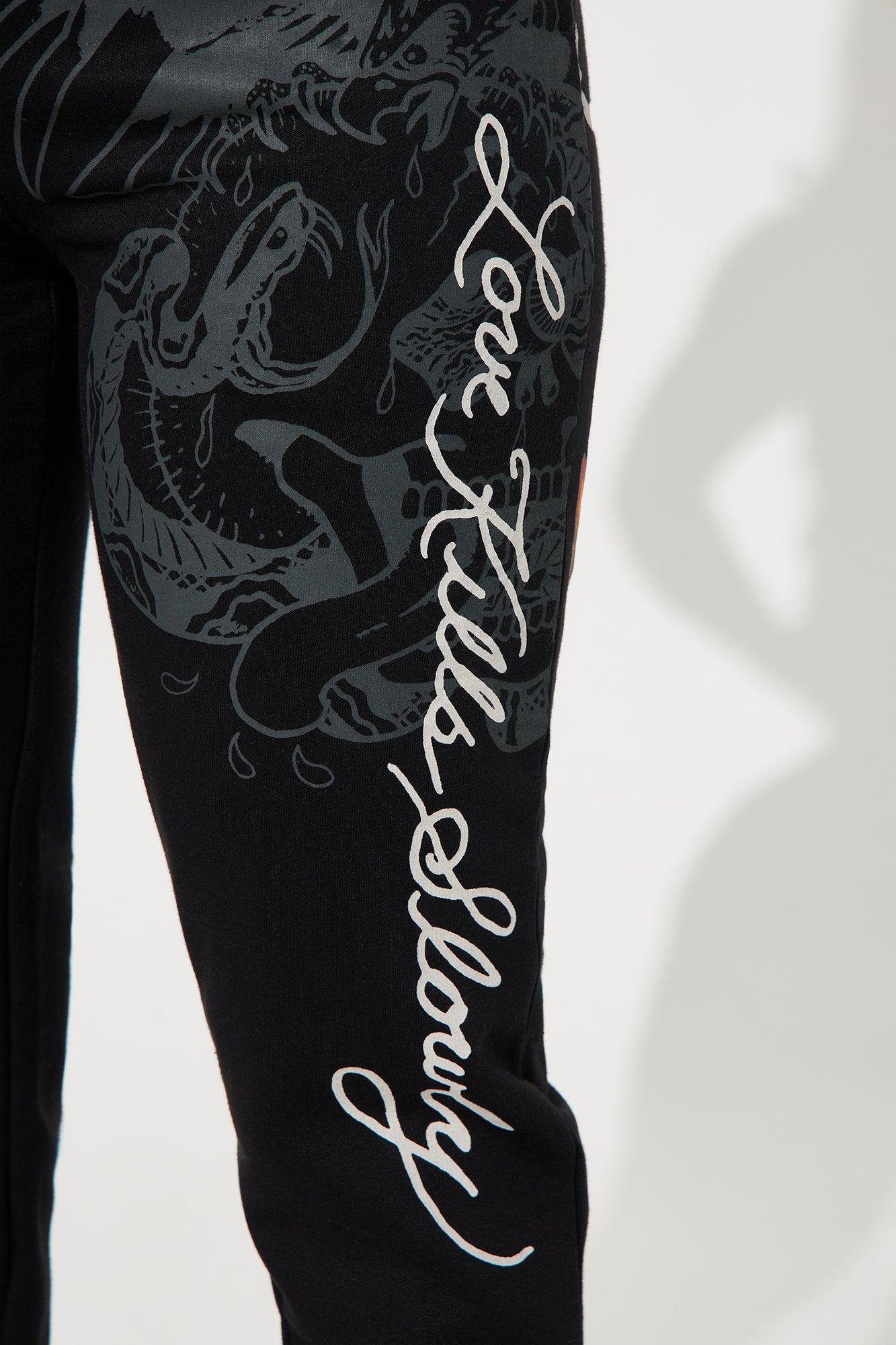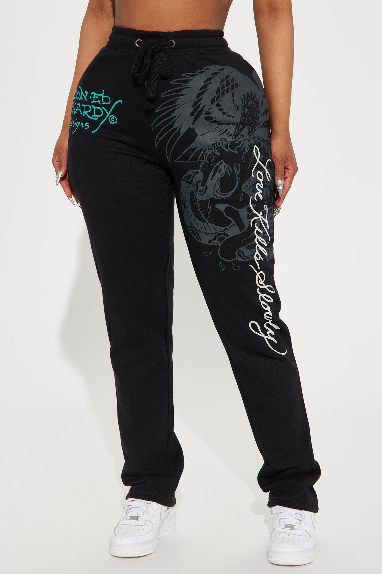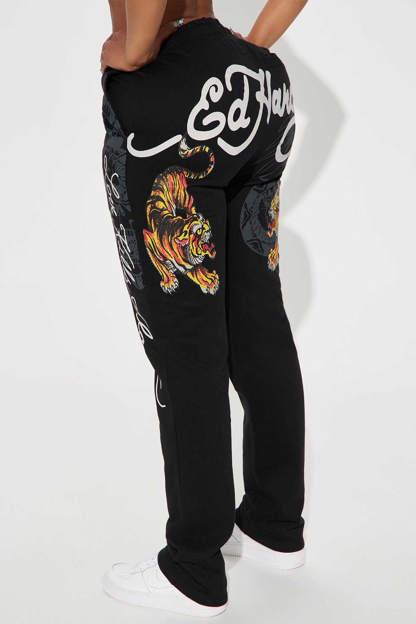 Available In Black. Wide Leg Pant Drawstrings Ed Hardy Graphic Front and Back Screen Stretch Pair Front To "Ed Hardy Crawling Tigers Zip Front Hoodie" Disclaimer: Due To The Printing Process A Difference In Saturation May Occur. Each Garment Is Unique. 53% Cotton 47% Polyester Imported