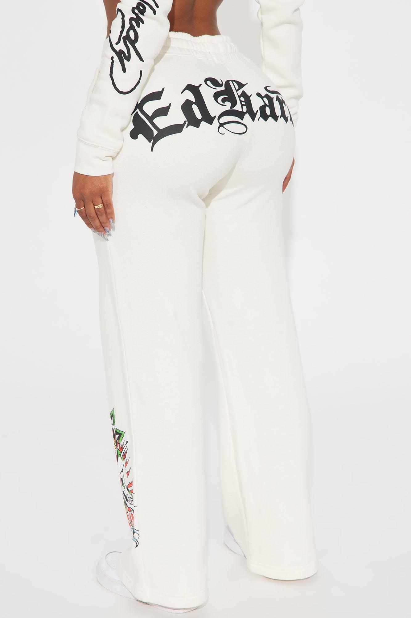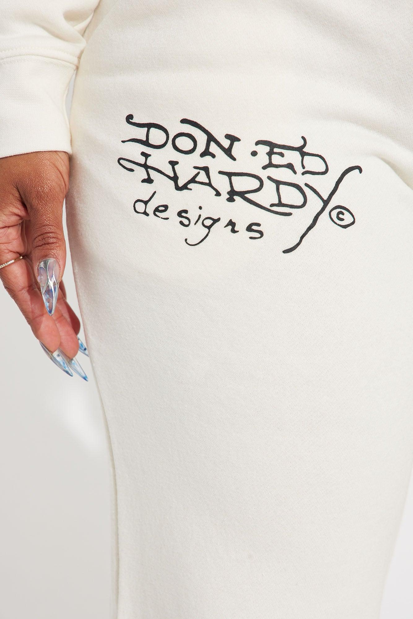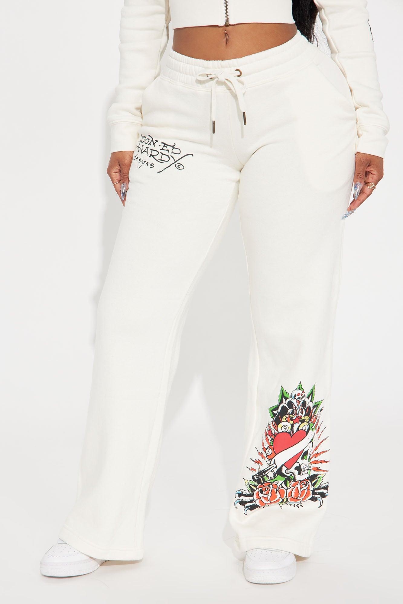 Available In Ivory. Wide Leg Pant Front And Back Screen Ed Hardy Graphic Stretch Pair To "Ed Hardy Dragon Heart Zip Front Hoodie" Disclaimer: Due To The Printing Process A Difference In Saturation May Occur. Each Garment Is Unique. 55% Cotton 45% Polyester Imported