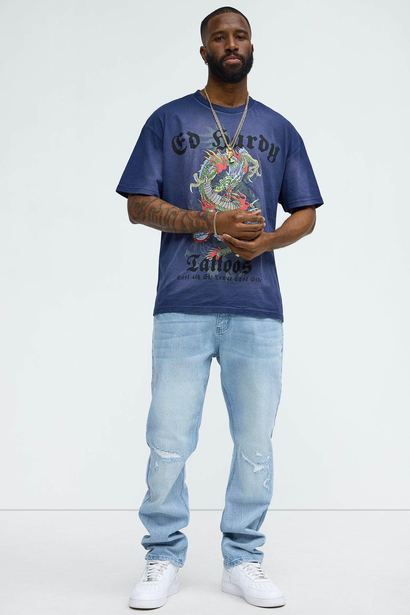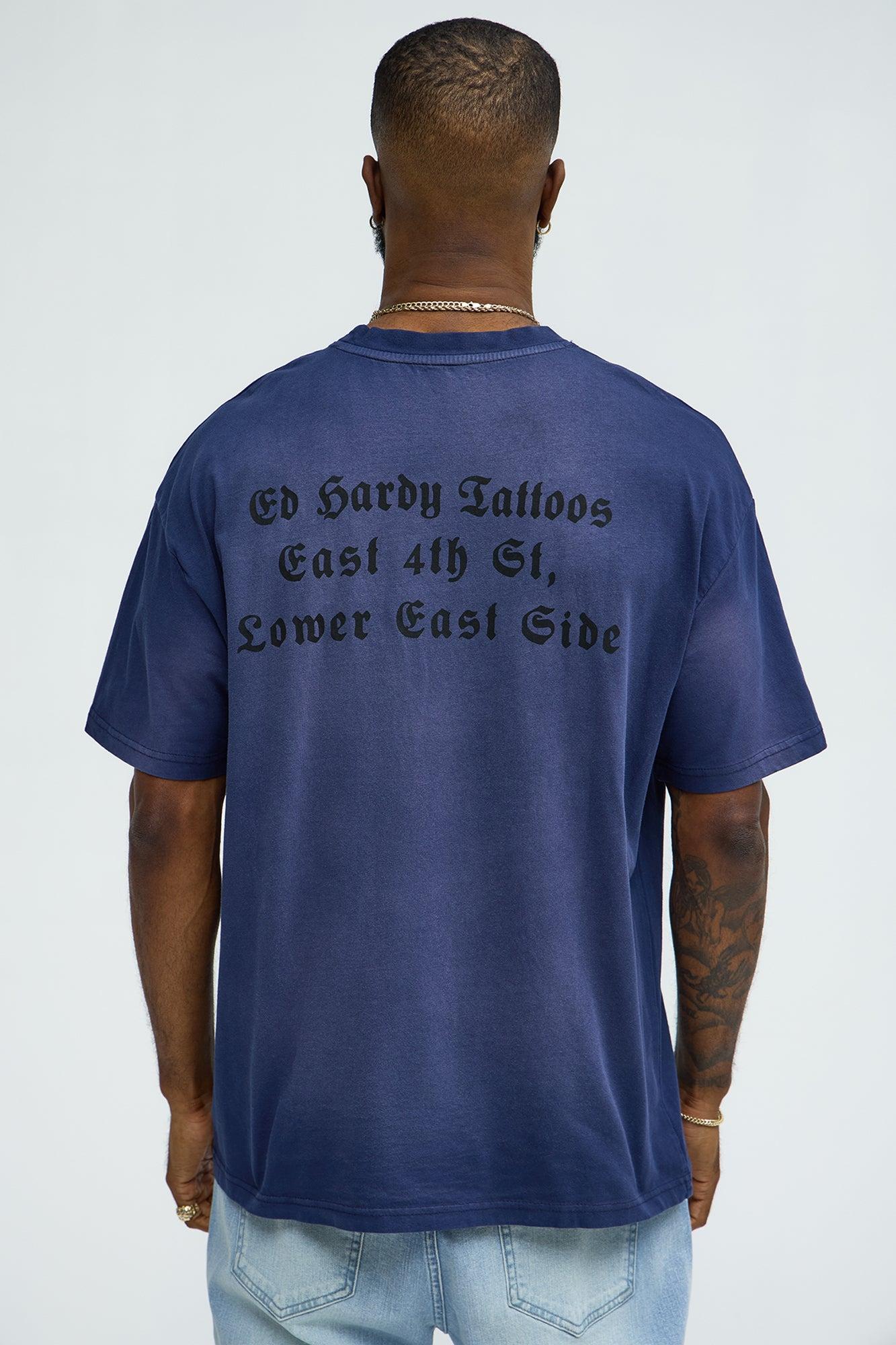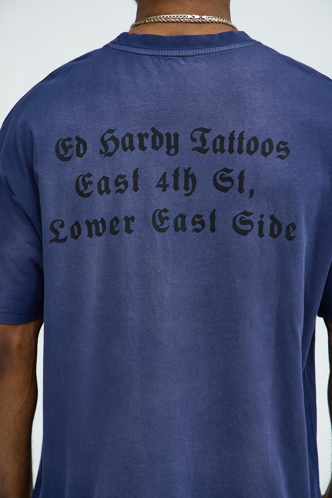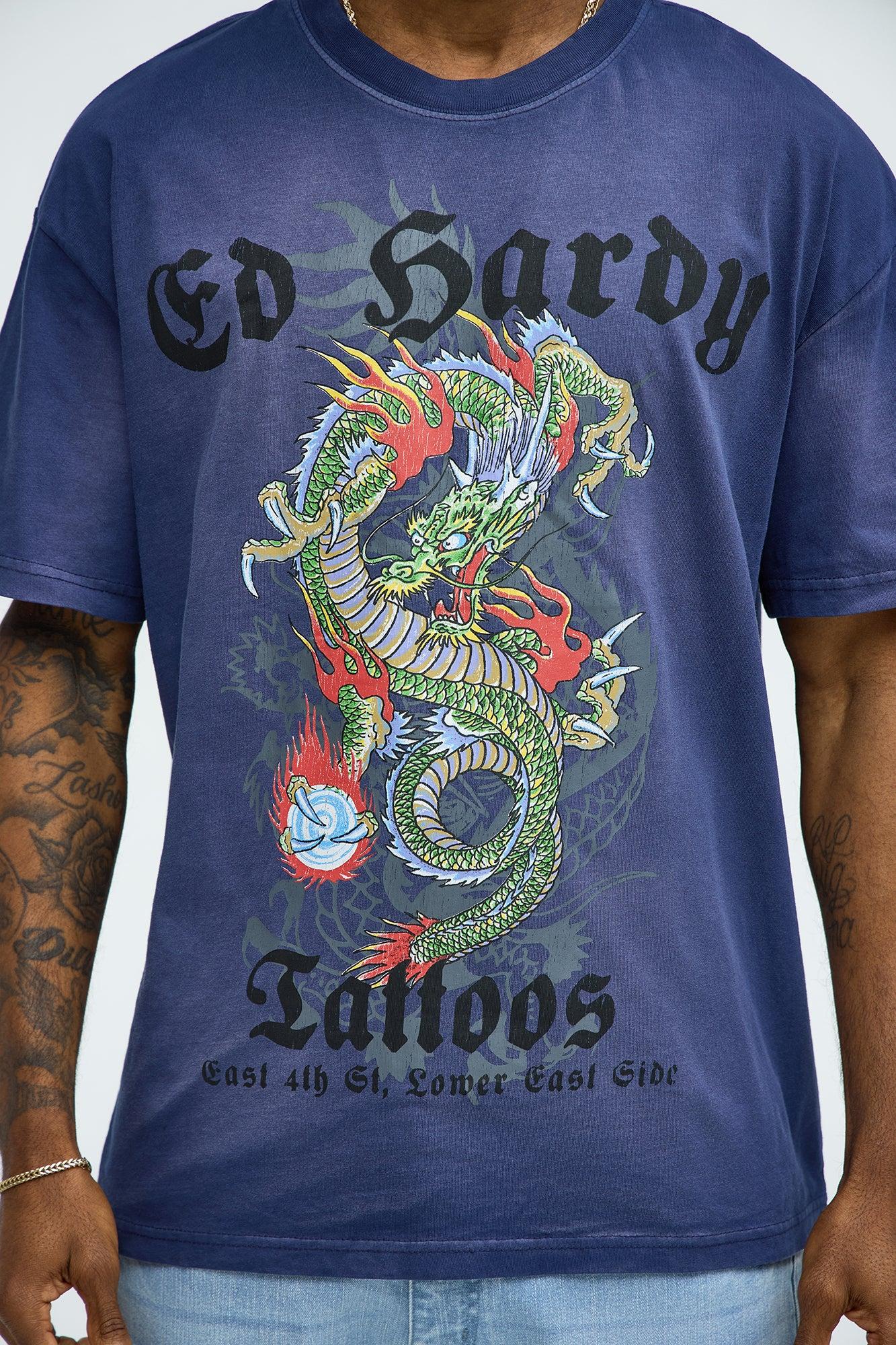 Ed Hardy Dragon Tattoo Oversized Short Sleeve Tee - Navy