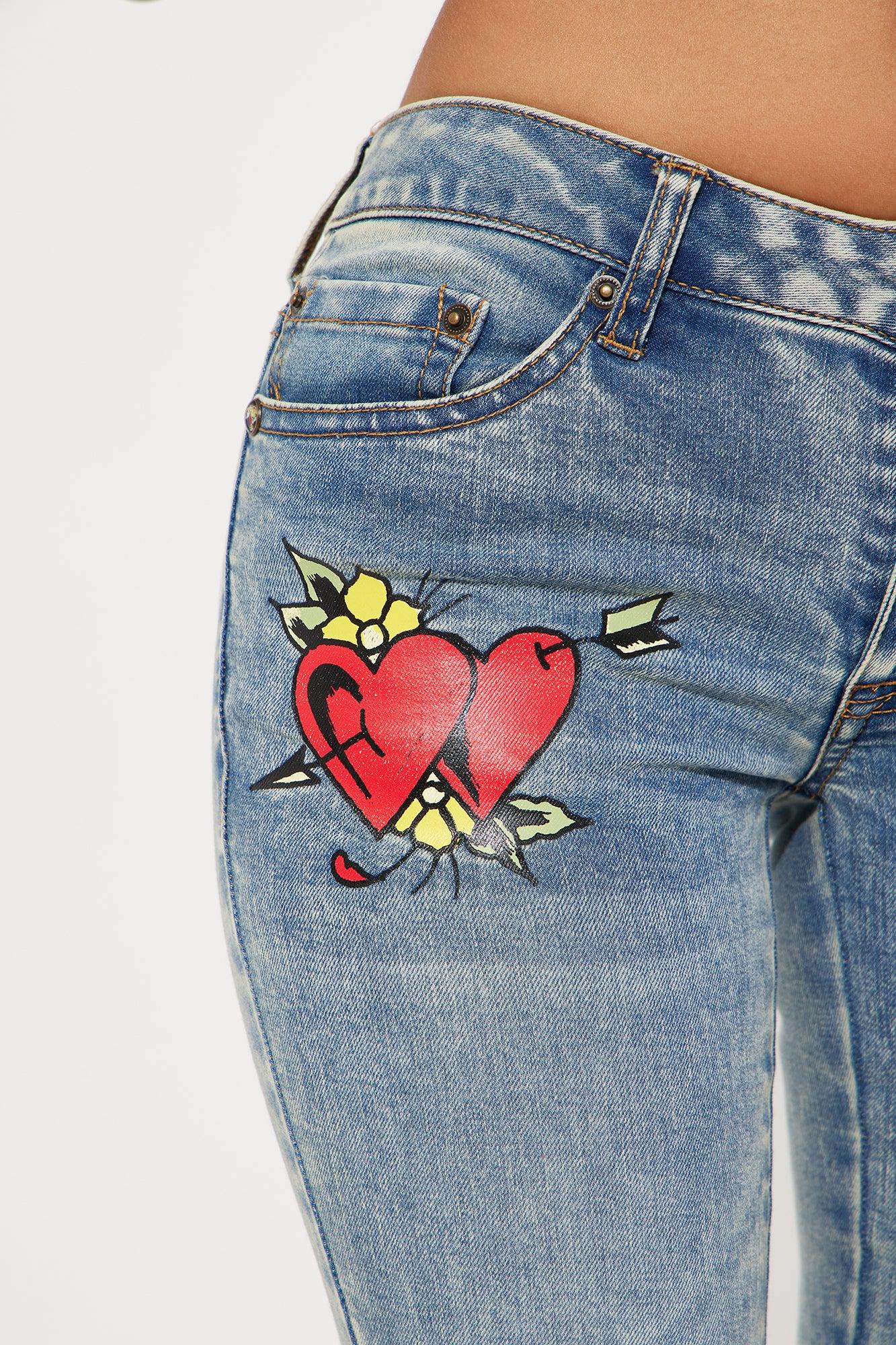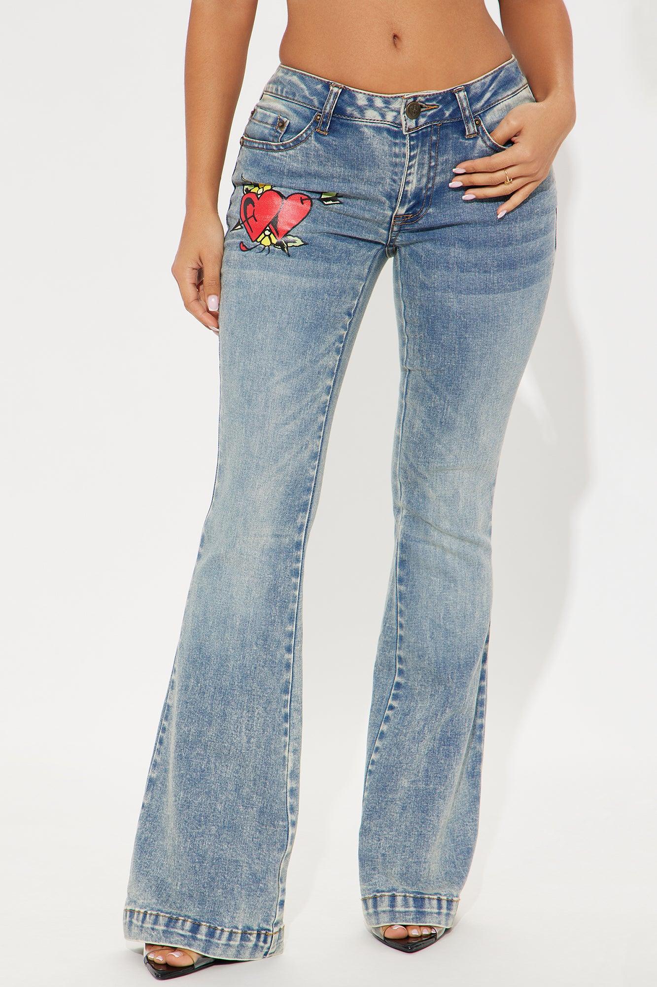 Available In Medium Wash. Flare Leg Jean 5 Pocket Printed Detail Stretch Denim 34" Inseam Disclaimer: Due To The Printing Process A Difference In Saturation May Occur. Each Garment Is Unique.` 70% Cotton 23% Polyester 6% Rayon 1% Spandex Imported
