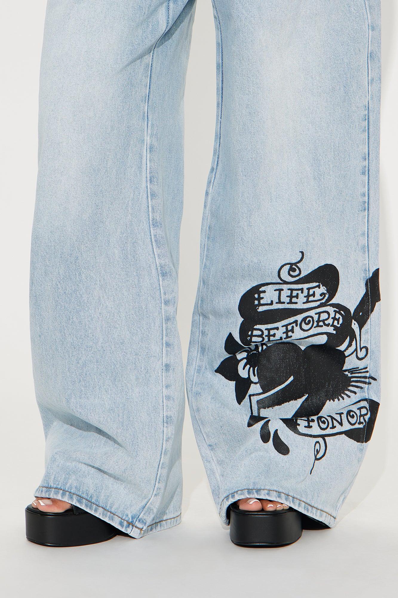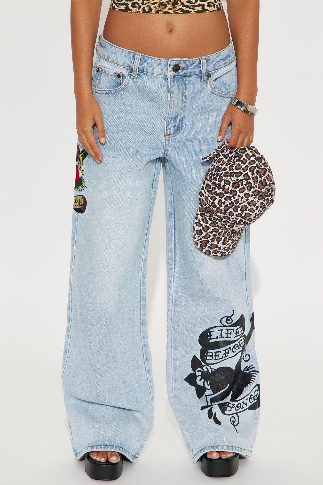 Ed Hardy Honor Dagger Baggy Jeans - Light Wash