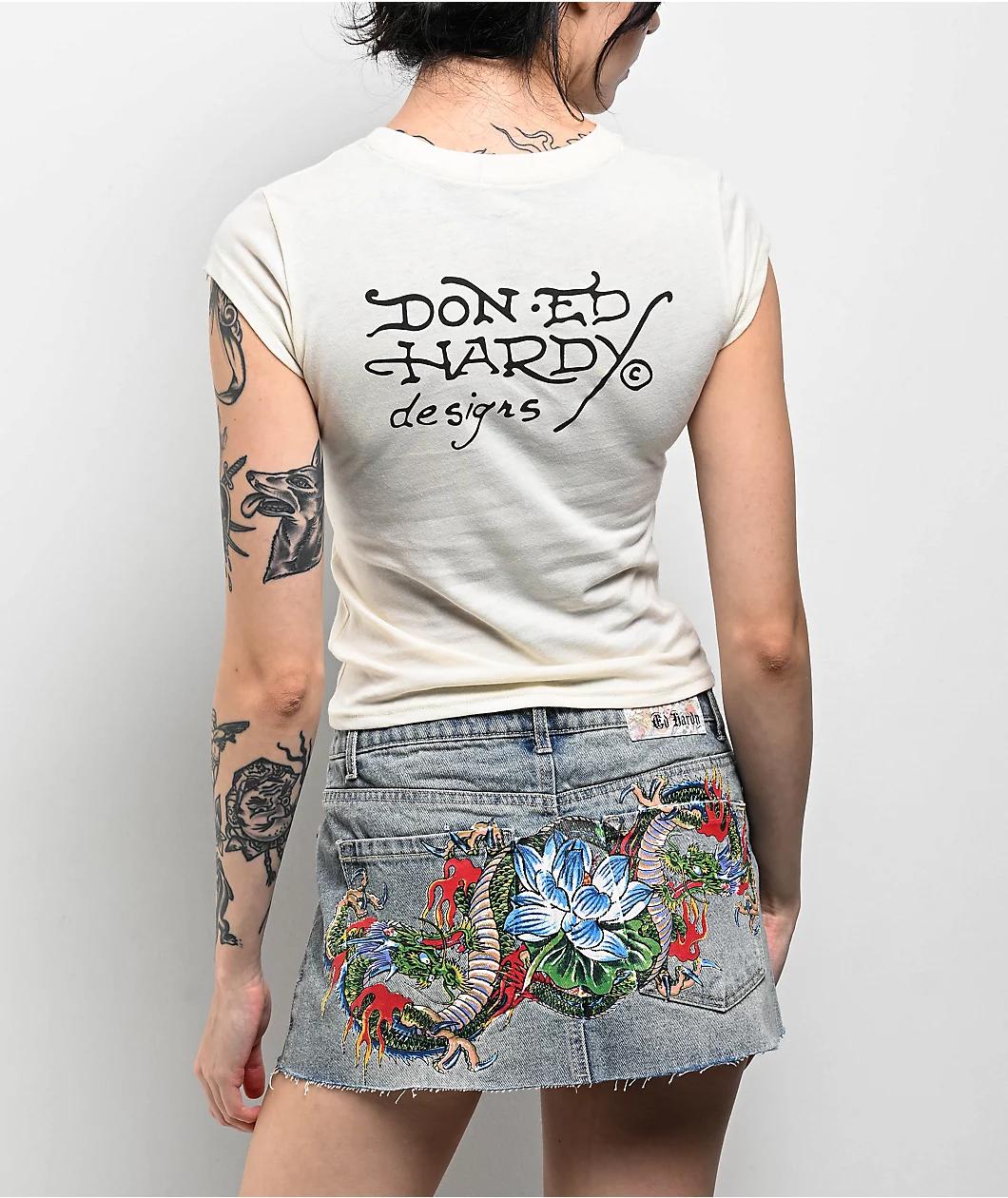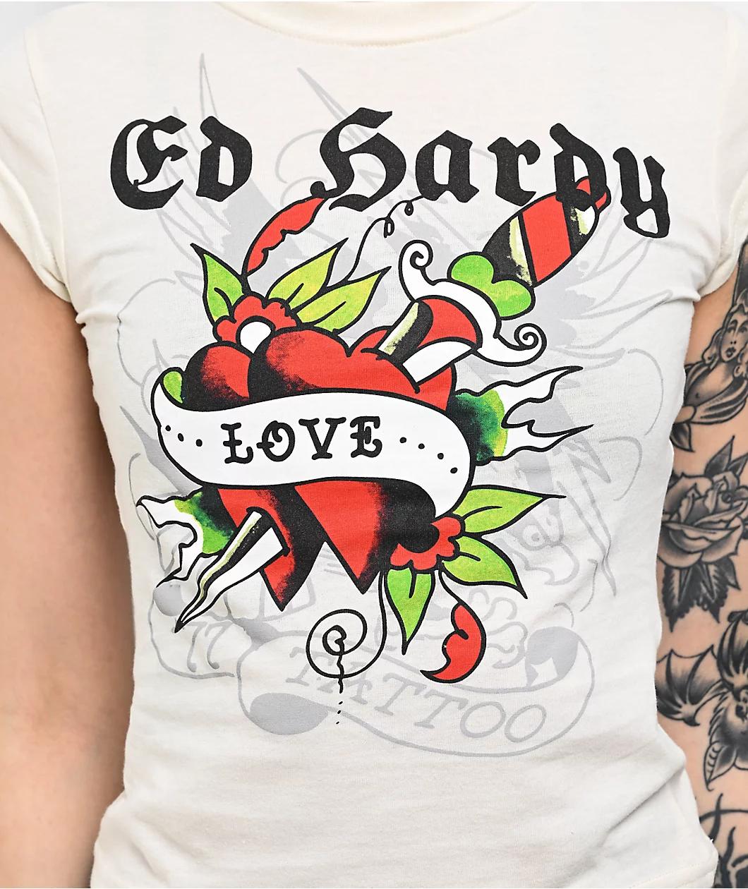 The mind of renowned tattoo artist Don Ed Hardy welcomes the Love Dagger t-shirt in an ivory colorway with branding screen-printed on the back. The front of the slim-fit tee has Old English-inspired branding across the chest, while traditional tattoo