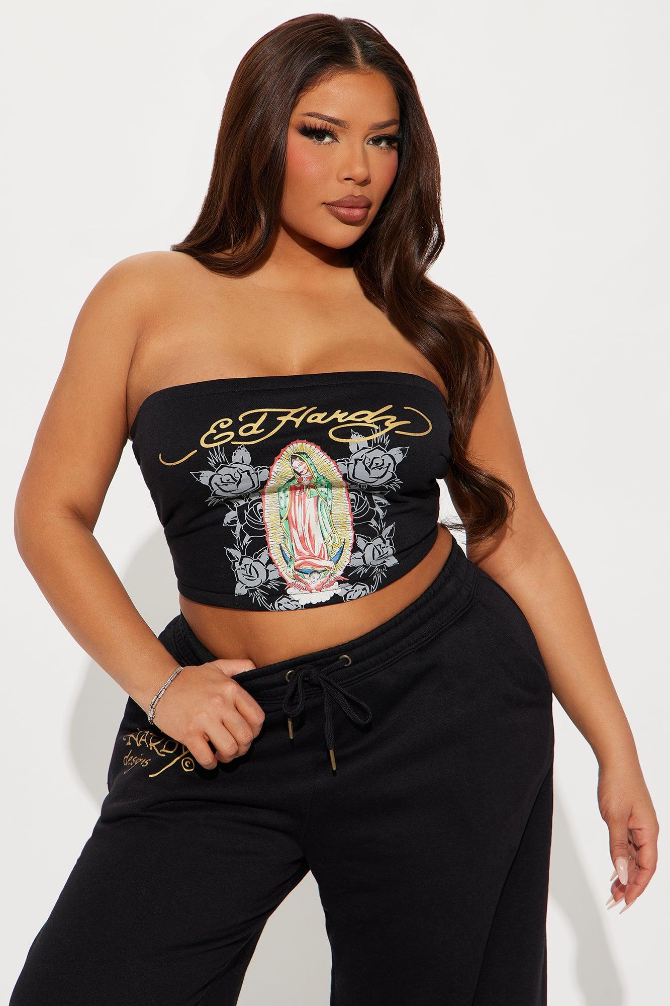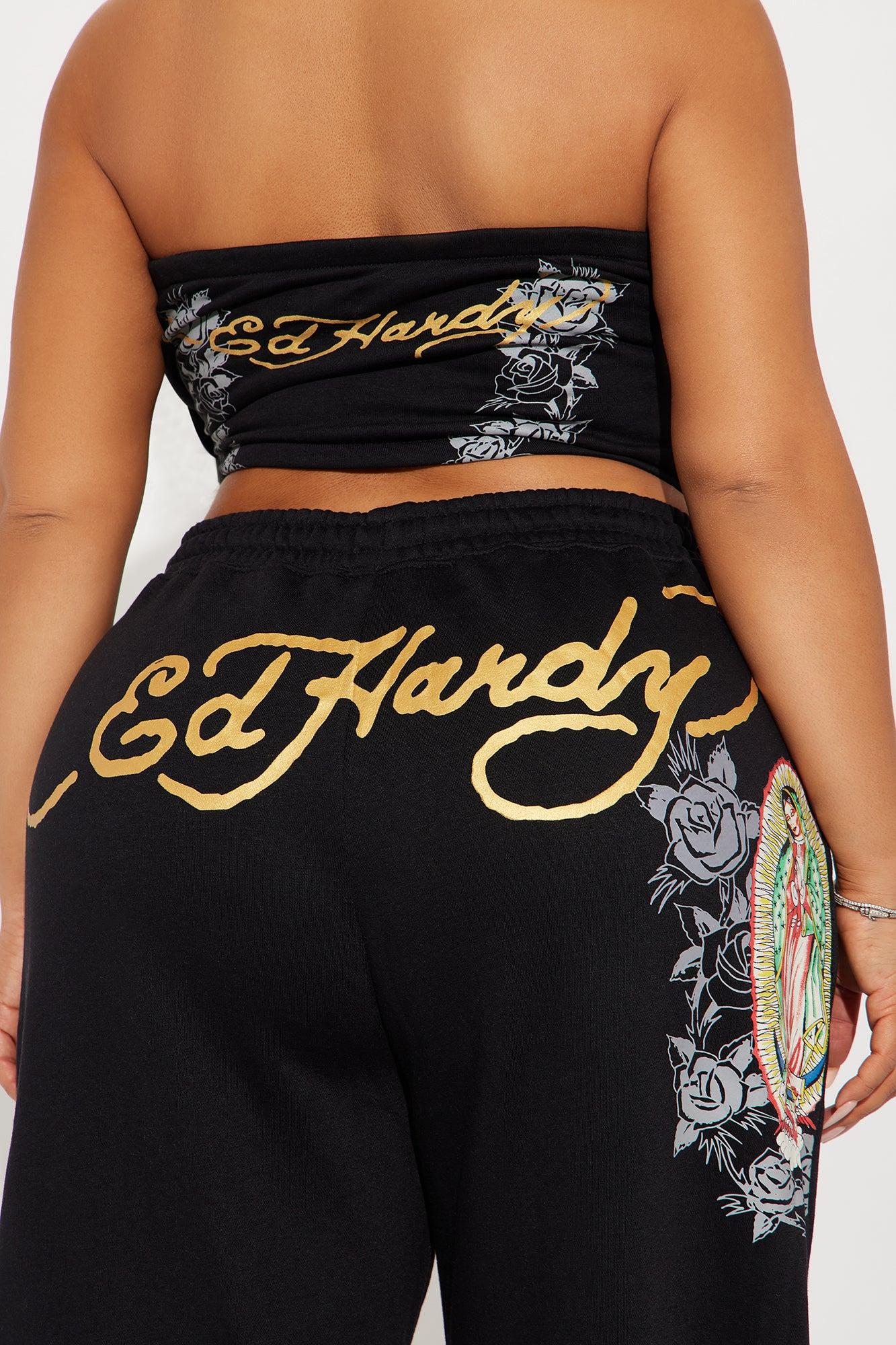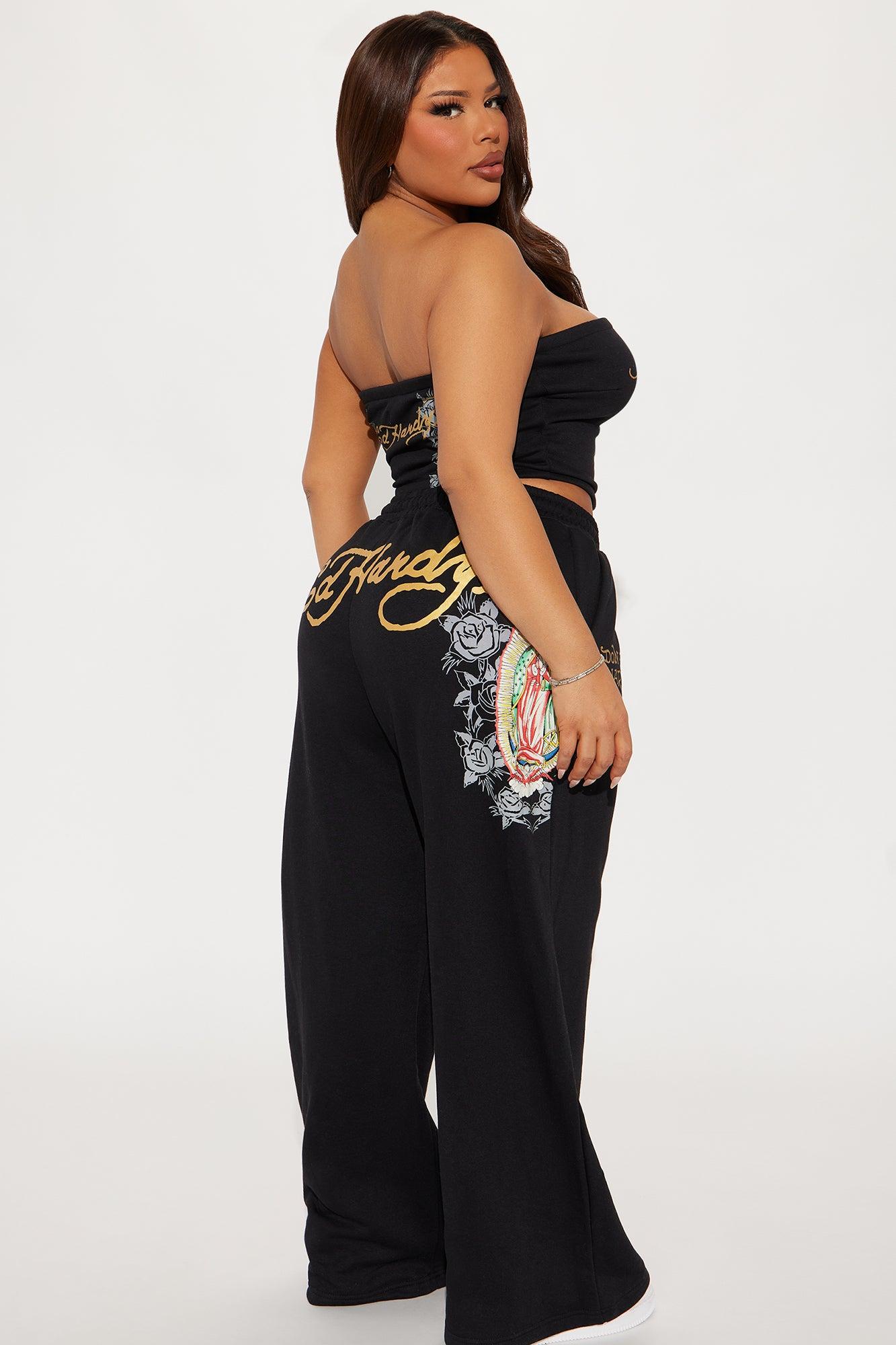 Available In Black. Pant Set Stretch Tube Top Sleeveless Cropped Front and Back Screen Sweatpant Drawstring Wide Leg Ed Hardy Graphic Disclaimer: Due To The Printing Process A Difference In Saturation May Occur. Each Garment Is Unique. Self: 55% Cotton 45% Polyester Imported