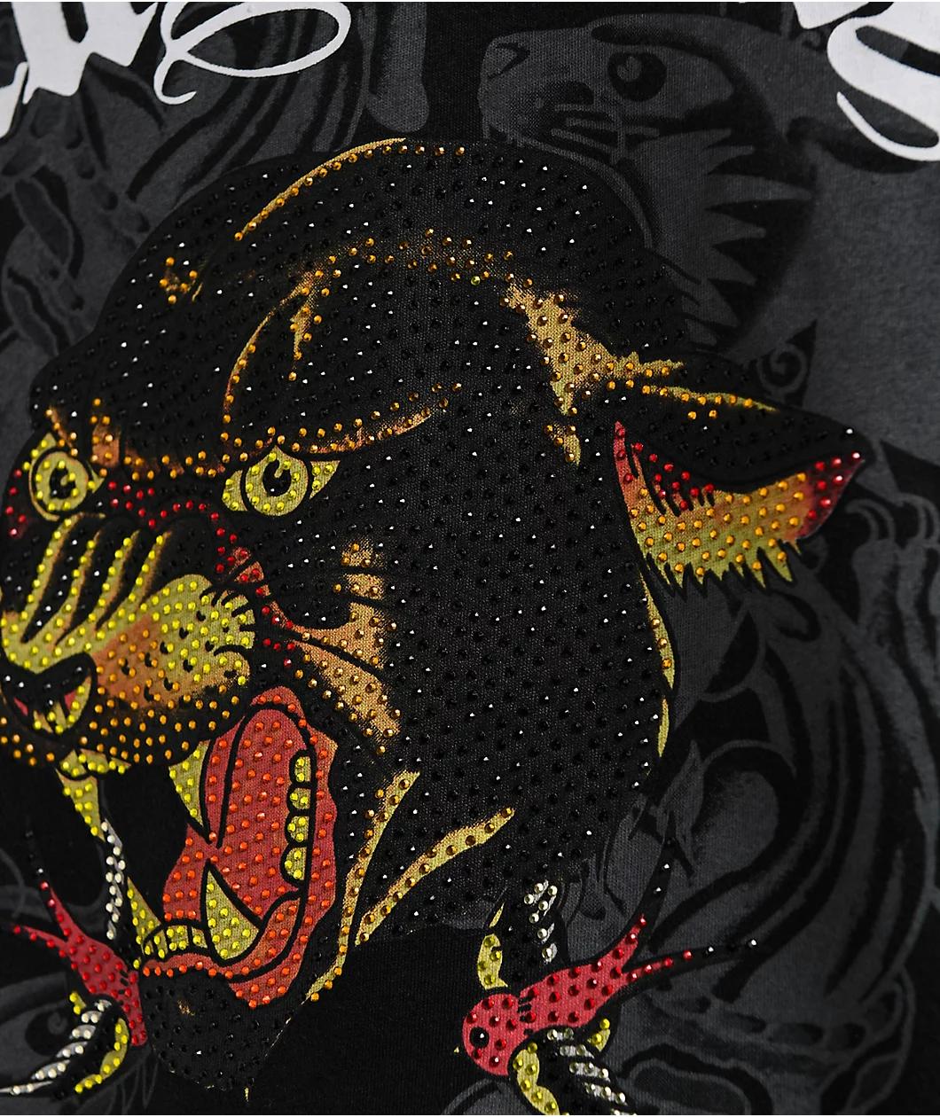 Add throwback Y2K vibes to any outfit with the Panther Head t-shirt from Ed Hardy, arriving with Rhinestone embellishments on the front for eye-catching shine. The black tee features vintage tattoo artwork on the chest of a snarling big cat, as well