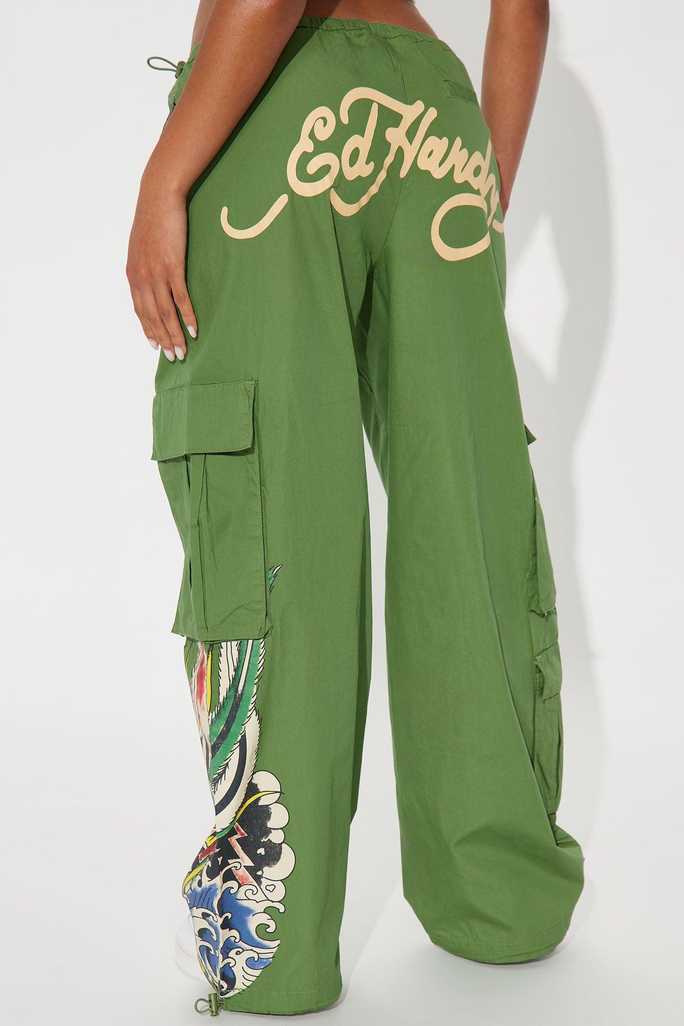 Ed Hardy Peacock Cargo Pants - Army Green