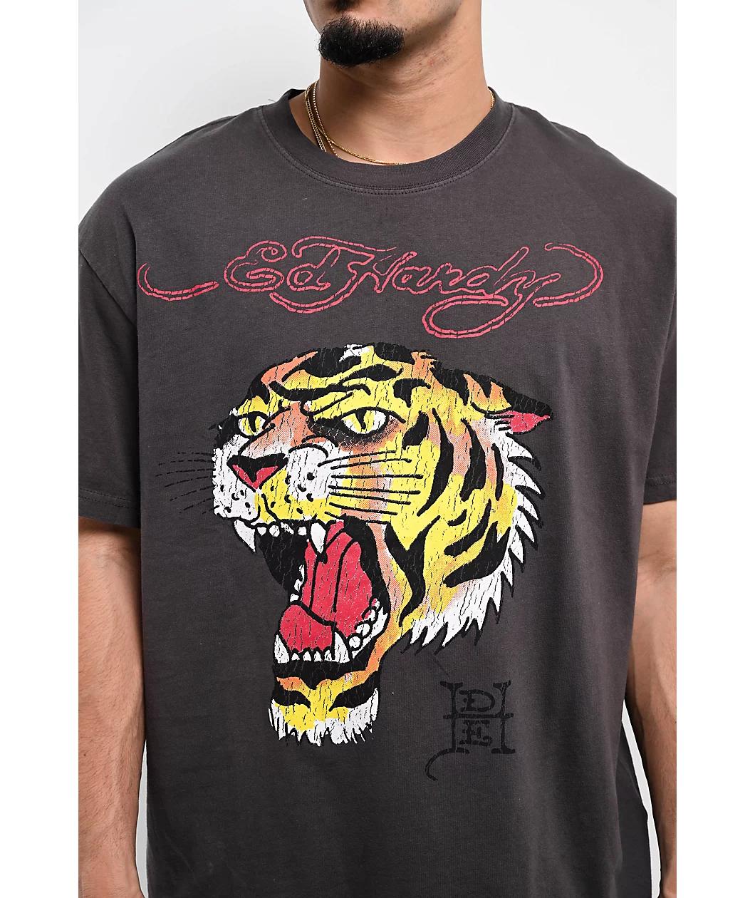 Famous tattoo artist Ed Hardy welcomes the Profile Tiger t-shirt in a charcoal colorway delivering a Y2K vibe. Showcasing a screen-printed graphic on the front of the tee of a roaring Tiger in classic tattoo style. This tee is finished with a ribbed