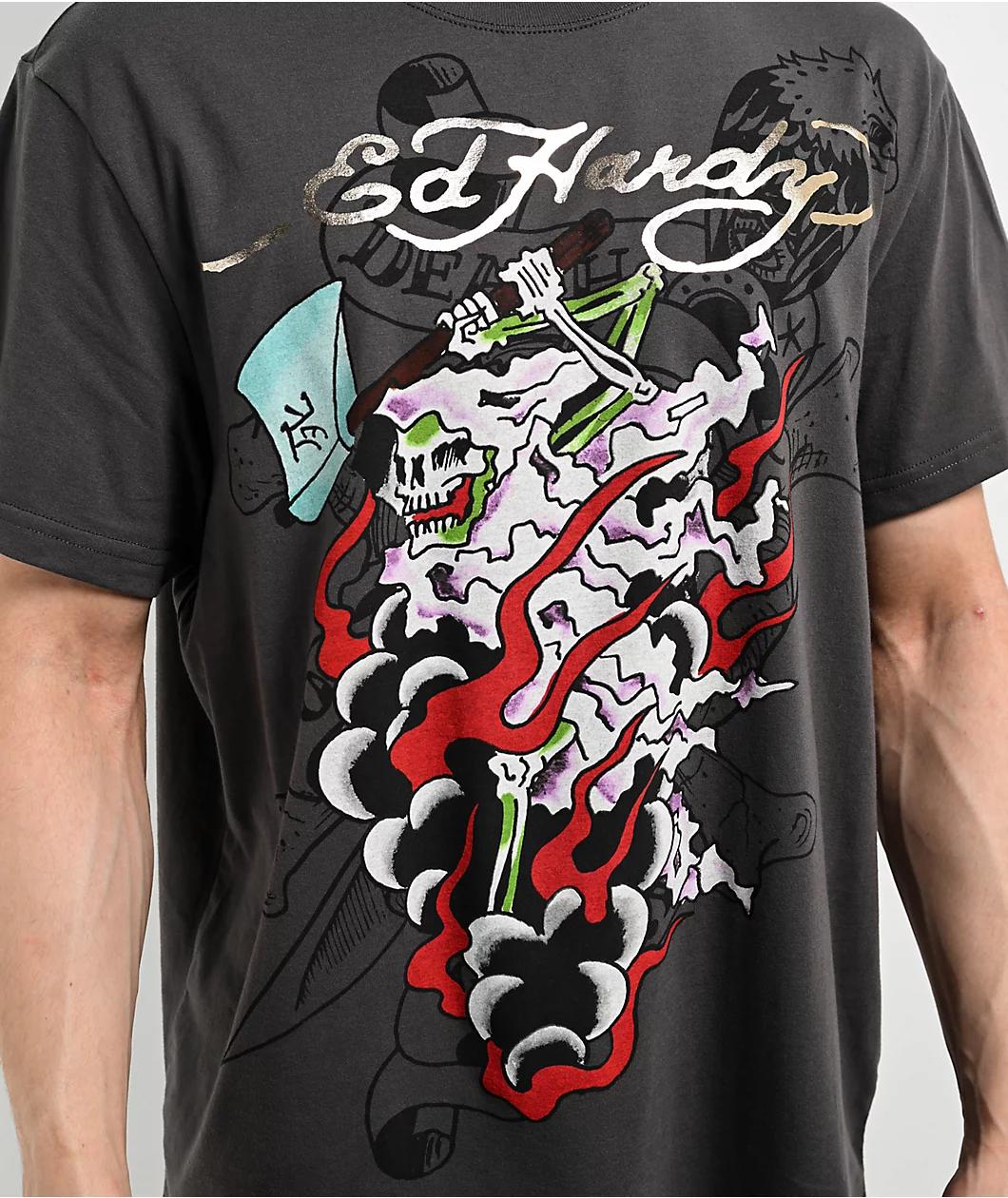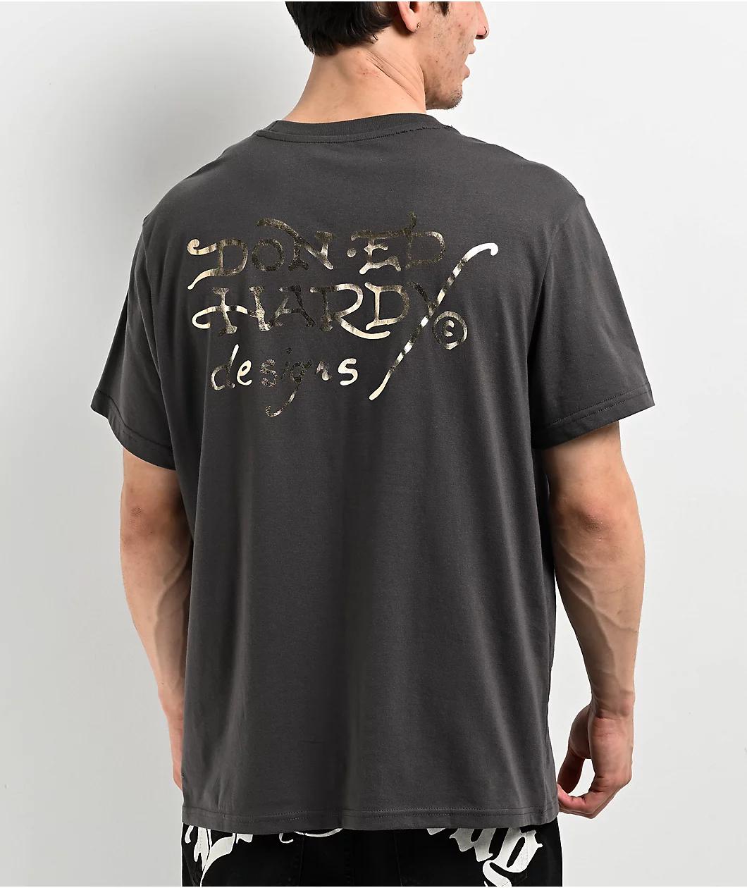 Offered in a charcoal colorway, the Ed Hardy Reaper t-shirt lends authentic mid-2000s style. The tattoo artist's unique aesthetic is on full display, with a reaper graphic that mixes Japanese and American influences. Made using soft 100% cotton, the