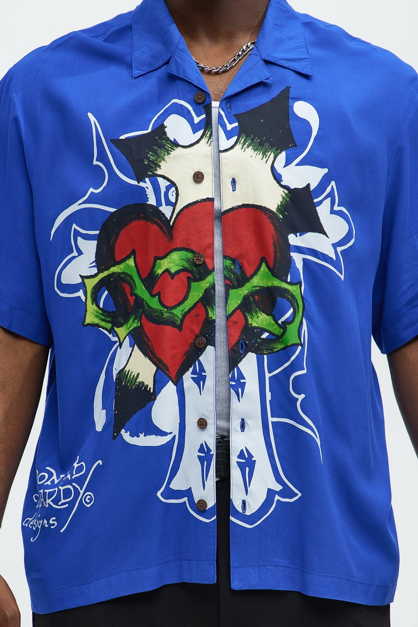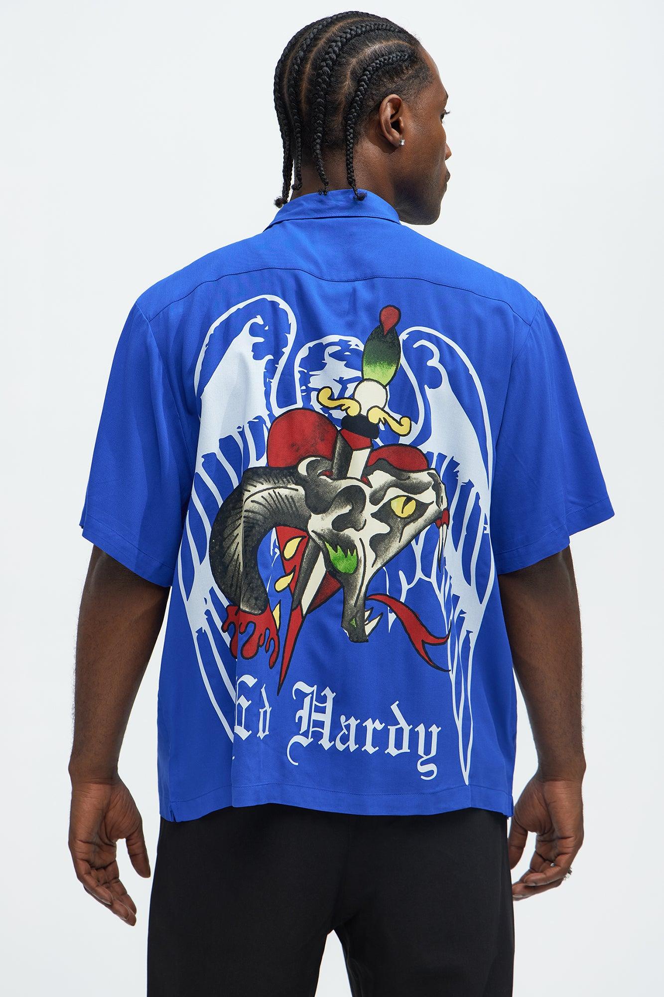 Ed Hardy Regular Fit Cross Snake Button Up Shirt - Blue