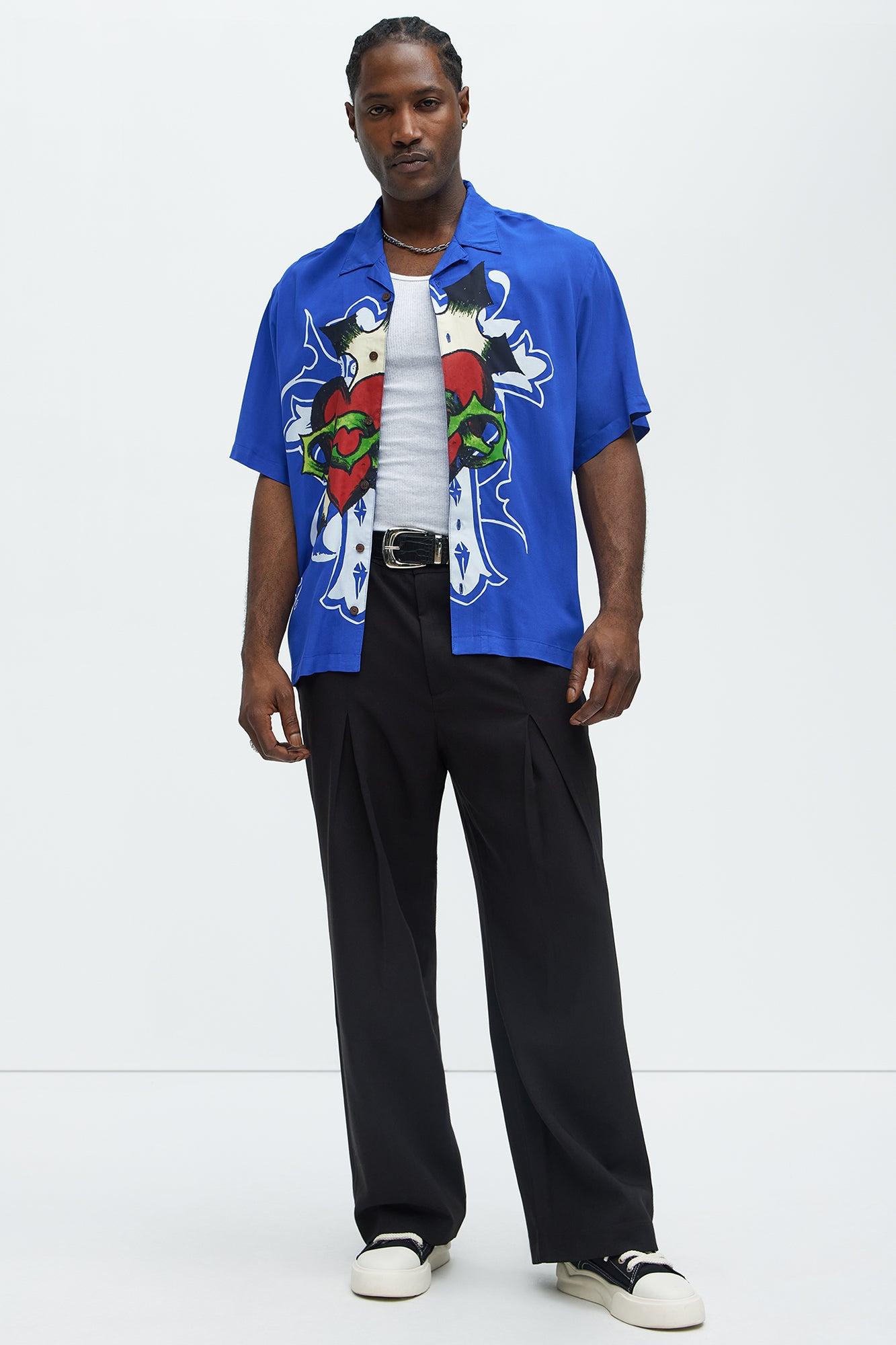 Available In Blue. Fold Down Collar Front Button Closure Short Sleeves 100% Viscose Disclaimer: Due To The Printing Process A Difference In Saturation May Occur. Each Garment Is Unique. Print Placement Will Vary. Imported