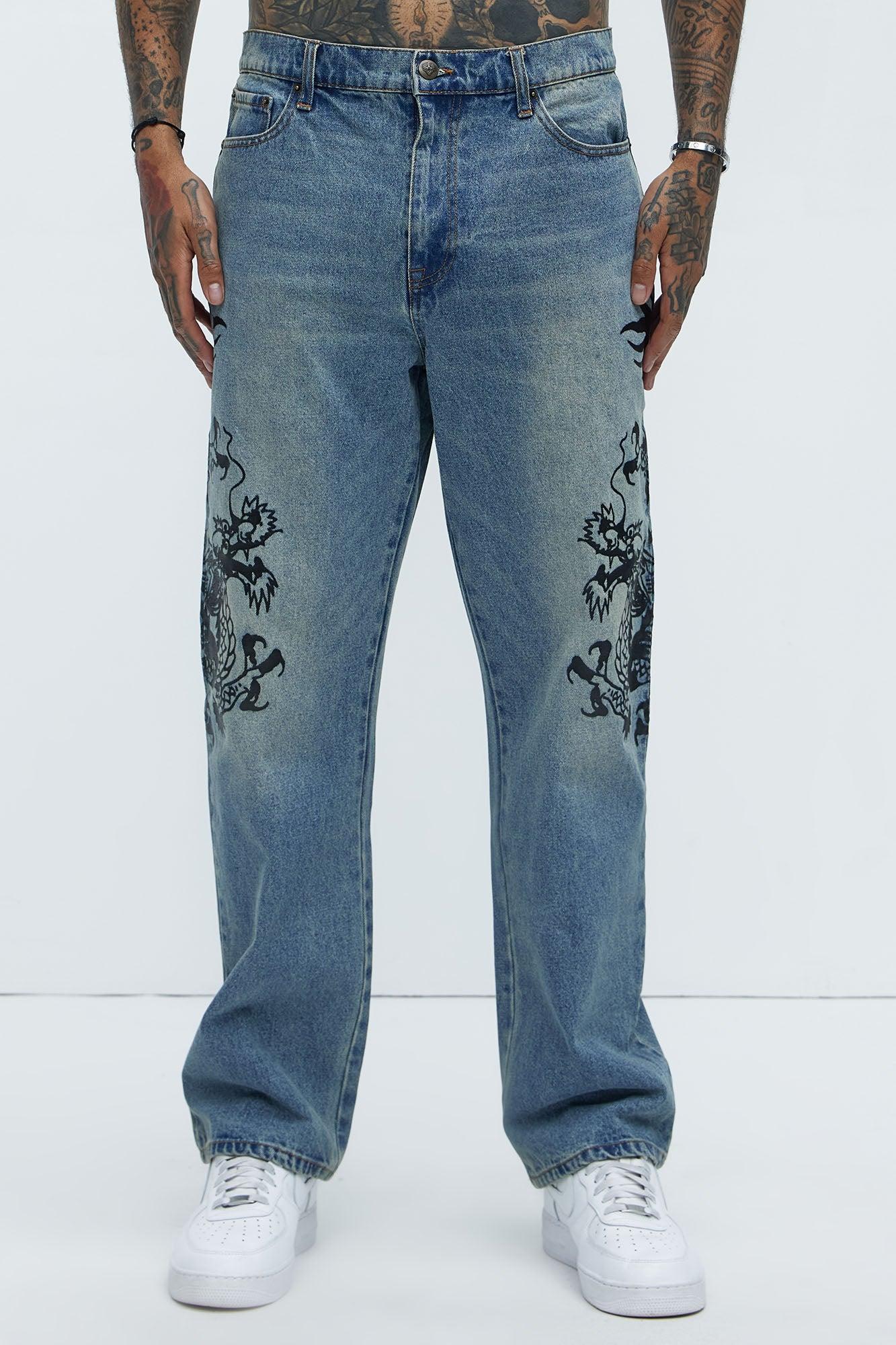 Available In Light Blue Wash. Relaxed Fit Zip Fly Button Closure 5 Pocket Detail Screen Hit 100% Cotton Disclaimer: Due To The Printing Process A Difference In Saturation May Occur. Each Garment Is Unique. Print Placement Will Vary. Imported