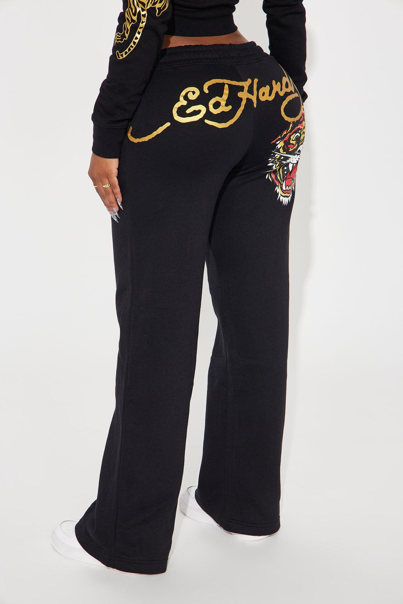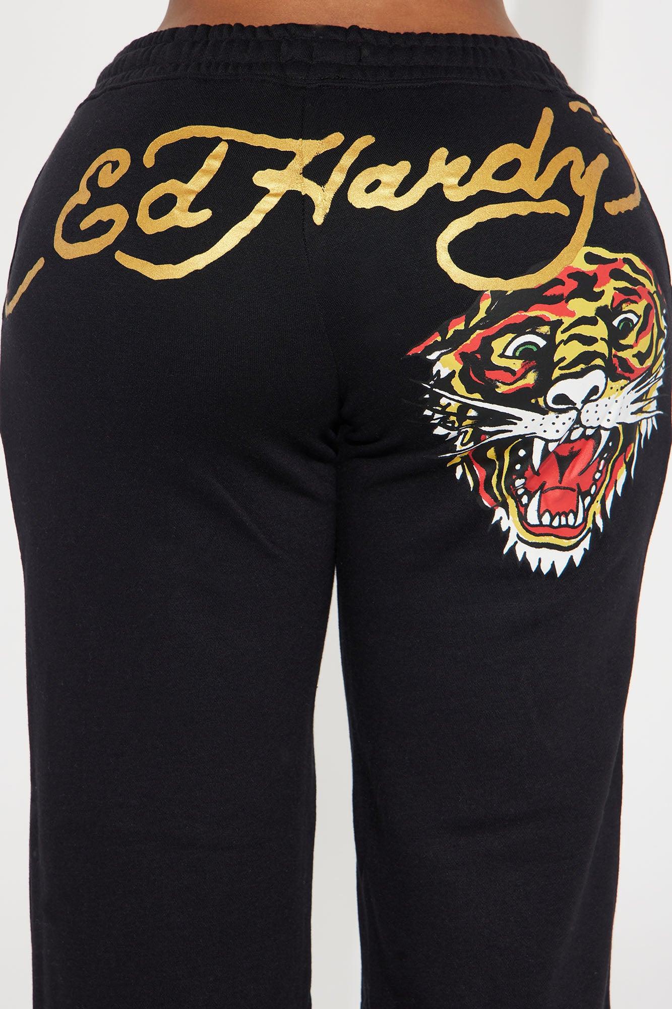 Available In Black. Wide Leg Pant Front And Back Screen Ed Hardy Graphic Stretch Pair To "Ed Hardy Retro Tiger Zip Front Hoodie" Disclaimer: Due To The Printing Process A Difference In Saturation May Occur. Each Garment Is Unique. 55% Cotton 45% Polyester Imported