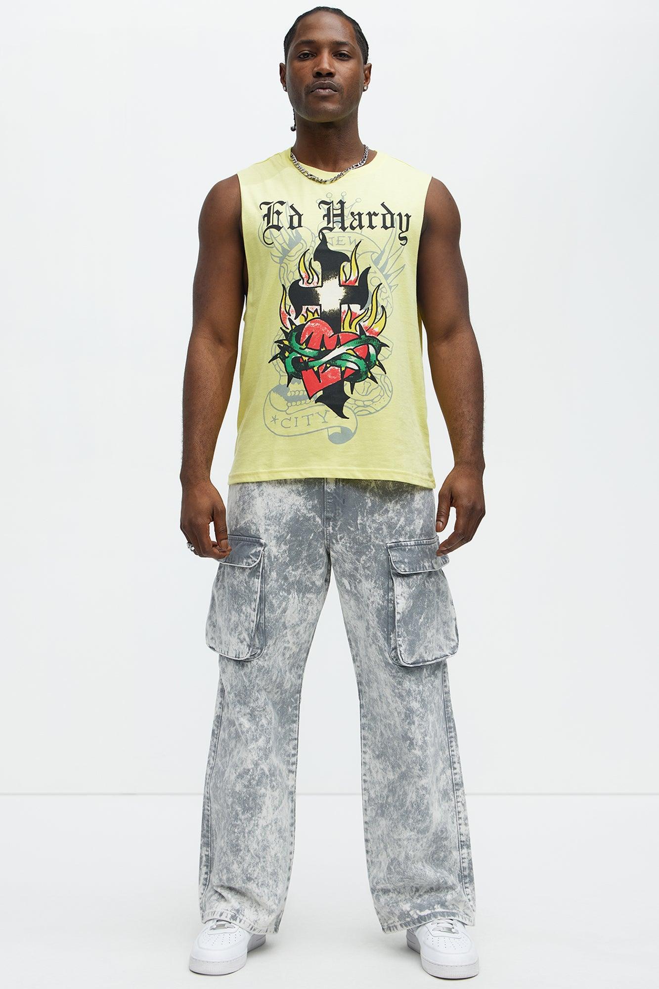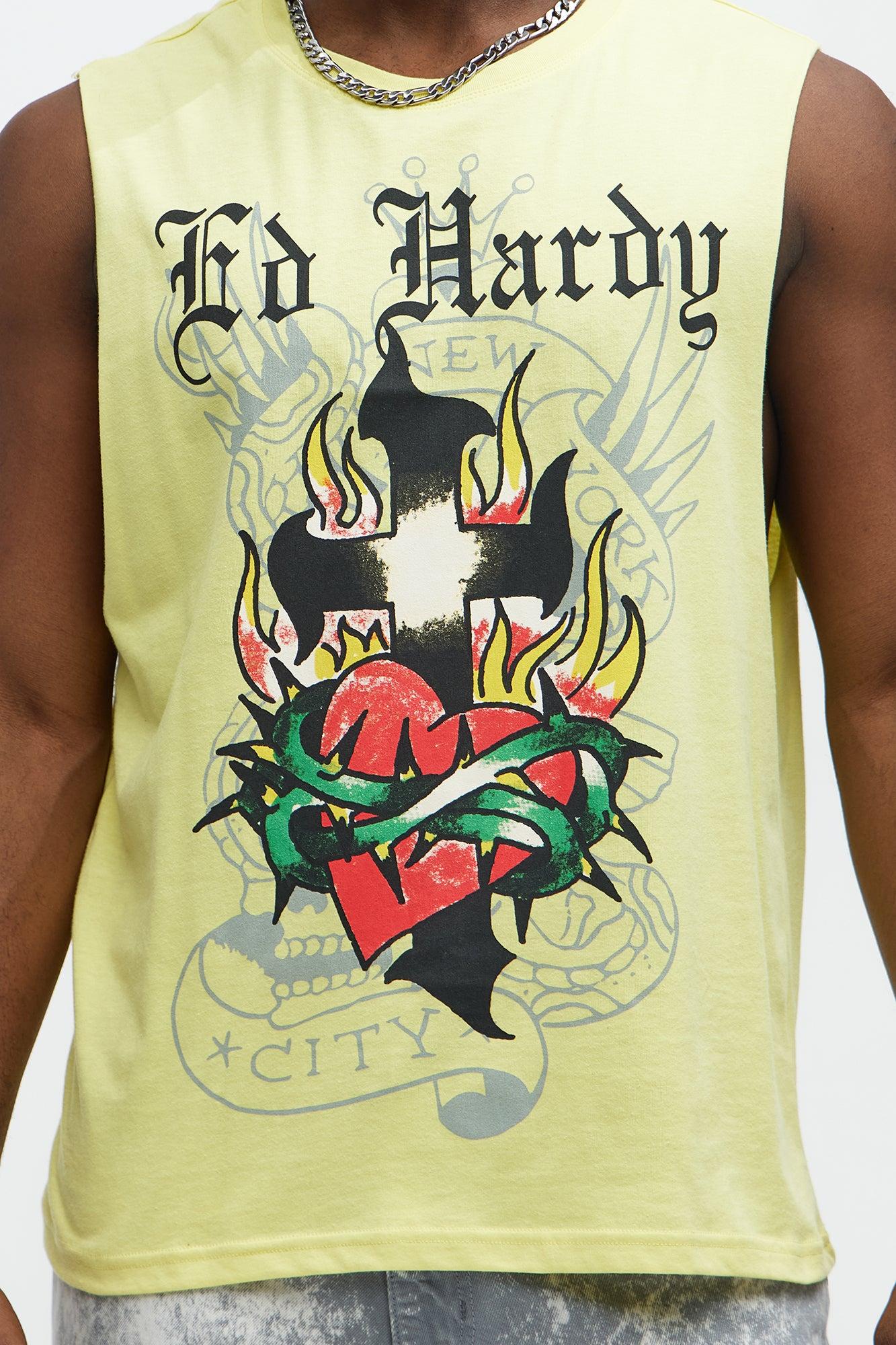 Ed Hardy Sacred Heart Muscle Tee - Yellow