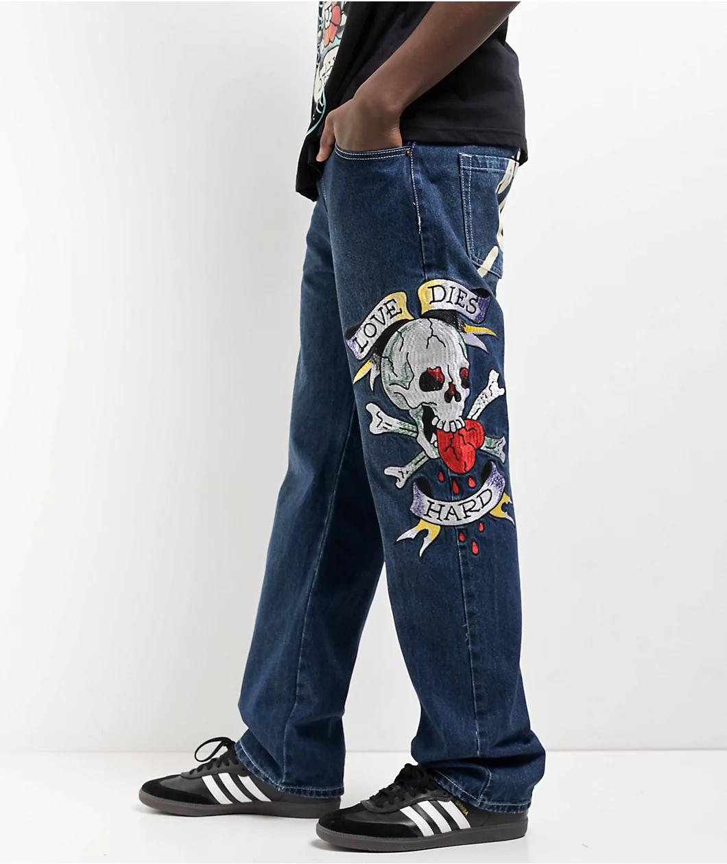 Ed Hardy Skull Heart Indigo Loose Fit Jeans