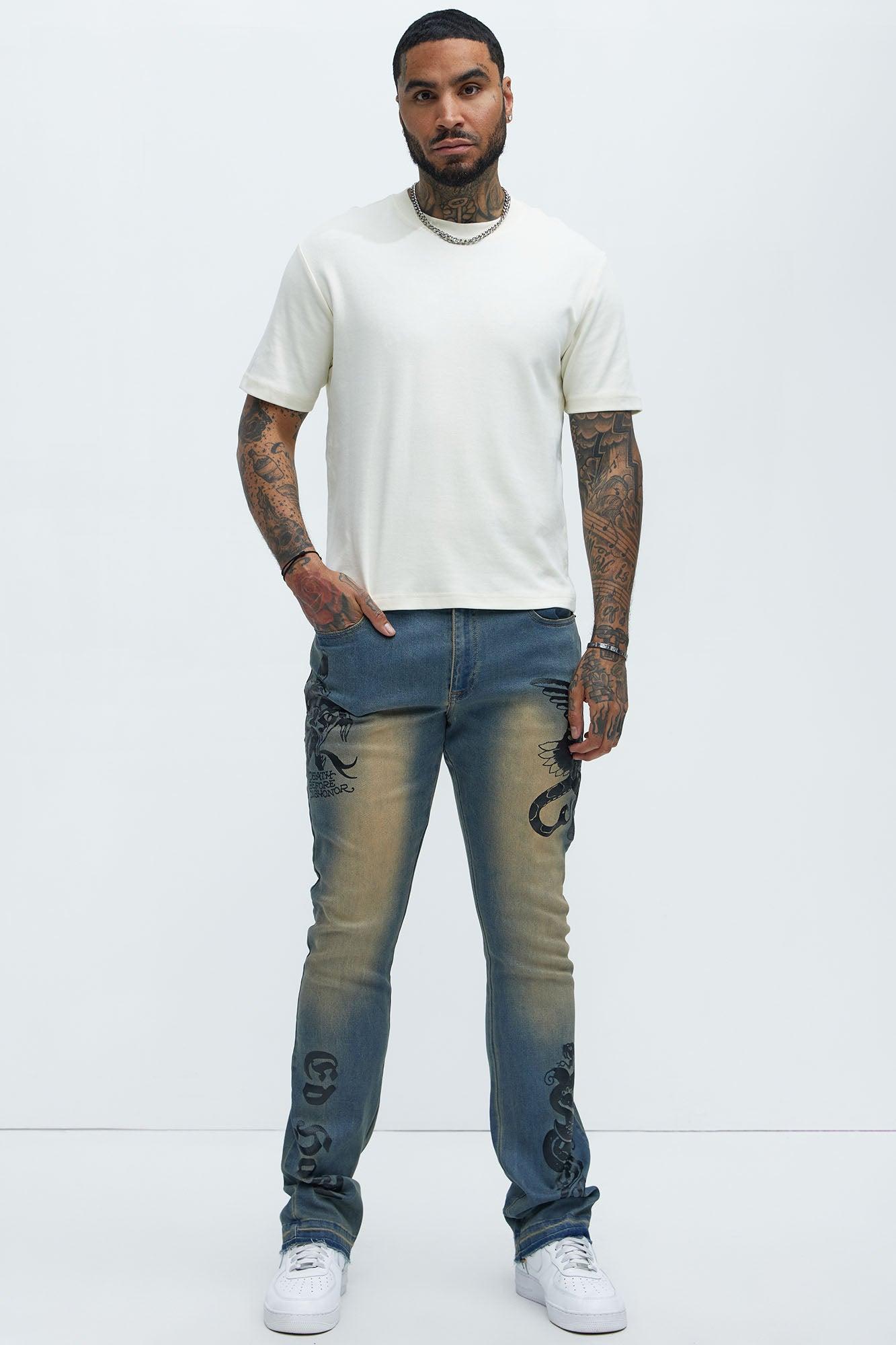 Available In Vintage Wash. Stacked Skinny Fit Zip Fly Button Closure 5 Pocket Detail Screen Hit 35% Lyocell, 32% Cotton, 31% Polyester, 1% Spandex, 1% Other Fibers Disclaimer: Due To The Printing Process A Difference In Saturation May Occur. Each Garment Is Unique. Print Placement Will Vary. Disclaimer: Due To The Specialized Wash Process, Each Garment Is Unique. Imported