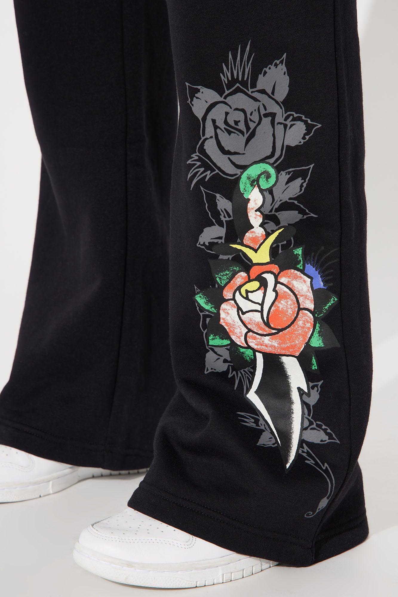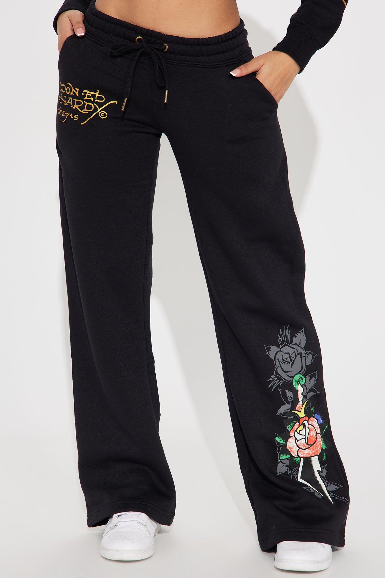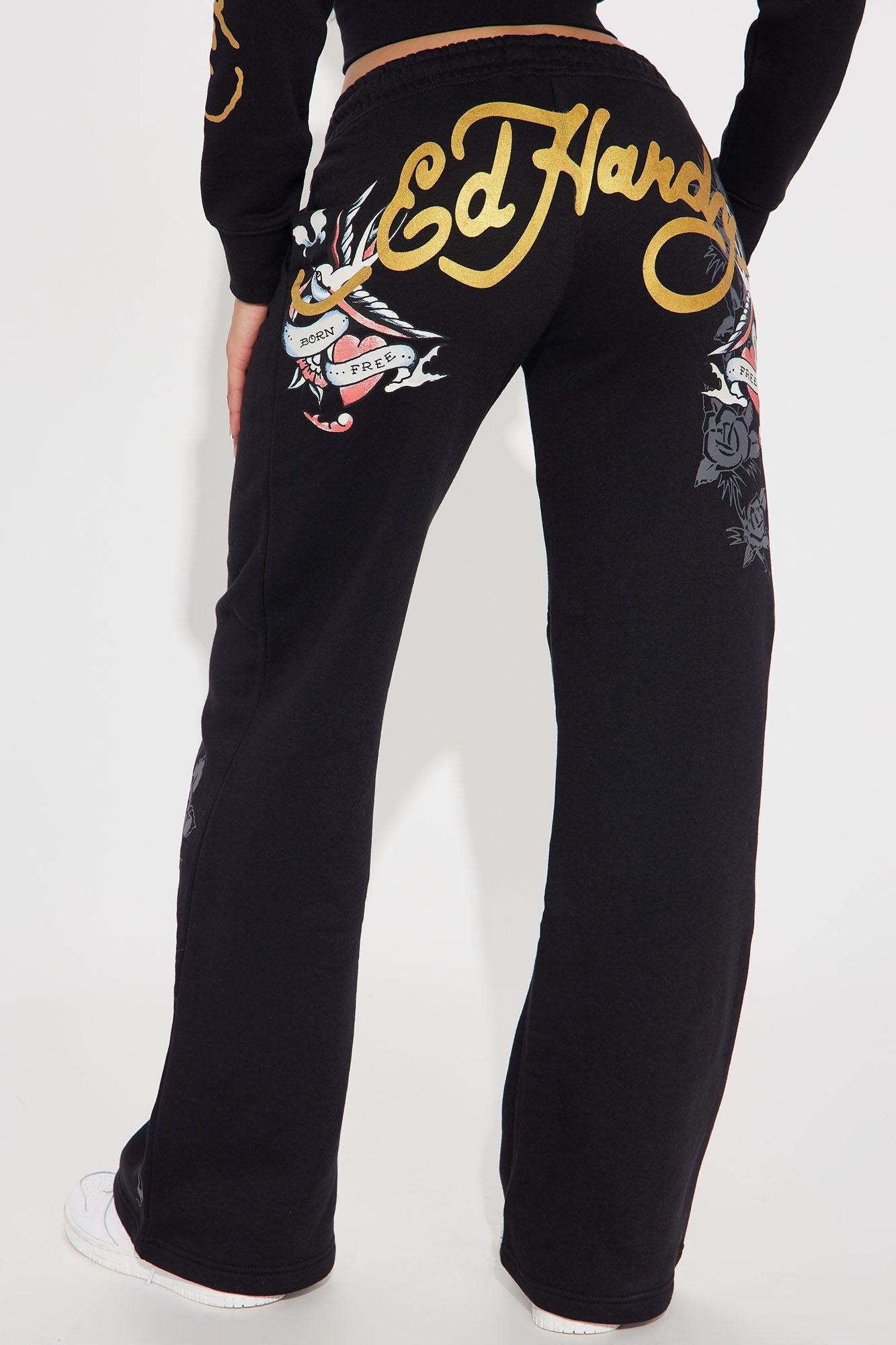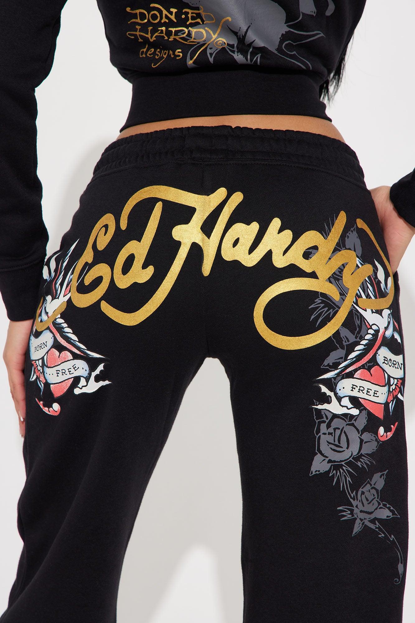 Available In Black. Wide Leg Pant Drawstring Front And Back Screen Ed Hardy Graphic Stretch Pair To "Ed Hardy Swallow Bird Zip Front Hoodie" Disclaimer: Due To The Printing Process A Difference In Saturation May Occur. Each Garment Is Unique. 55% Cotton 45% Polyester Imported
