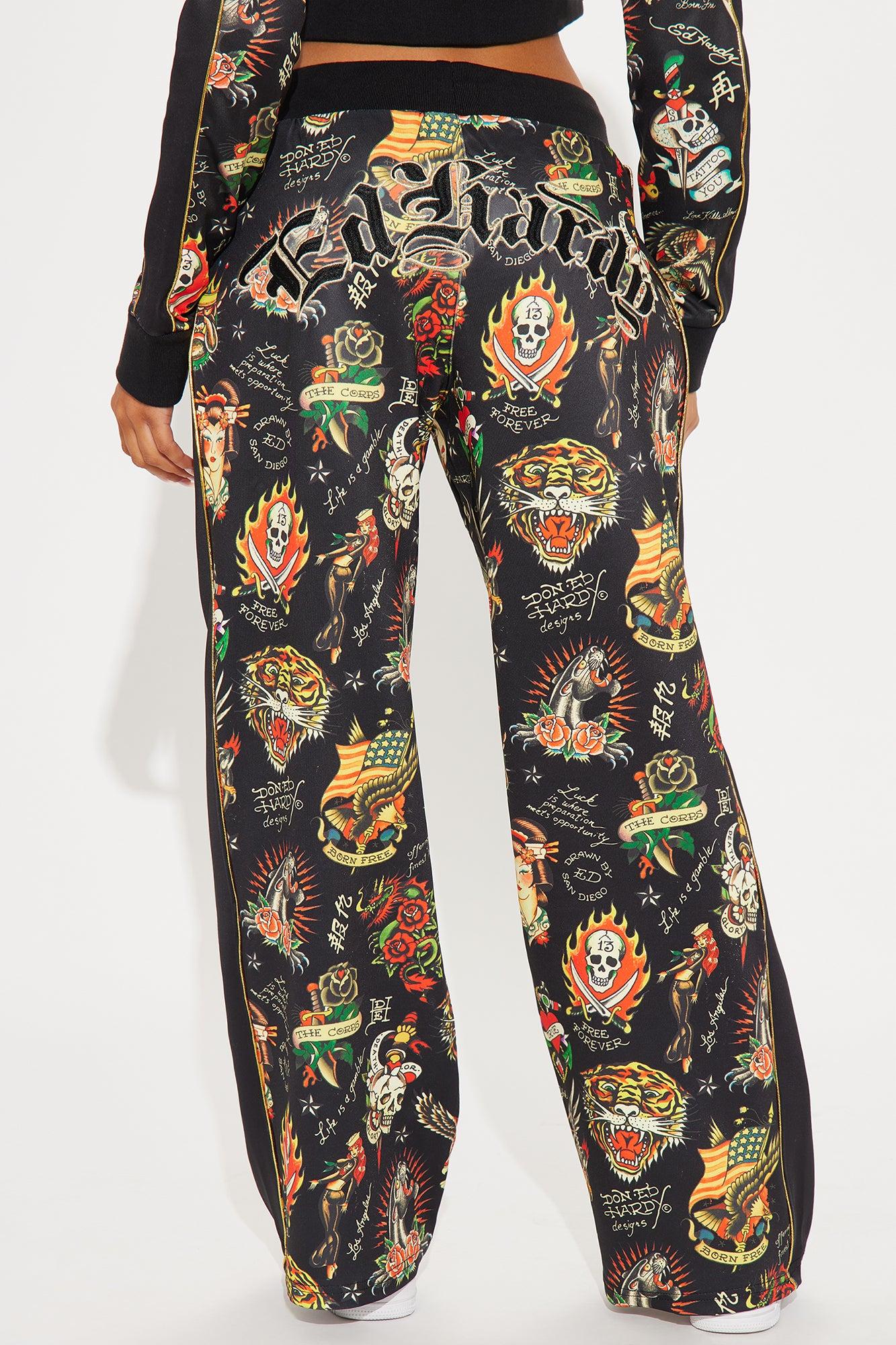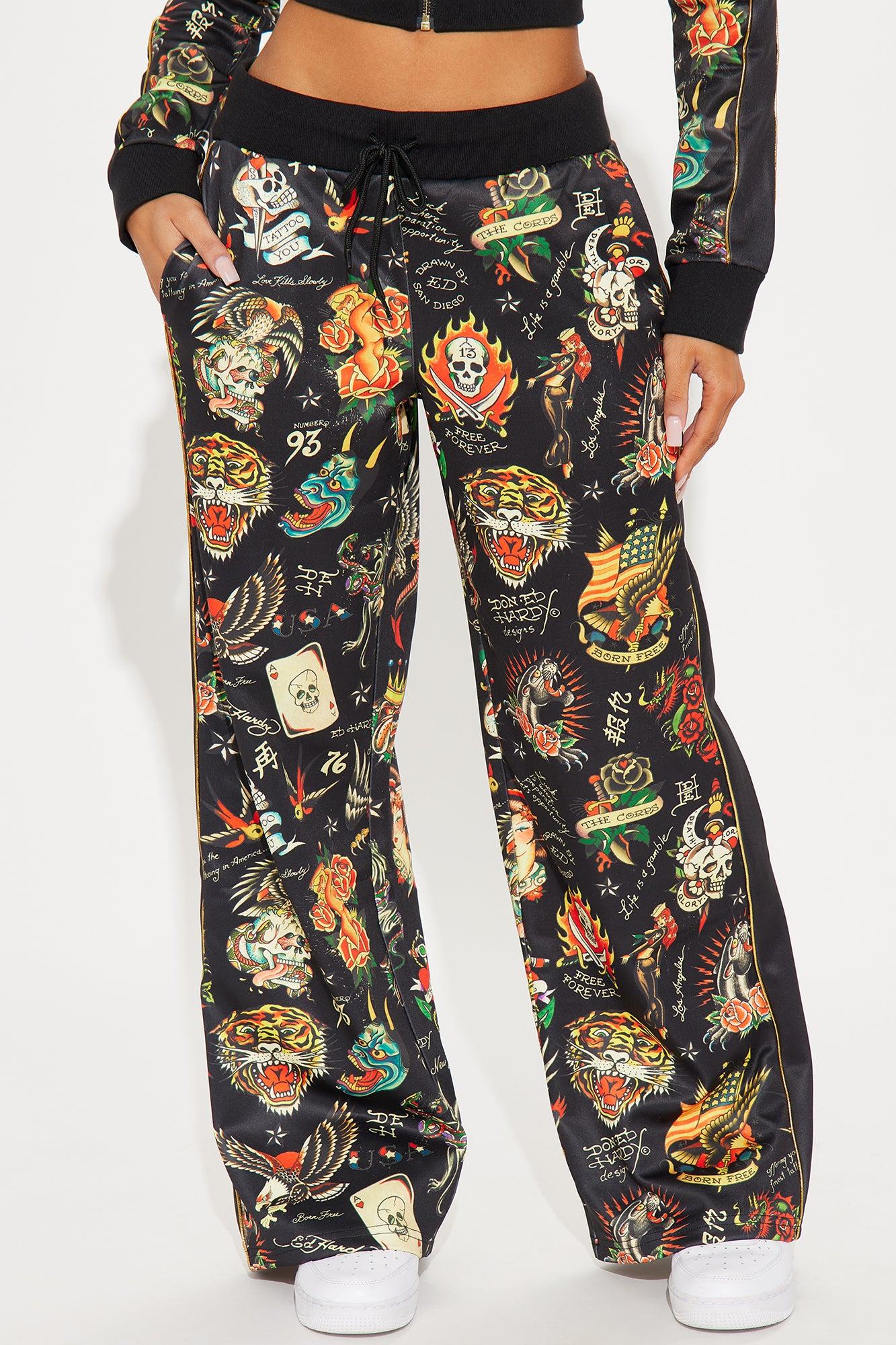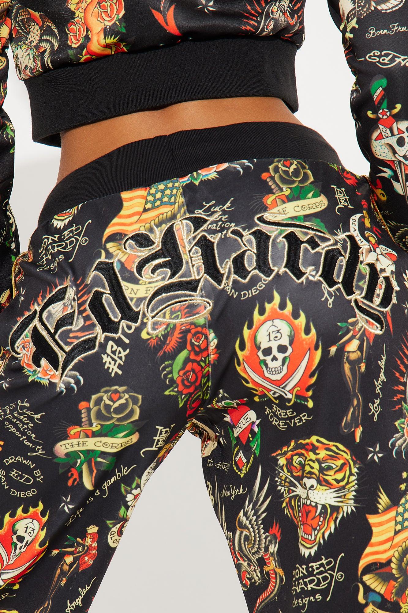 Ed Hardy Tattoo Embroidered Track Pant - Black/combo