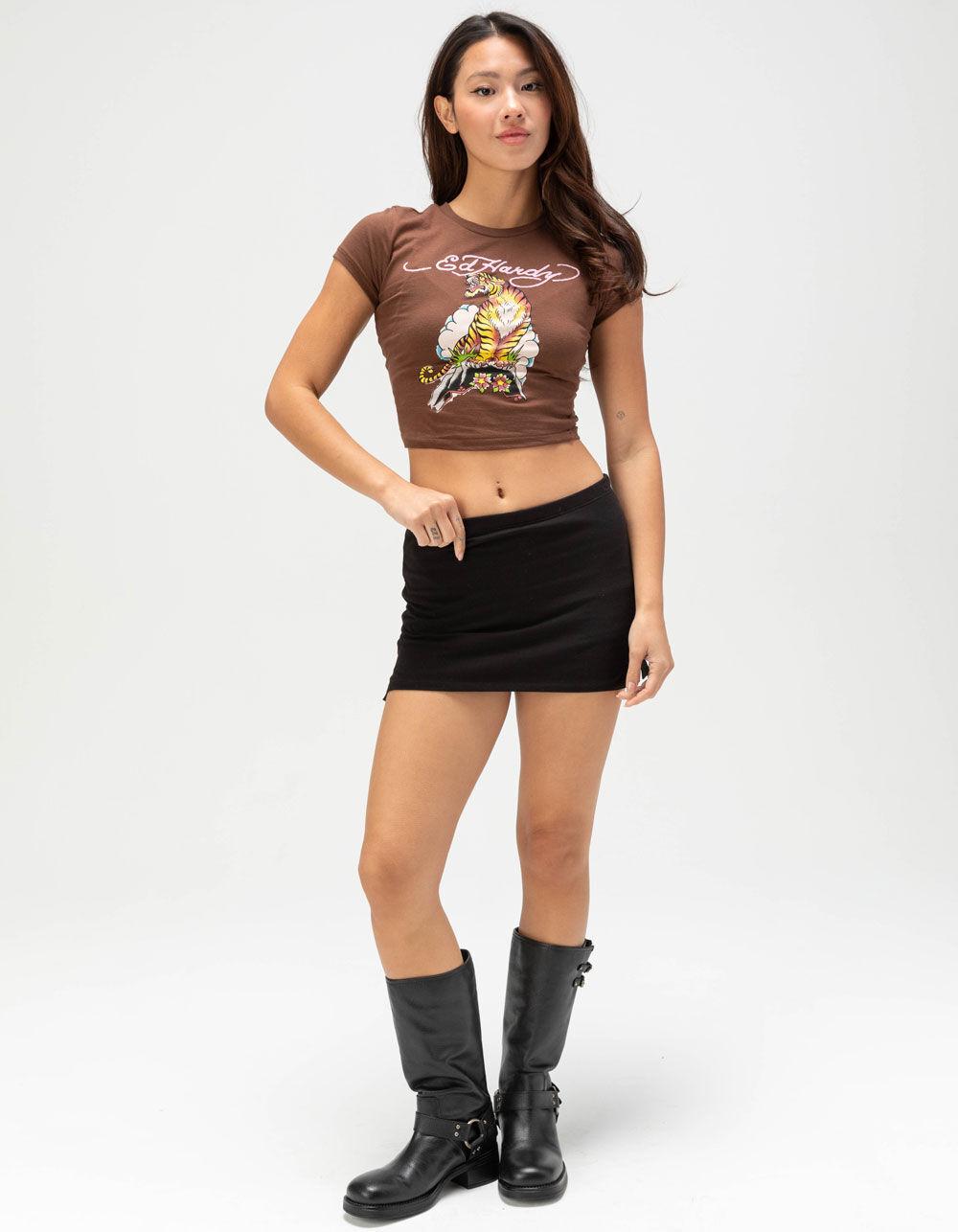 ED HARDY Tiger Cloud Womens Baby Tee - BROWN