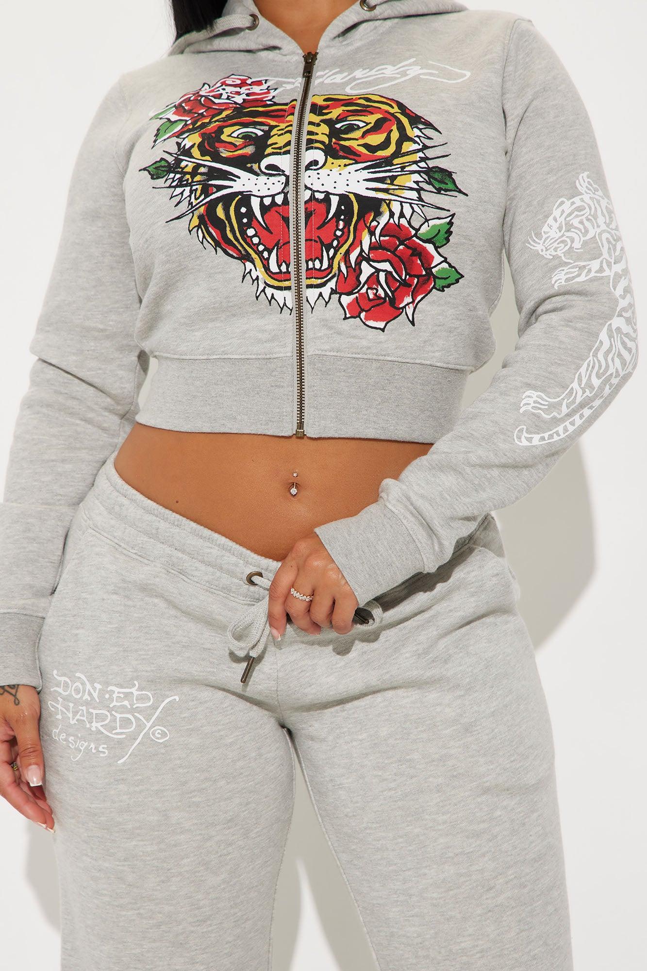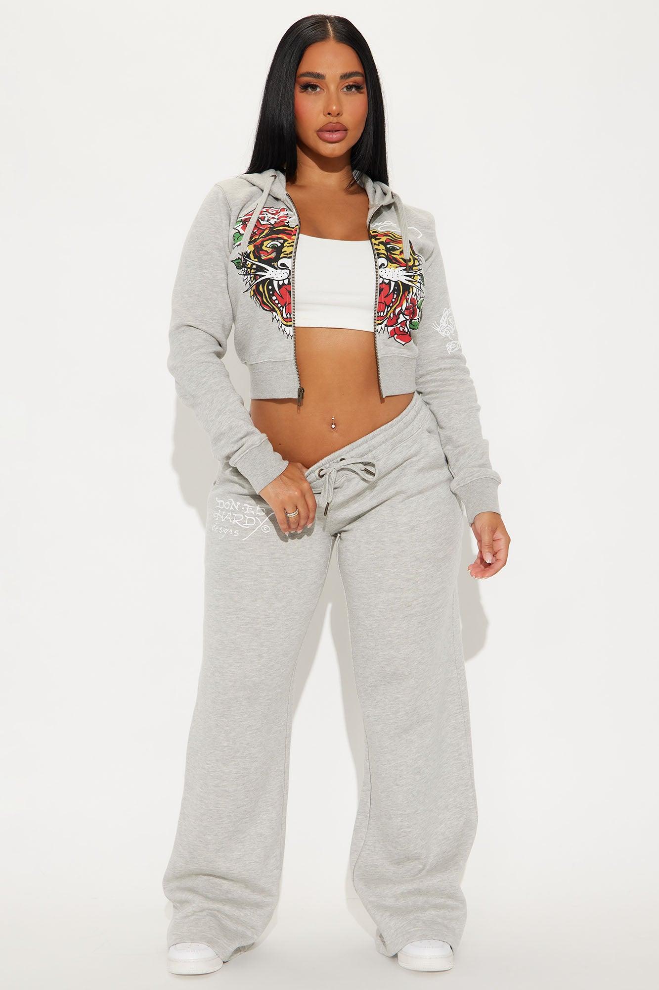 Available In Heather Grey And Red. Pant Set Sweatshirt Zip-Up Hoodie Graphic On Top And Bottoms Flare Leg Pant Disclaimer: Due To The Printing Process A Difference In Saturation May Occur. Each Garment Is Unique 55% Cotton 45% Polyester Imported