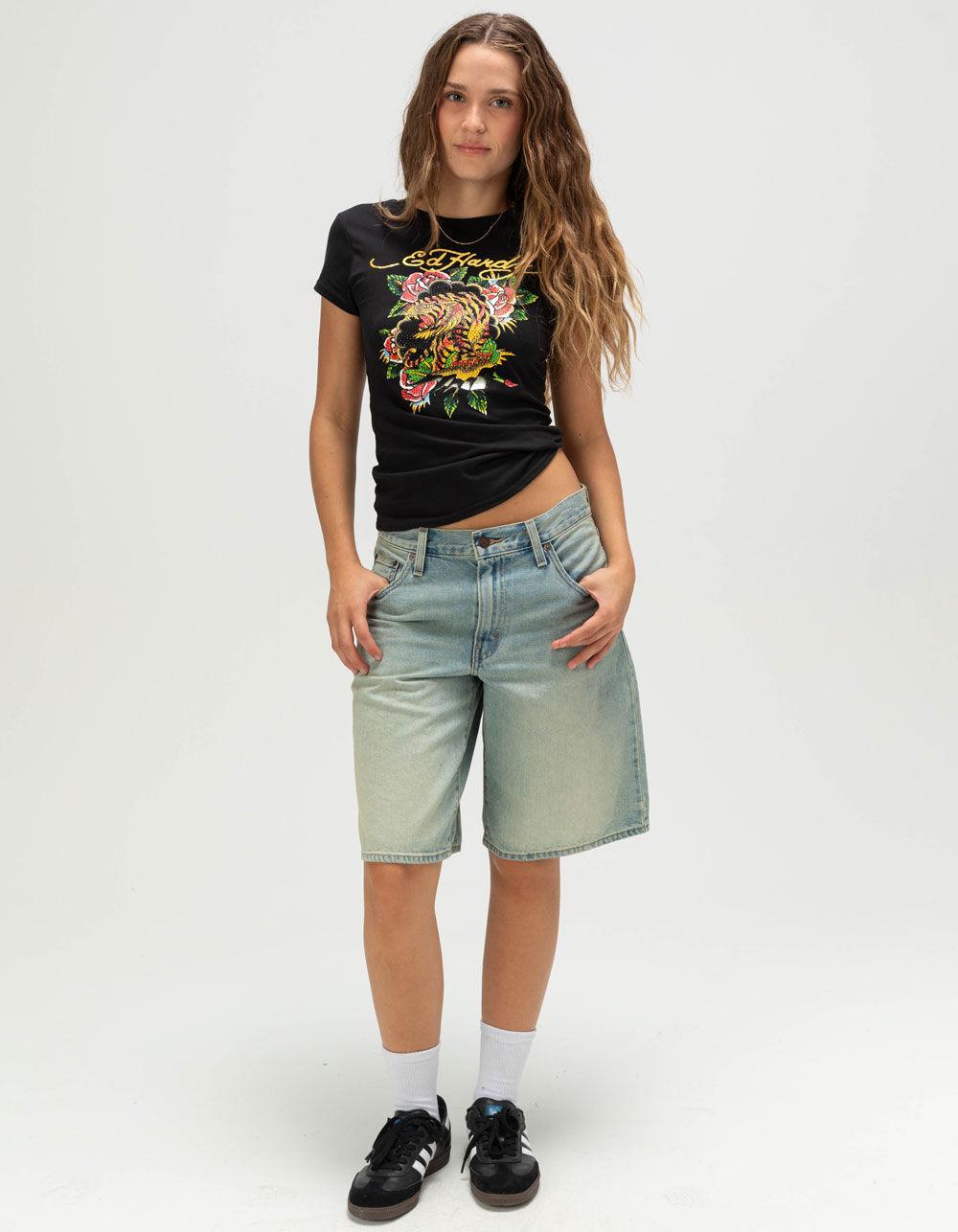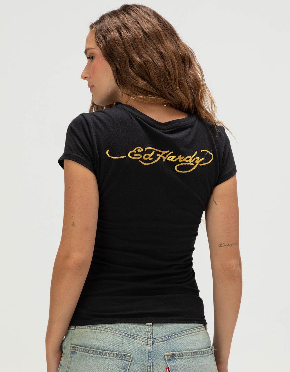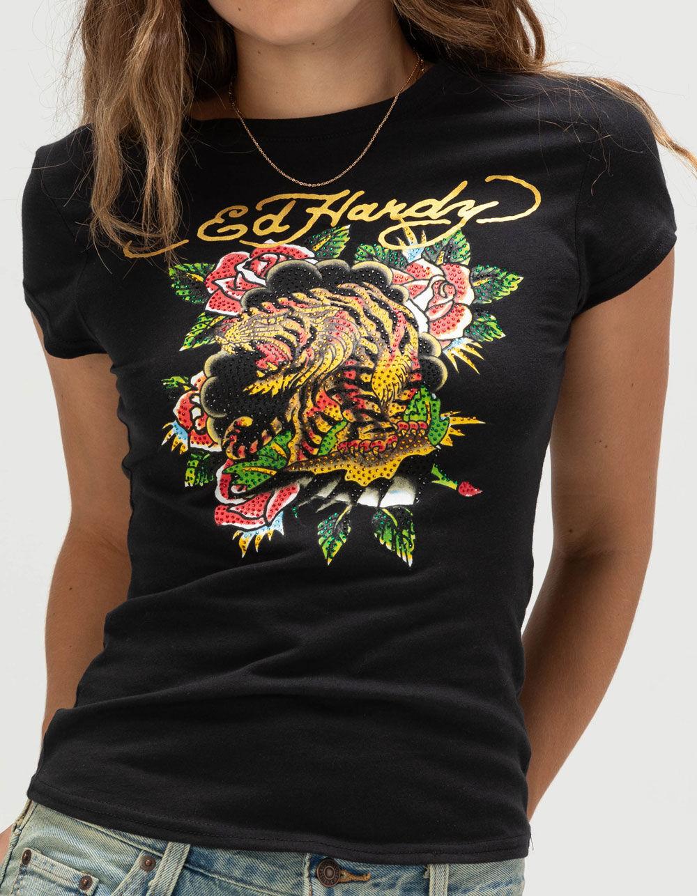 ED HARDY Tiger Roses Womens Fitted Tee - BLACK