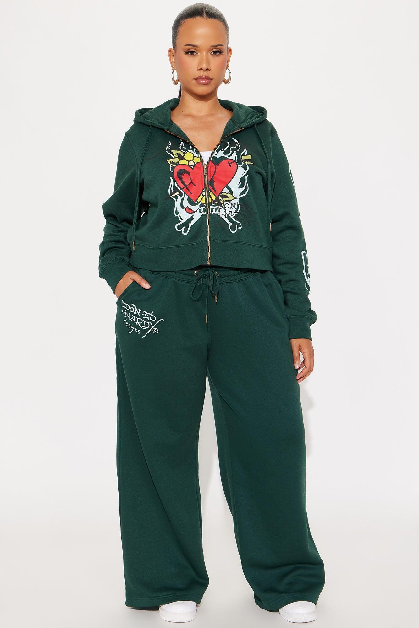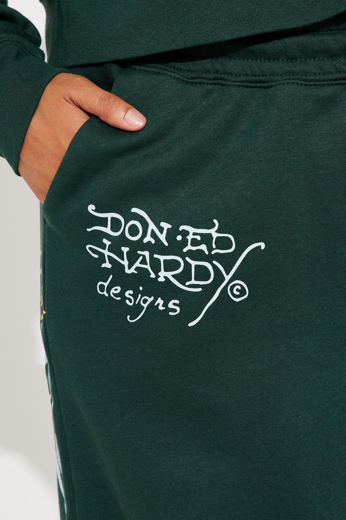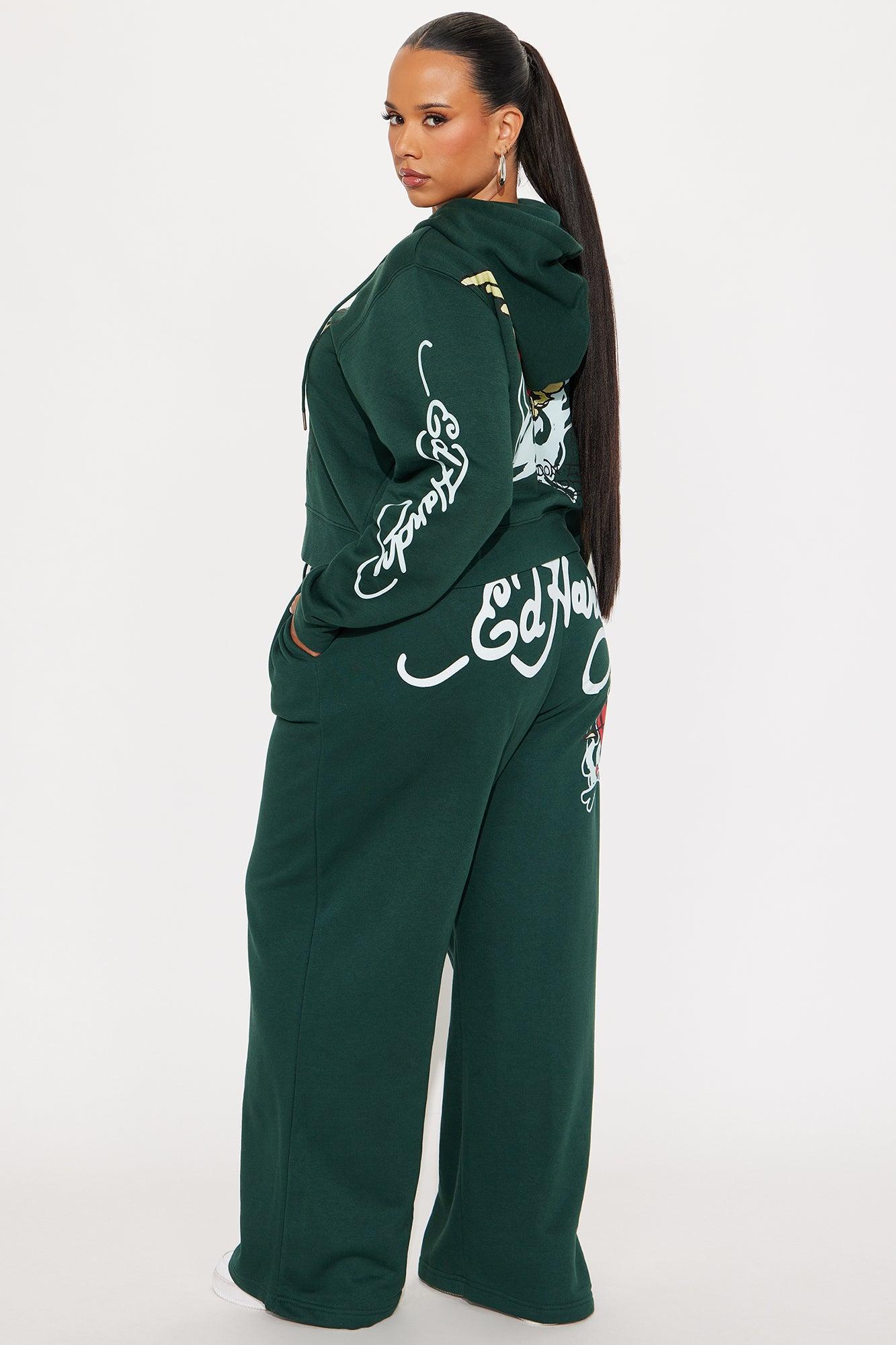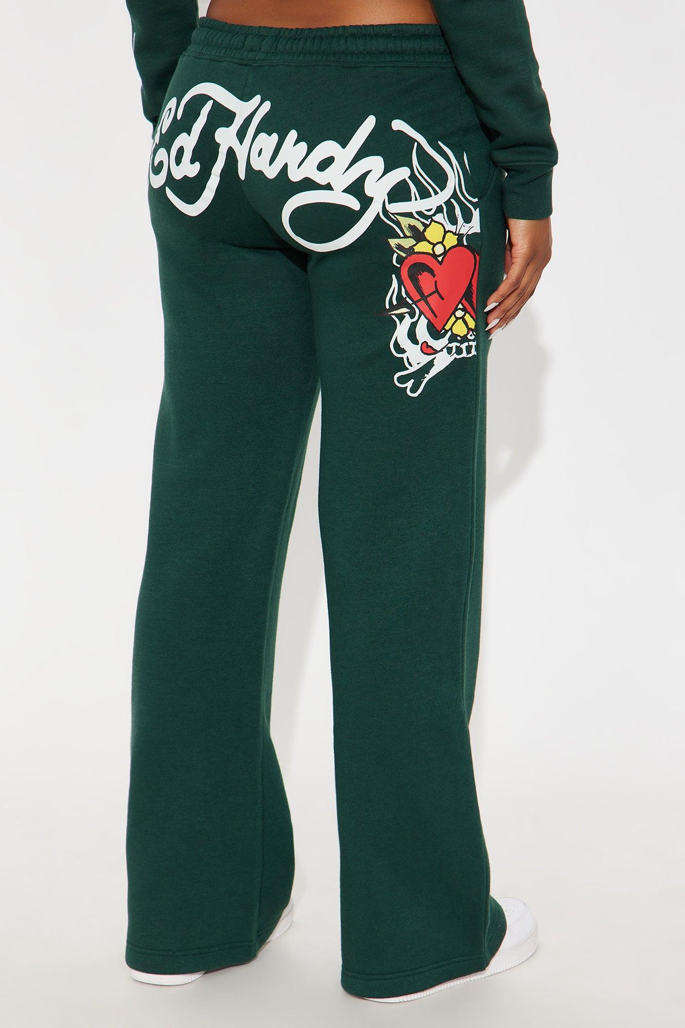 Available In Hunter. Wide Leg Pant Drawstring Detail Front And Back Screen Stretch Pair To "Ed Hardy Twin Flame Zip Up Hoodie" Disclaimer: Due To The Printing Process A Difference In Saturation May Occur. Each Garment Is Unique. Self: 55% Cotton 45% Polyester Imported