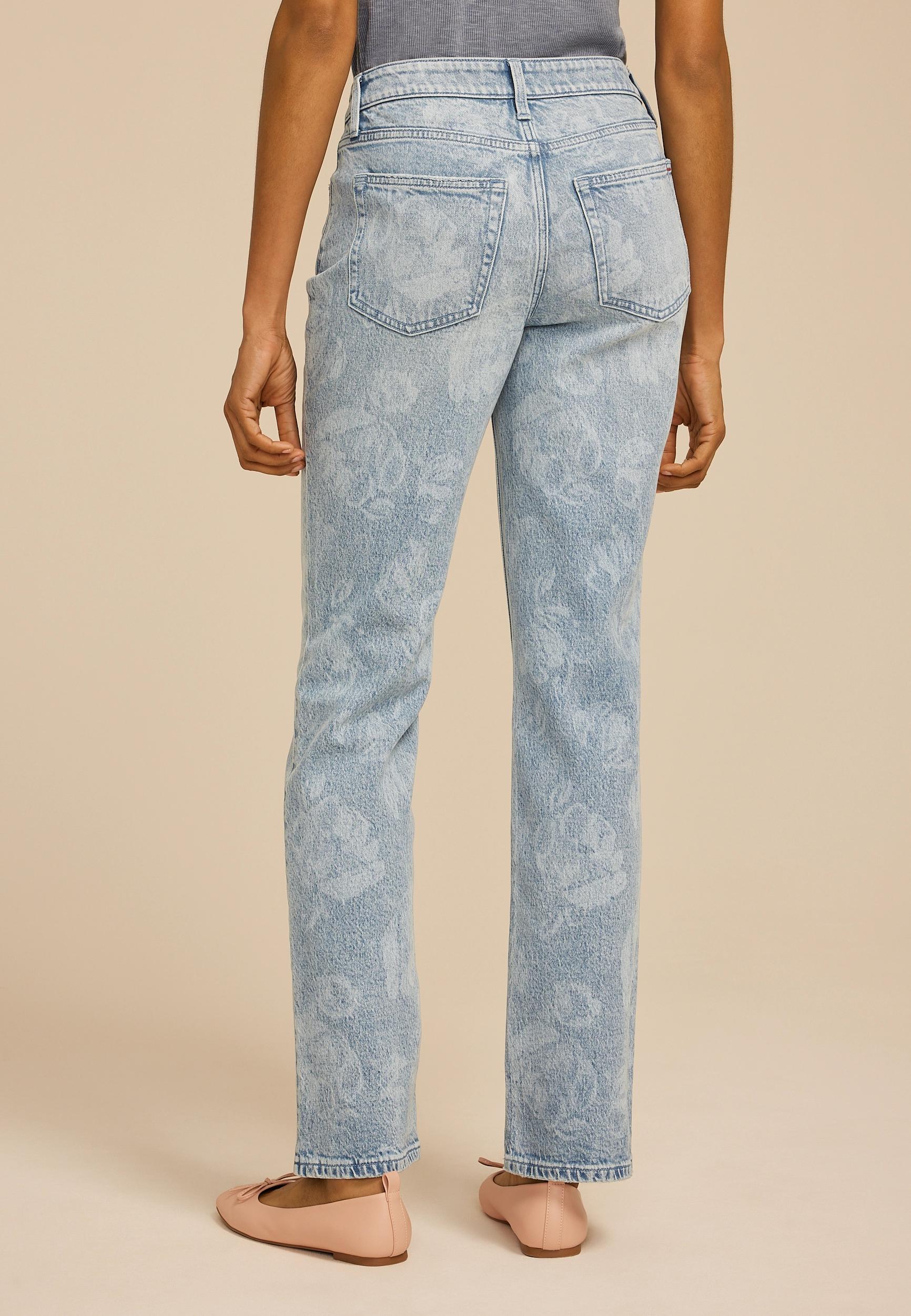 Jeans on the edge of everything. Exclusively at maurices, our jean is edgy-cool meets all-the-feels comfort. From the luxuriously soft fabric to the artistic wash indigos, it’s fearlessly fabulous (just like you). .mar-pdp-section .mar-product-description {color: #000;}.mar-pdp-section .mar-product-description ul, .mar-pdp-section .mar-product-description ul>li {margin-left: 10px;padding-left: 10px;}.mar-pdp-section .mar-product-description .mar-product-description-content ul li{list-style-type: disc;margin: 0 0 5px;padding-left: 5px;}.mar-pdp-section .mar-product-description p {color: #000;padding: 5px 0;}@media only screen and (max-width: 1023px){.mar-pdp-section .mar-product-description .mar-product-description-content ul li{list-style-type: disc !important;} .mar-pdp-section .mar-product-description .mar-product-description-content .mar-tab-content ul{padding-left: 10px;}.mar-pdp-section .mar-product-description .mar-product-description-content .mar-tab-content {font-weight: 300;}} Features: comfort stretch: just-right stretch for all-day ease medium sandblast wash floral pattern all pockets are functional button and zipper closure finished hem