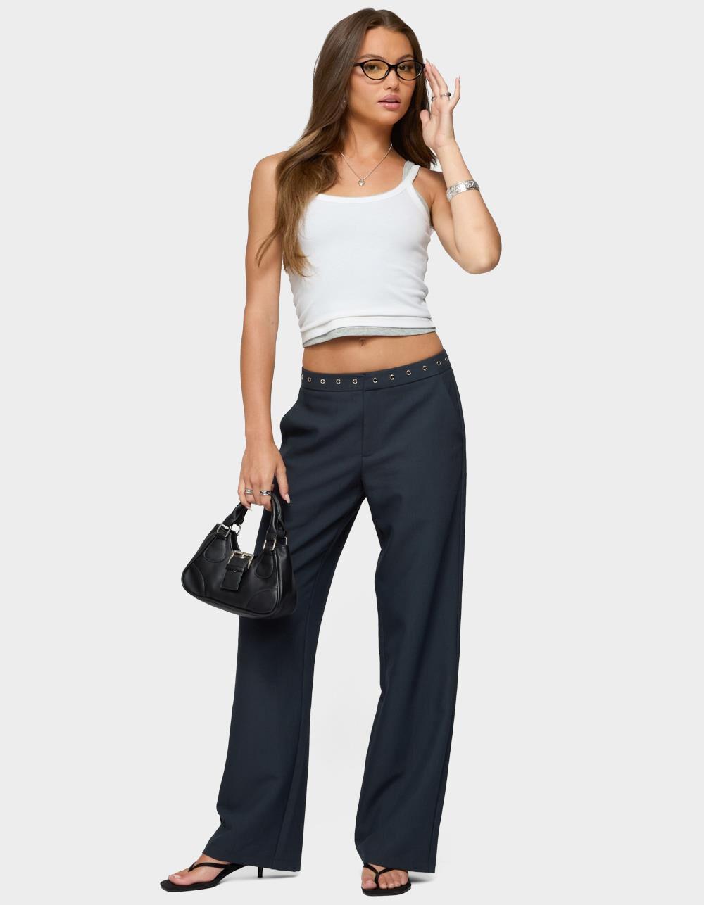 No closet is ever complete without the perfect pair of pants. Wear them with a cool corset for the ultimate put-together look. Pants. Straight leg fit. Grommet waistband. 80% Polyester, 16% Rayon, 4% Spandex. Model wears size S. Model height is 5'8. Item care: machine wash at maximum 30ºc, do not bleach, do not tumble dry, iron at a maximum of 110ºc, do not dry clean.This item is may take a few extra days to process. All other products in your order will be shipped separately.