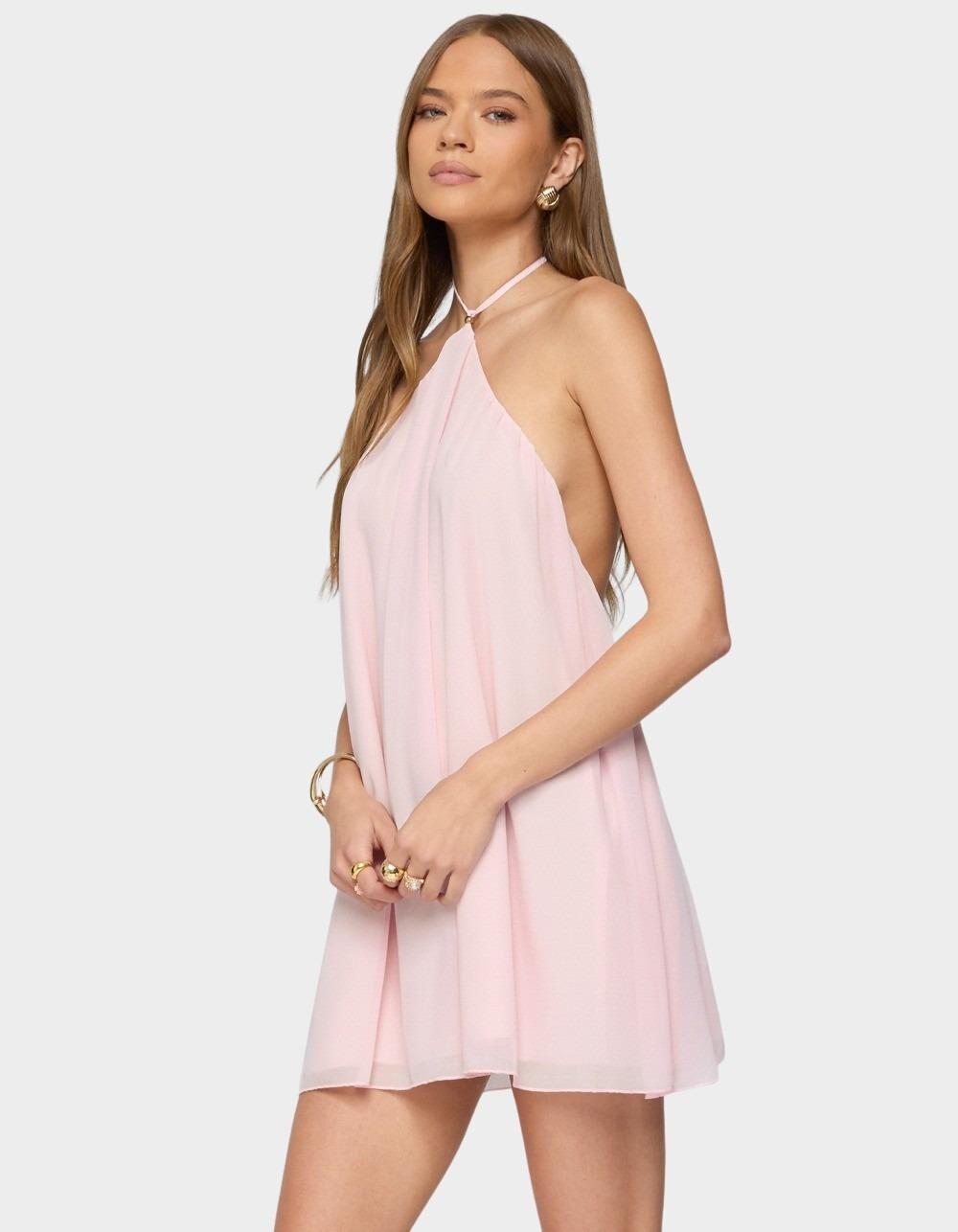 This mini dress is the perfect number for all your plans. It super comfortable and flattering fit makes it a must-have piece in every it girl's wardrobe. Mini dress. Halter neck tie. Open back. Bead detailing. 100% Polyester. Model wears size S. Model height is 5'10. Item care: machine wash at maximum 30ºc, do not bleach, do not tumble dry, iron at a maximum of 110ºc, do not dry clean.This item is may take a few extra days to process. All other products in your order will be shipped separately.