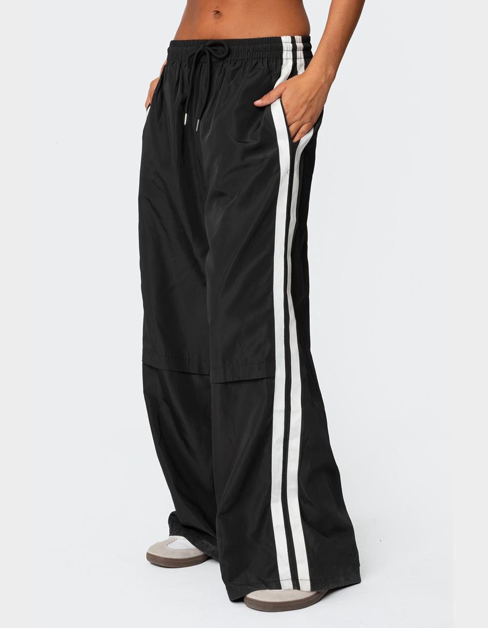 These nylon track pants offer both style and comfort, making them perfect for a sporty yet fashionable look. They're ideal for any activity, ensuring you feel comfortable and confident throughout your entire day. Track pants. Side stripe detail. Drawstring waistband. Nylon fabric. 100% Polyester. Model wears size S. Model height is 5'8. Item care: machine wash at maximum 30ºc, do not bleach, do not tumble dry, iron at a maximum of 110ºc, do not dry clean.This item is may take a few extra days to process. All other products in your order will be shipped separately.