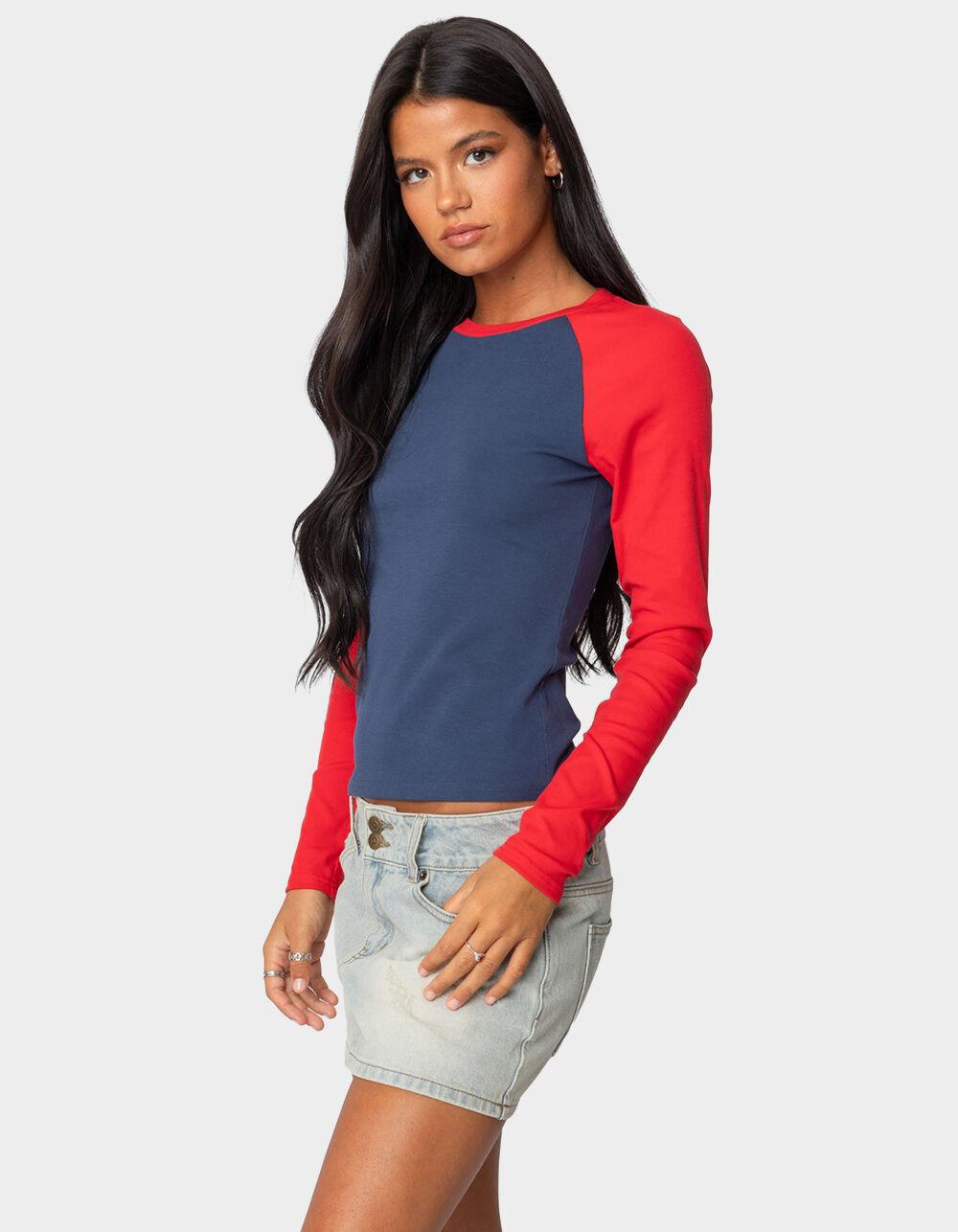 EDIKTED Tommi Raglan Long Sleeve Tee - NAVY Product Image